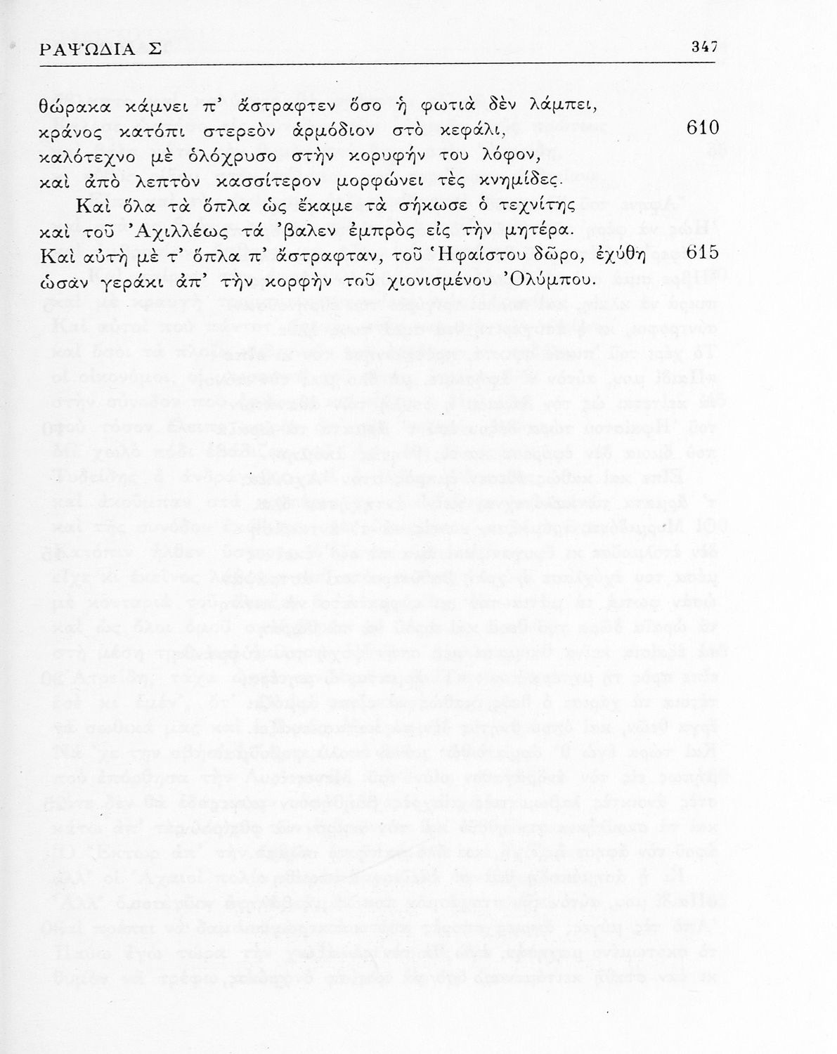 Μαθητικό βοήθημα του Ελληνικού Σχολείου, των Παρθεναγωγείων και του Γυμνασίου για το μάθημα των Αρχαίων Ελληνικών. Περιέχει τις ραψωδίες Ο, Π, Ρ, Σ, Τ, Χ, ψ, Ω από το πρωτότυπο με σχόλια και ερμηνευτικές ...