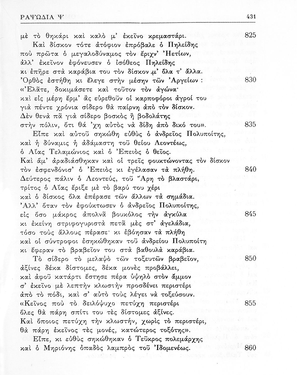 Σχολικό εγχειρίδιο Αρχαίων Ελληνικών. Το βιβλίο περιλαμβάνει την Ιλιάδα του Ομήρου σε μετάφραση του Ιάκωβου Πολυλά και ενδεικτικό Λεξιλόγιο.