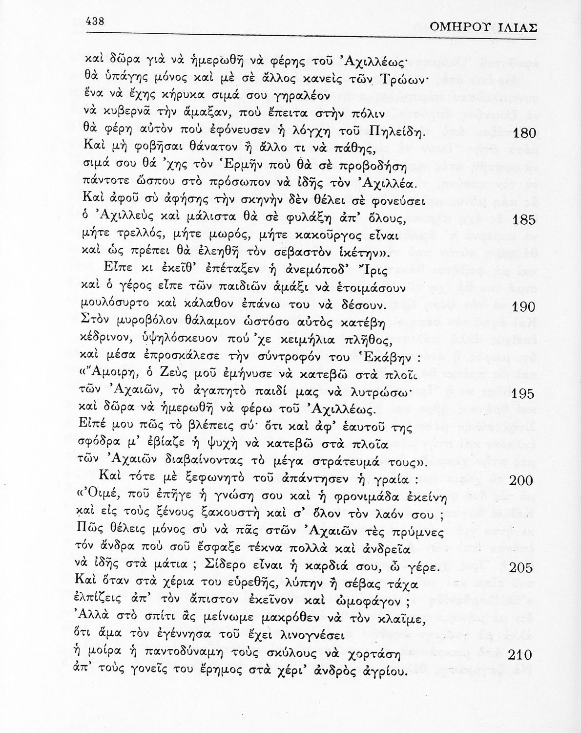 Σχολικό εγχειρίδιο της Δευτεροβάθμιας Εκπαίδευσης για το μάθημα των Αρχαίων Ελληνικών. Πρόκειται για το κείμενο της Ιλιάδας μεταφρασμένο, με πραγματολογικές παρατηρήσεις. Στο τέλος περιλαμβάνει λεξιλόγιο.