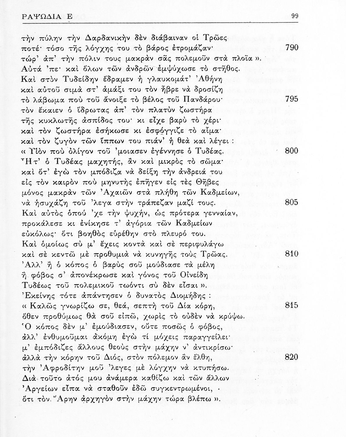 Σχολικό εγχειρίδιο Ε' Γυμνασίου για το μάθημα των Αρχαίων Ελληνικών. Περιλαμβάνει αποσπάσματα από ραψωδίες της Ιλιάδας, ερμηνευτικά και πραγματολογικά σχόλια και λεξιλογικές παρατηρήσεις.