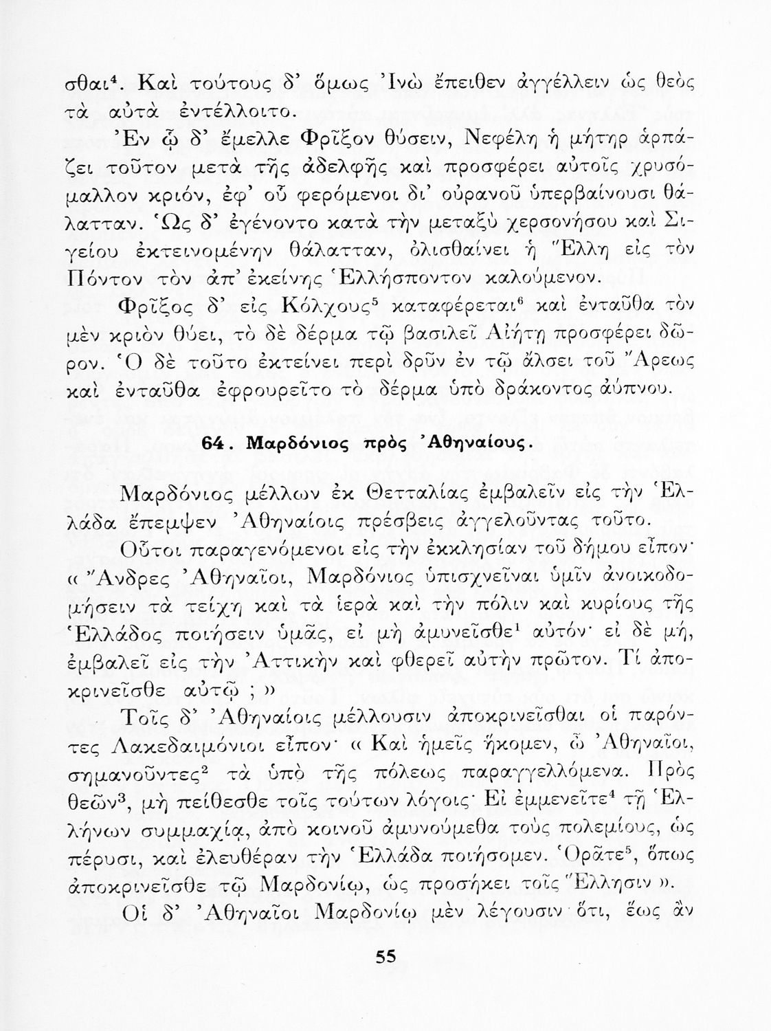 Σχολικό Εγχειρίδιο Αρχαίων Ελληνικών Α' και Β΄ Γυμνασίου που περιλαμβάνει κείμενα προσαρμοσμένα στη διδασκαλία των γραμματικών και συντακτικών φαινομένων, και ερμηνευτικές και λεξιλογικές σημειώσεις.