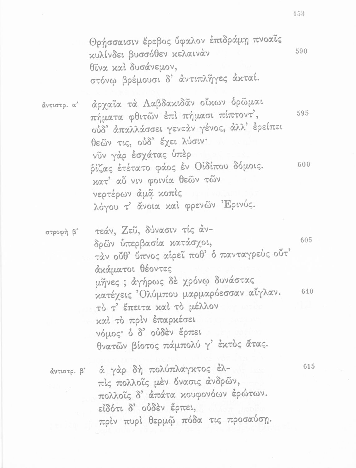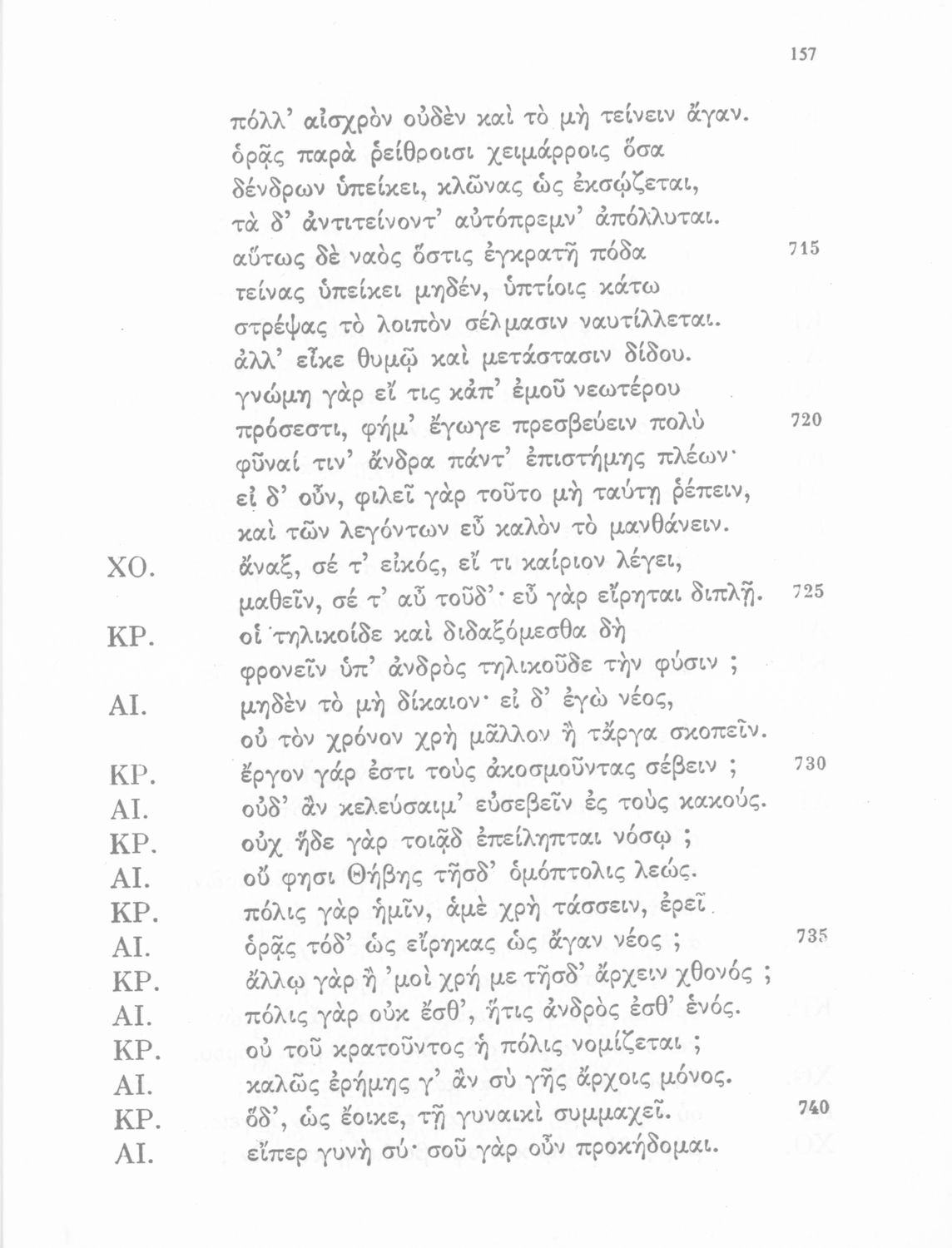 Σχολικό εγχειρίδιο Αρχαίων Ελληνικών. Το βιβλίο περιλαμβάνει εισαγωγή σχετικά με το αρχαίο δράμα, τη ζωή και το έργο του Σοφοκλή καθώς και για το περιεχόμενου των τραγωδιών "Οιδίπους Τύραννος" και "Αντιγόνη". Ακολουθούν αποσπάσματα από τις δύο παραπάνω τραγωδίες τα οποία συνοδεύονται από ερμηνευτικές σημειώσεις.