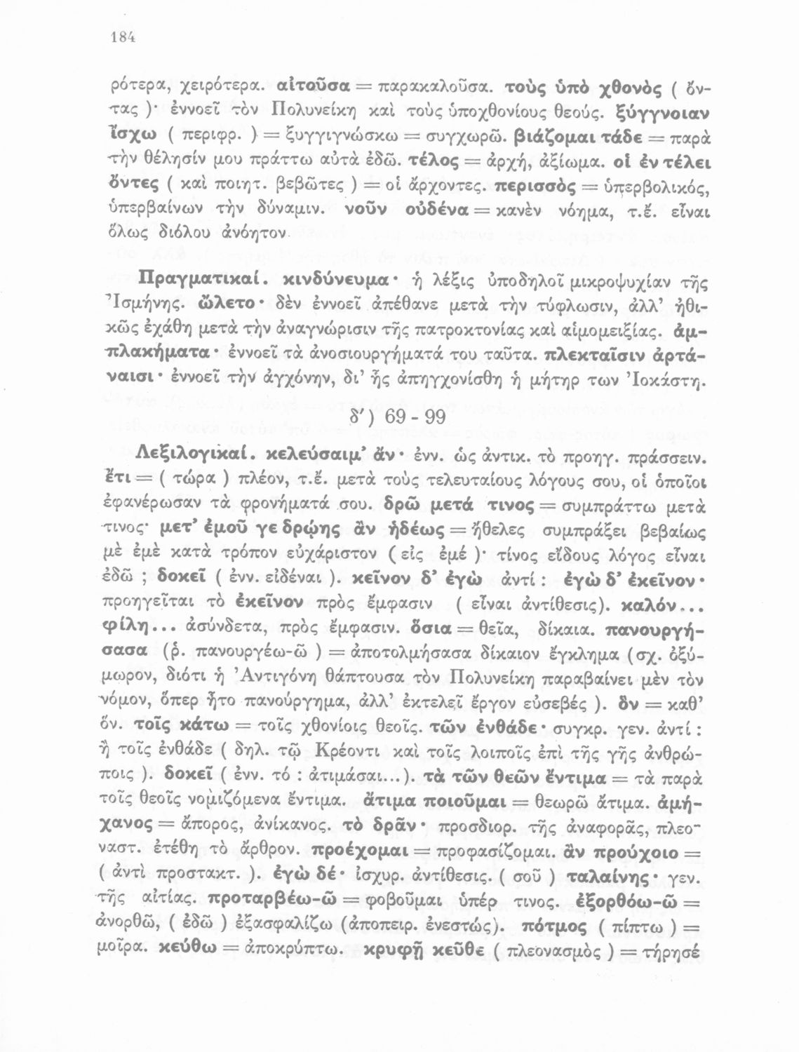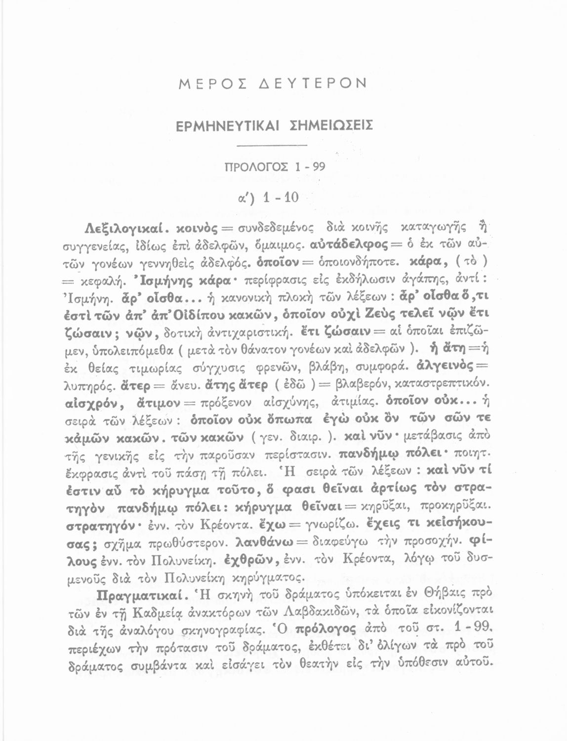 Σχολικό εγχειρίδιο Αρχαίων Ελληνικών. Το βιβλίο περιλαμβάνει εισαγωγή σχετικά με το αρχαίο δράμα, τη ζωή και το έργο του Σοφοκλή καθώς και για το περιεχόμενου των τραγωδιών "Οιδίπους Τύραννος" και "Αντιγόνη". Ακολουθούν αποσπάσματα από τις δύο παραπάνω τραγωδίες τα οποία συνοδεύονται από ερμηνευτικές σημειώσεις.