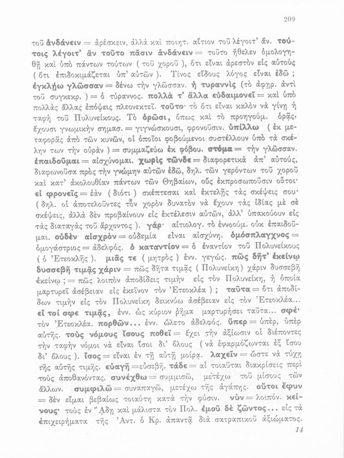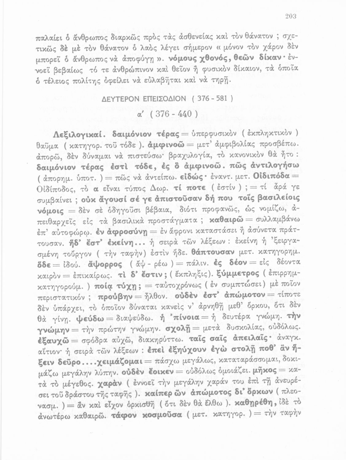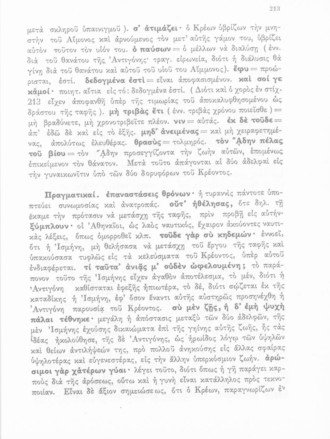 Σχολικό εγχειρίδιο Αρχαίων Ελληνικών. Το βιβλίο περιλαμβάνει εισαγωγή σχετικά με το αρχαίο δράμα, τη ζωή και το έργο του Σοφοκλή καθώς και για το περιεχόμενου των τραγωδιών "Οιδίπους Τύραννος" και "Αντιγόνη". Ακολουθούν αποσπάσματα από τις δύο παραπάνω τραγωδίες τα οποία συνοδεύονται από ερμηνευτικές σημειώσεις.