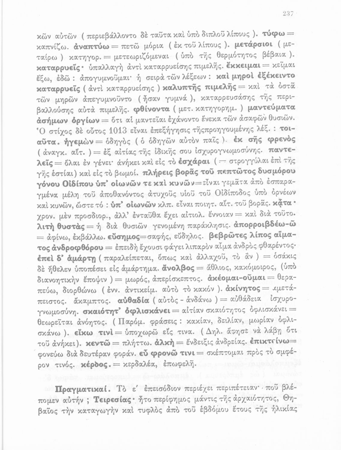 Σχολικό εγχειρίδιο Αρχαίων Ελληνικών που περιλαμβάνει τις τραγωδίες του Σοφοκλή Οιδίπους Τύραννος και Αντιγόνη, εισαγωγή και ερμηνευτικά σχόλια.