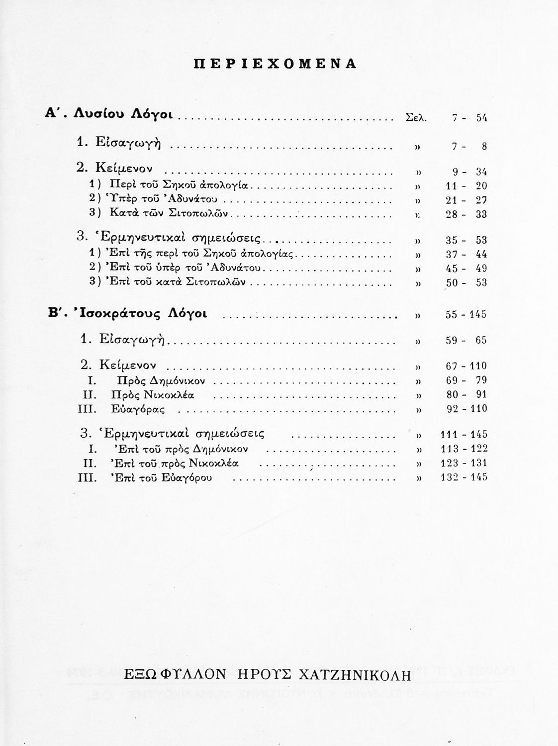 Λυσίας, Ισοκράτης, Κυριάκος Κοσμάς, Νικόλαος Ζαφειρίου (σχόλια)