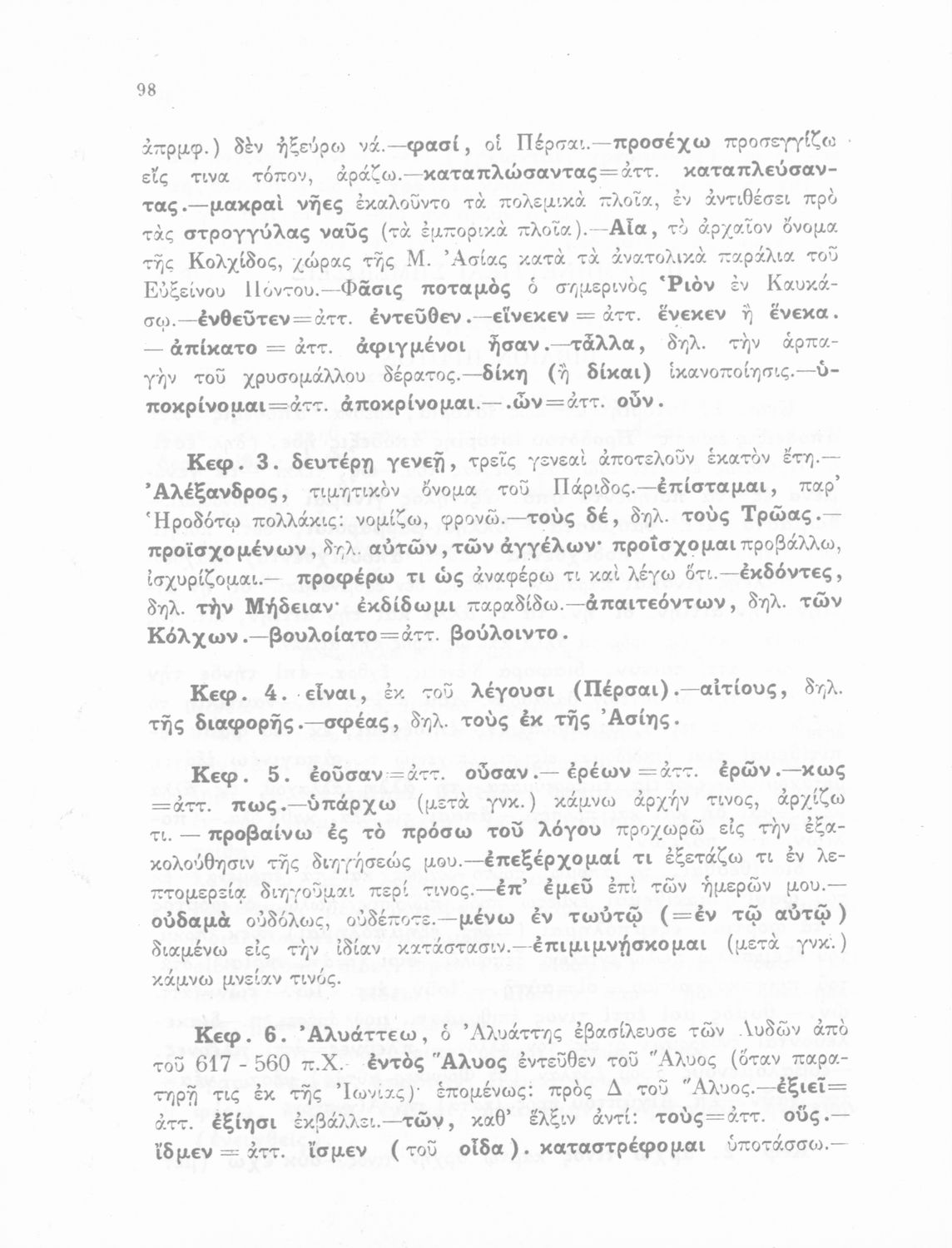 Σχολικό εγχειρίδιο Αρχαίων Ελληνικών Γ΄ Γυμνασίου που περιλαμβάνει εισαγωγή στη ζωή και το έργο του Ηρόδοτου, αποσπάσματα από την Ιστορία του, ερμηνευτικές σημειώσεις και τοπογραφικούς πίνακες με εικόνες και χάρτες.