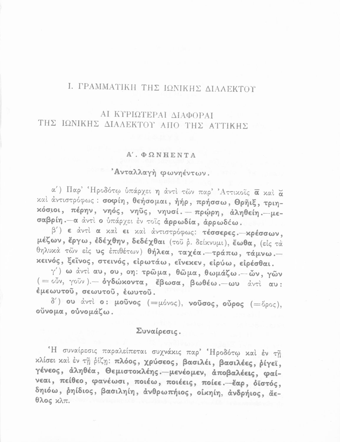 Βαθμίδα εκπαίδευσης: Δευτεροβάθμια Τάξη: Γ' Γυμνασίου Μάθημα: Αρχαία Ελληνικά Γλώσσα: Καθαρεύουσα Παρουσίαση περιεχομένου: Σχολικό εγχειρίδιο Αρχαίων Ελληνικών Γ΄ Γυμνασίου που περιλαμβάνει εισαγωγή στη ζωή και το έργο του Ηρόδοτου, αποσπάσματα από την Ιστορία του, ερμηνευτικές σημειώσεις και τοπογραφικούς πίνακες με εικόνες και χάρτες. |