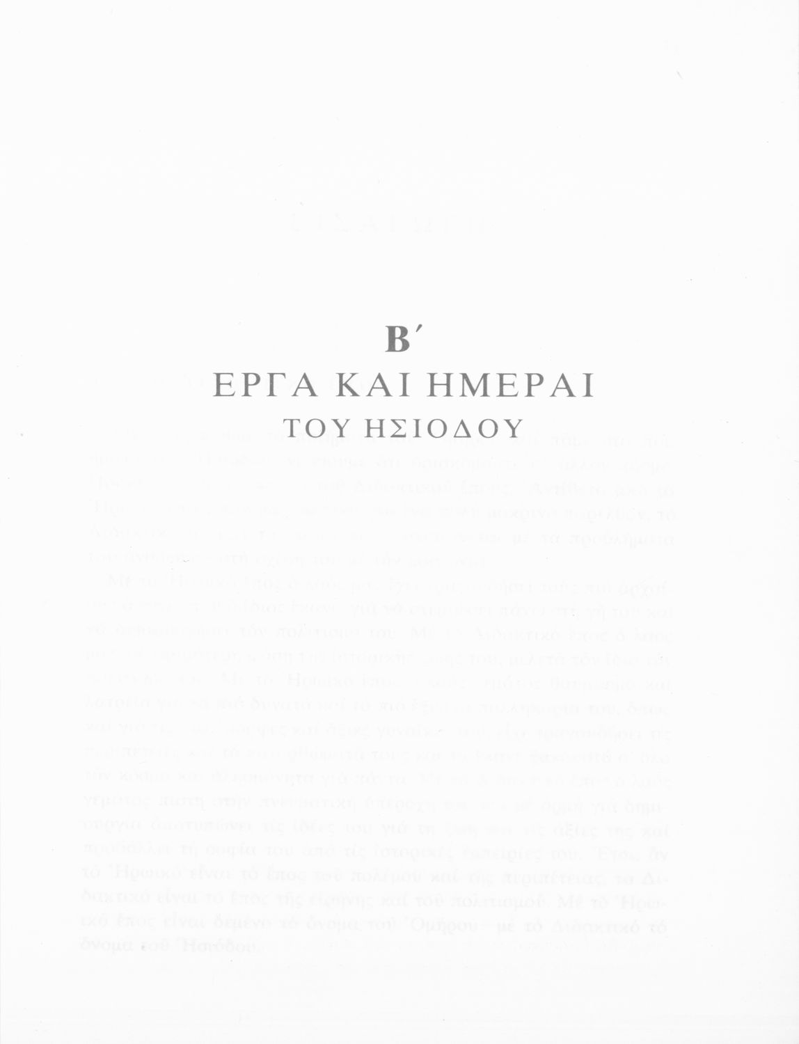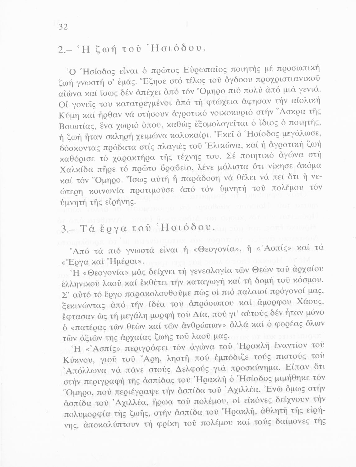 Σχολικό εγχειρίδιο Αρχαίων Ελληνικών Β' Γυμνασίου που περιέχει την Βατραχομυομαχία του Όμηρου και τα Έργα και Ημέραι του Ησίοδου σε μετάφραση, και ερμηνευτικές και λεξιλογικές παρατηρήσεις.