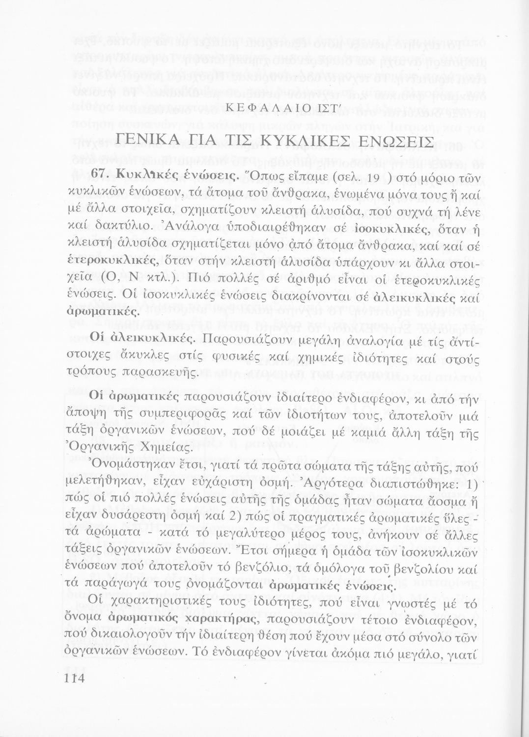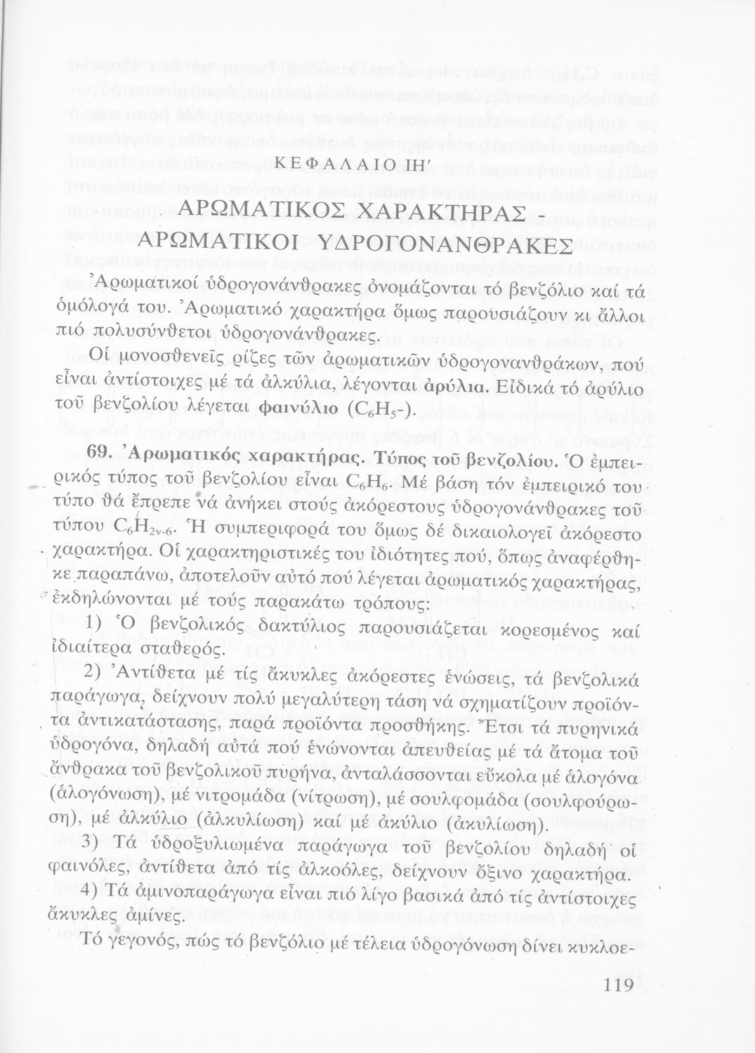 Βαθμίδα εκπαίδευσης: Δευτεροβάθμια Τάξη: Γ' Λυκείου Μάθημα: Χημεία Γλώσσα: Δημοτική Παρουσίαση περιεχομένου: Το βιβλίο προσδιορίζει βασικές έννοιες οργανικής χημείας (οργανικές ενώσεις, χημική ανάλυση, ονοματολογία και συμβολισμοί) καθώς γίνεται αναλυτική περιγραφή των ιδιοτήτων και των ενώσεων αμετάλλων, οξέων, αρωματικών υδρογονανθράκων. |