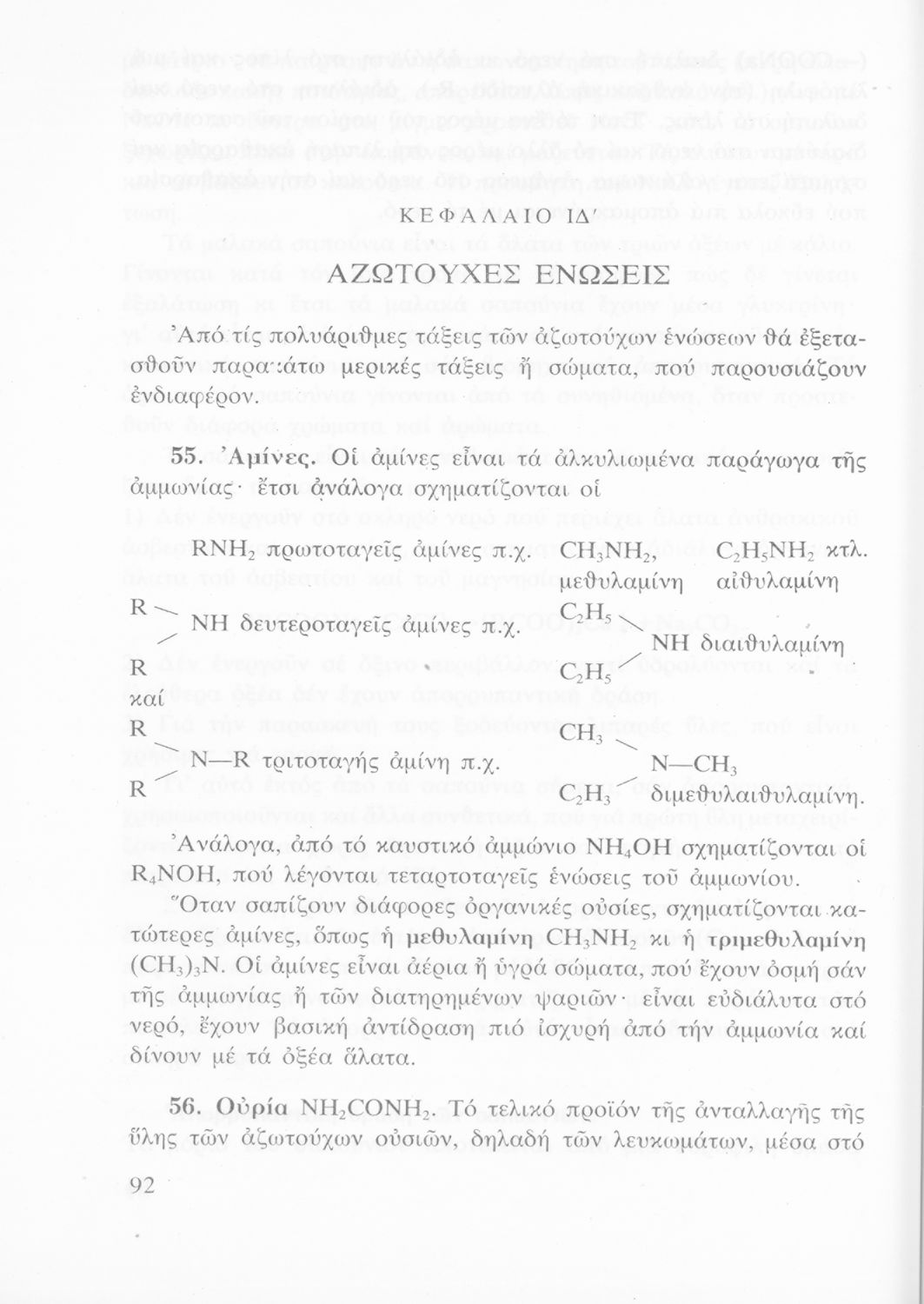 Βαθμίδα εκπαίδευσης: Δευτεροβάθμια Τάξη: Γ' Λυκείου Μάθημα: Χημεία Γλώσσα: Δημοτική Παρουσίαση περιεχομένου: Το βιβλίο προσδιορίζει βασικές έννοιες οργανικής χημείας (οργανικές ενώσεις, χημική ανάλυση, ονοματολογία και συμβολισμοί) καθώς γίνεται αναλυτική περιγραφή των ιδιοτήτων και των ενώσεων αμετάλλων, οξέων, αρωματικών υδρογονανθράκων. |