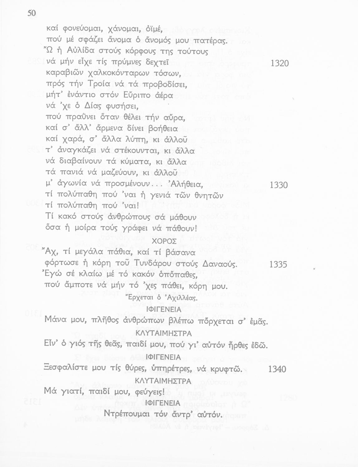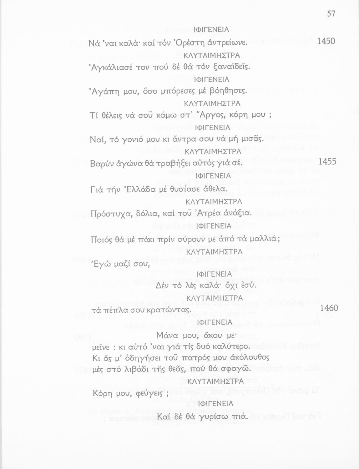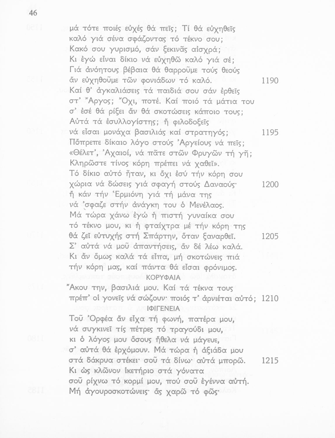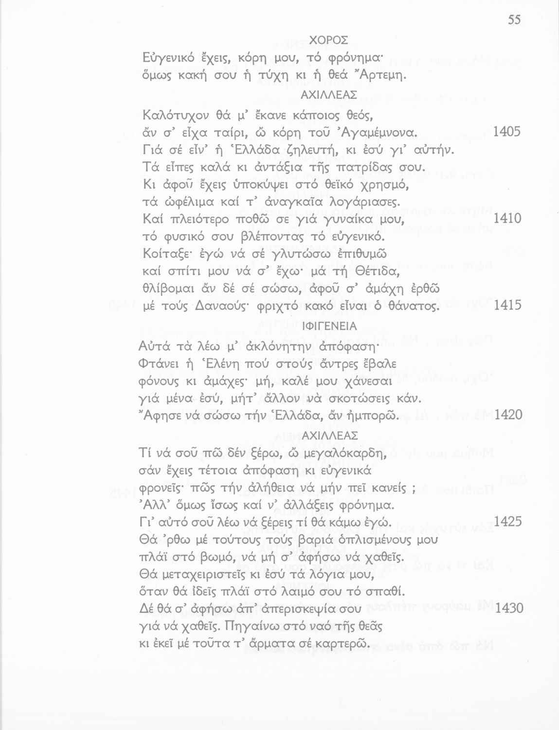 Σχολικό εγχειρίδιο Αρχαίων Ελληνικών Γ΄ Γυμνασίου που περιλαμβάνει αποσπάσματα από την τραγωδία του Ευριπίδη Ιφιγένεια η εν Αυλίδι σε μετάφραση και επεξηγηματικά σημειώματα.