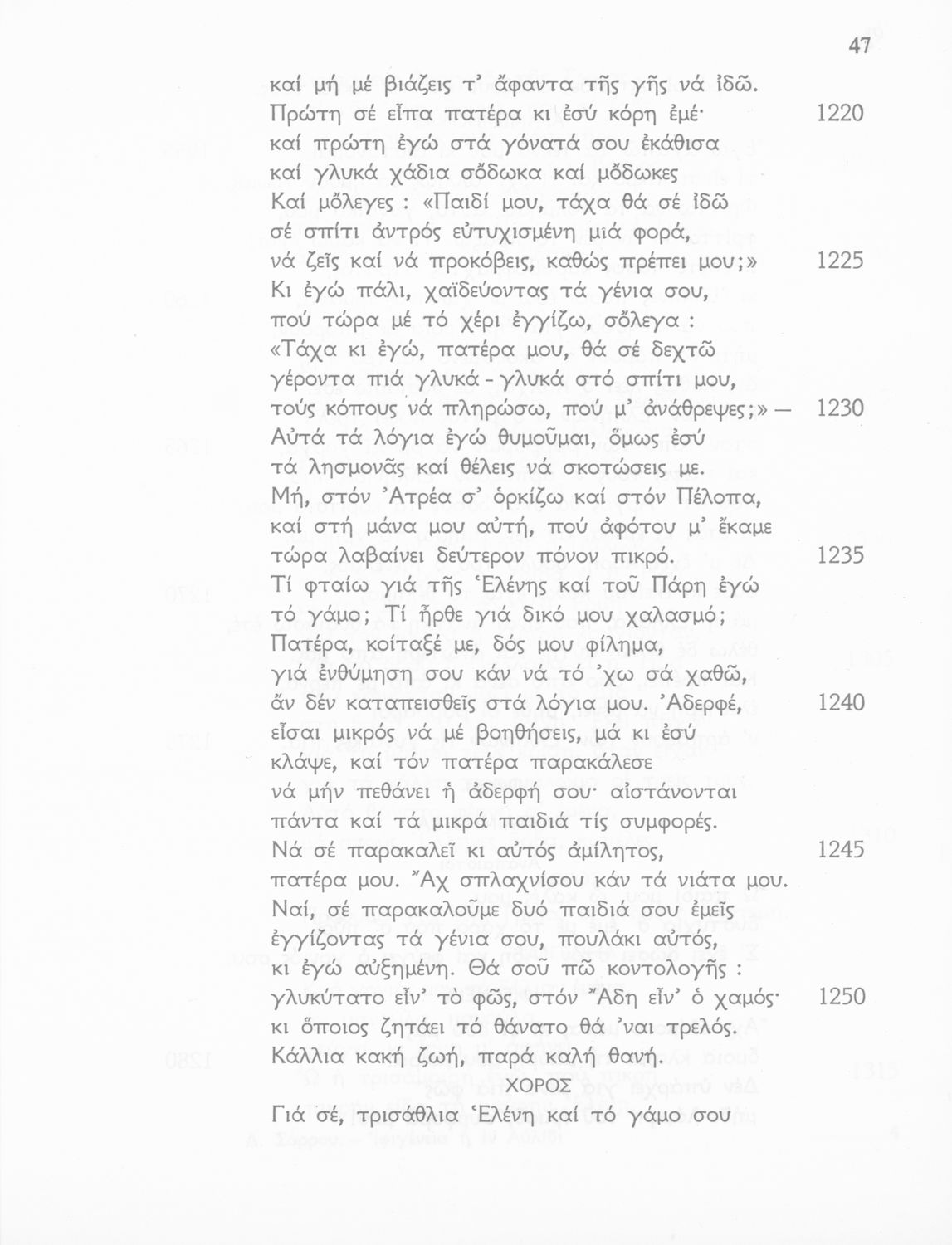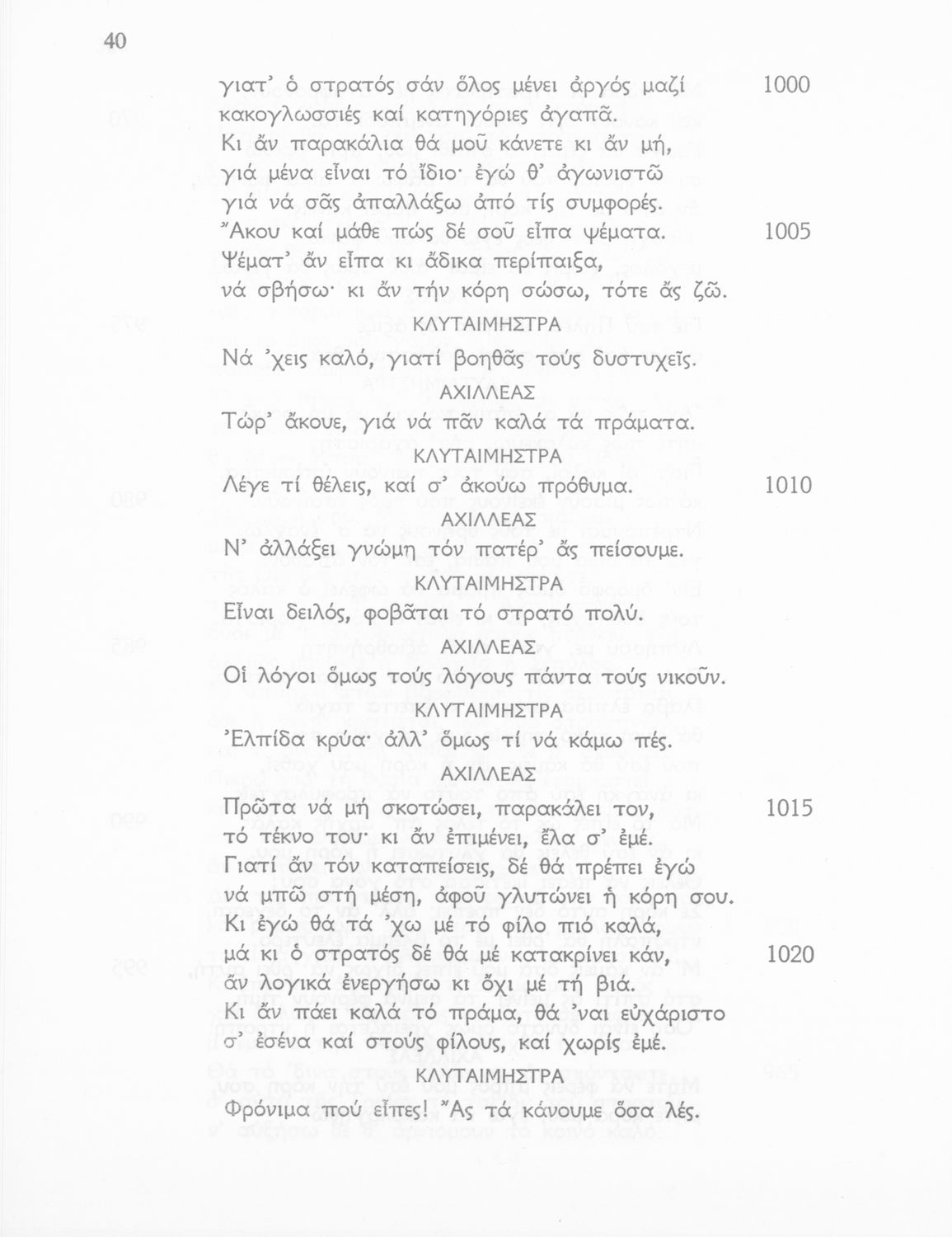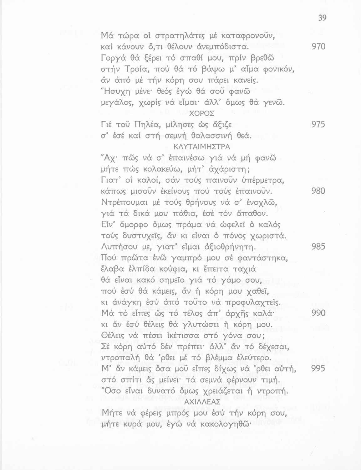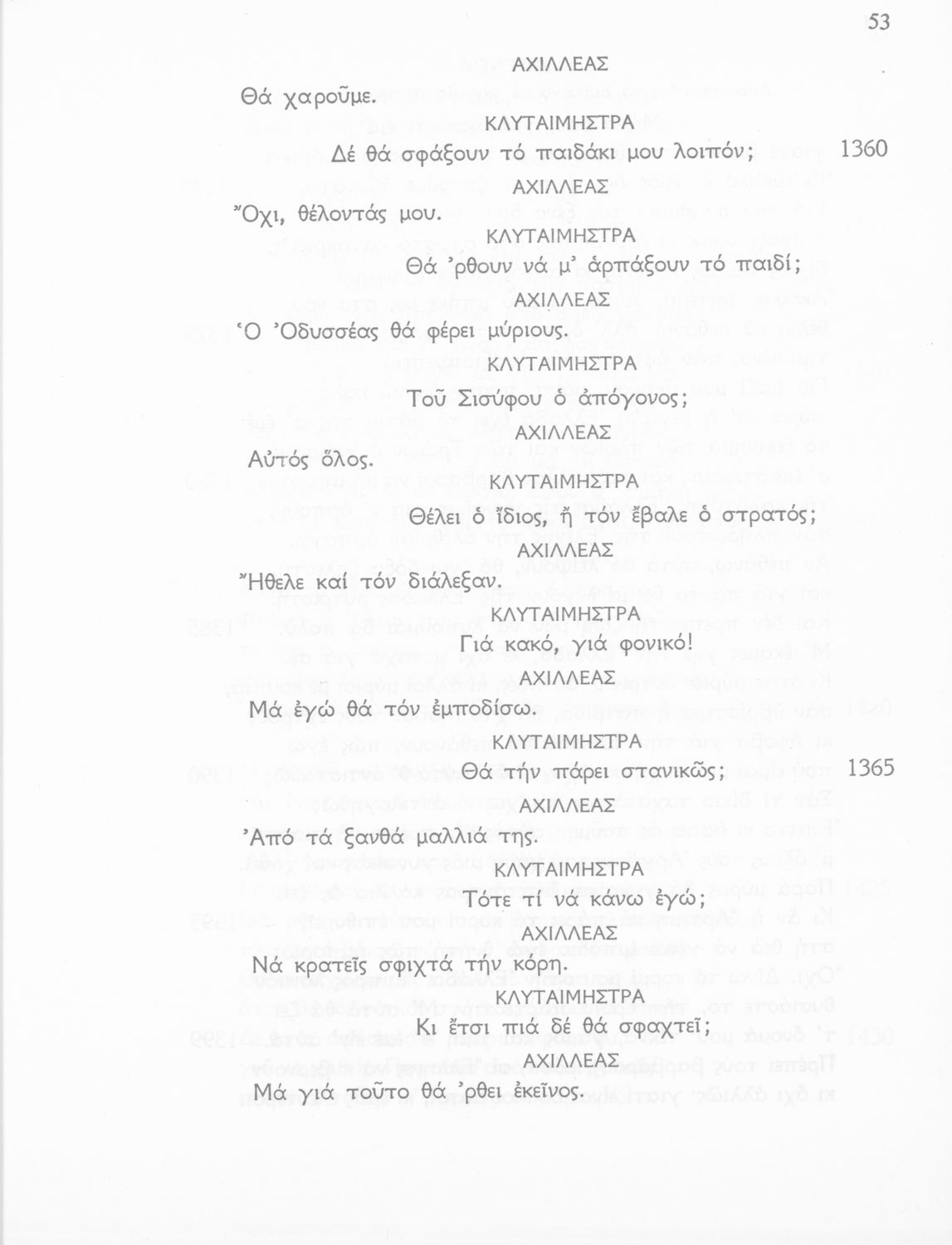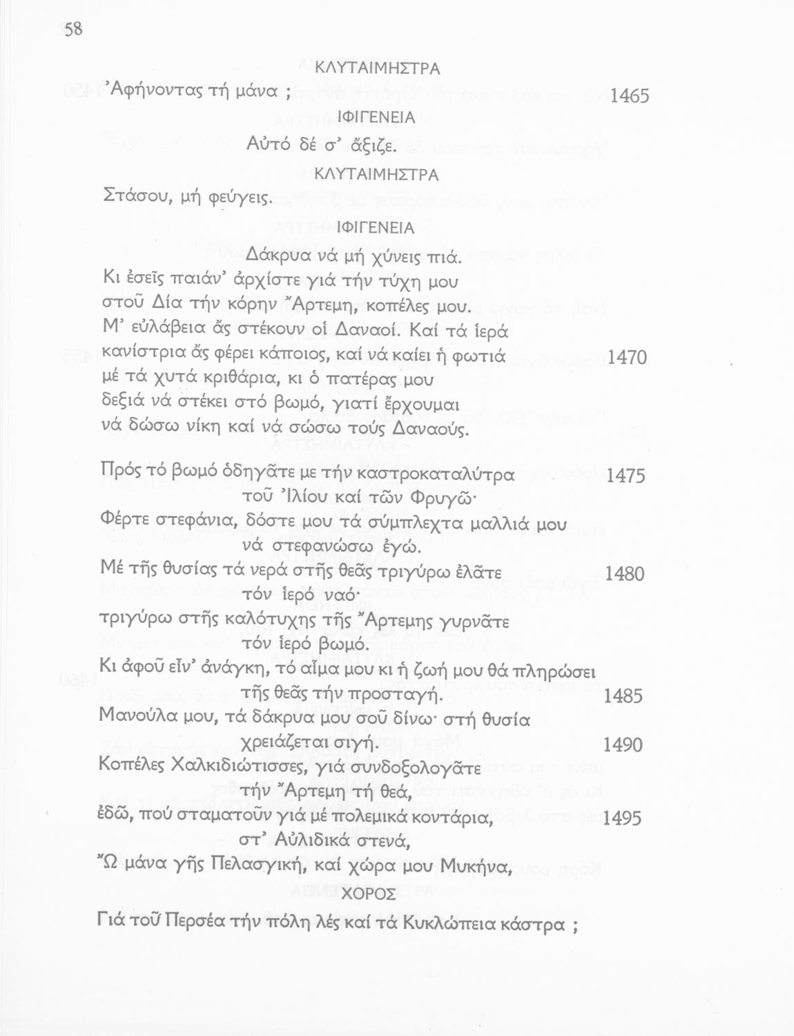 Σχολικό εγχειρίδιο Αρχαίων Ελληνικών Γ΄ Γυμνασίου που περιλαμβάνει αποσπάσματα από την τραγωδία του Ευριπίδη Ιφιγένεια η εν Αυλίδι σε μετάφραση και επεξηγηματικά σημειώματα.