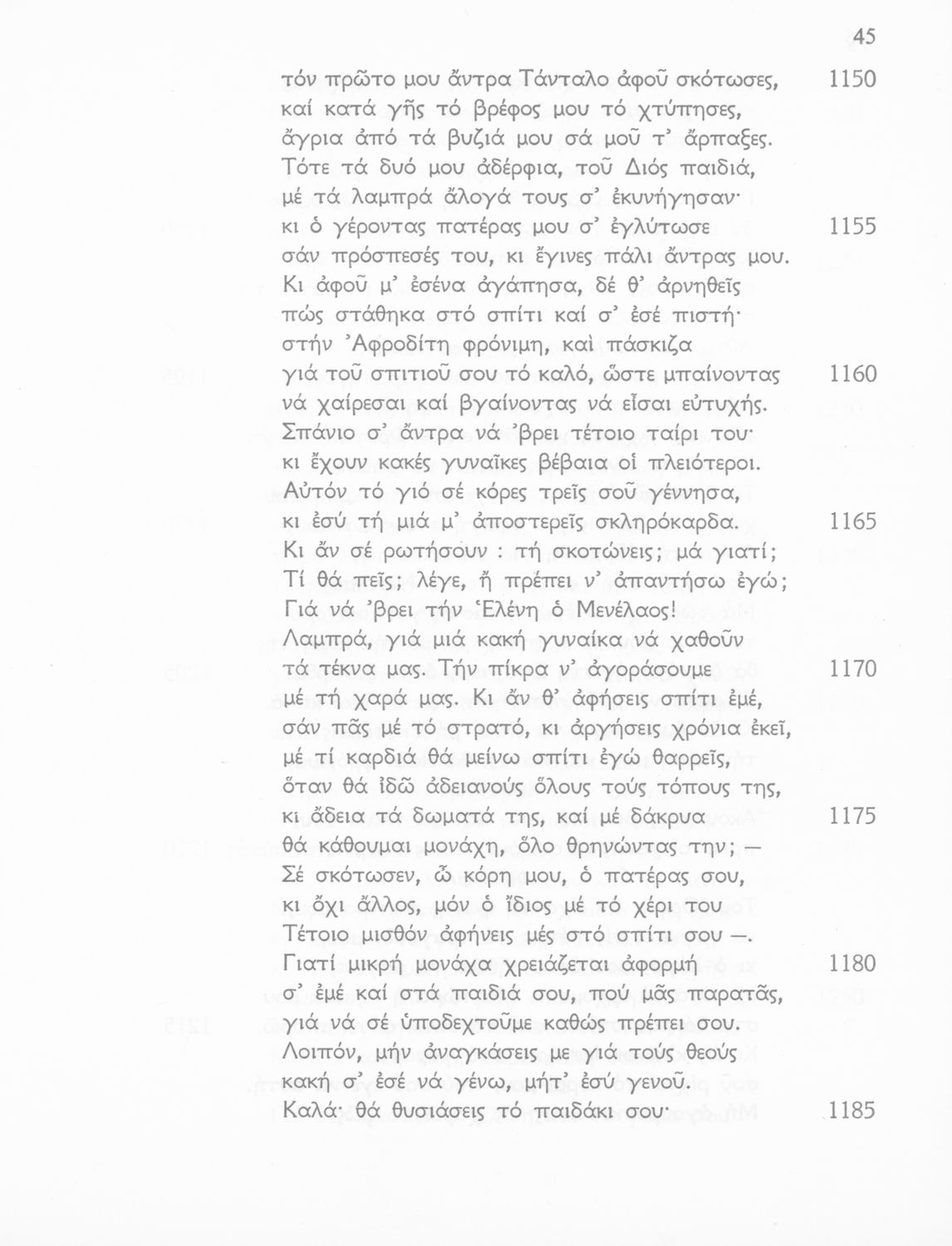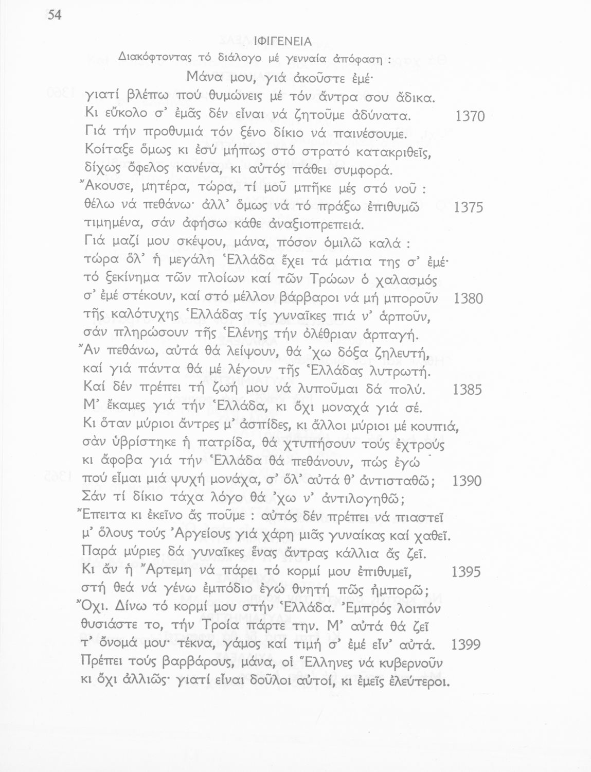 Βαθμίδα εκπαίδευσης: Δευτεροβάθμια Τάξη: Γ' Γυμνασίου Μάθημα: Αρχαία Ελληνικά Γλώσσα: Δημοτική Παρουσίαση περιεχομένου: Σχολικό εγχειρίδιο Αρχαίων Ελληνικών Γ΄ Γυμνασίου που περιλαμβάνει αποσπάσματα από την τραγωδία του Ευριπίδη Ιφιγένεια η εν Αυλίδι σε μετάφραση και επεξηγηματικά σημειώματα. |
