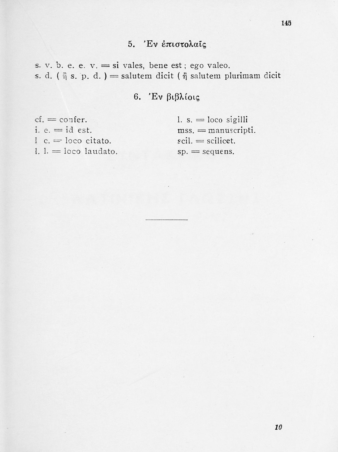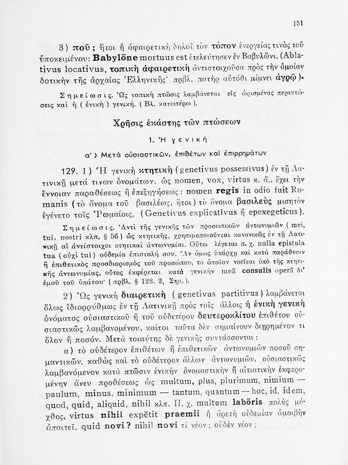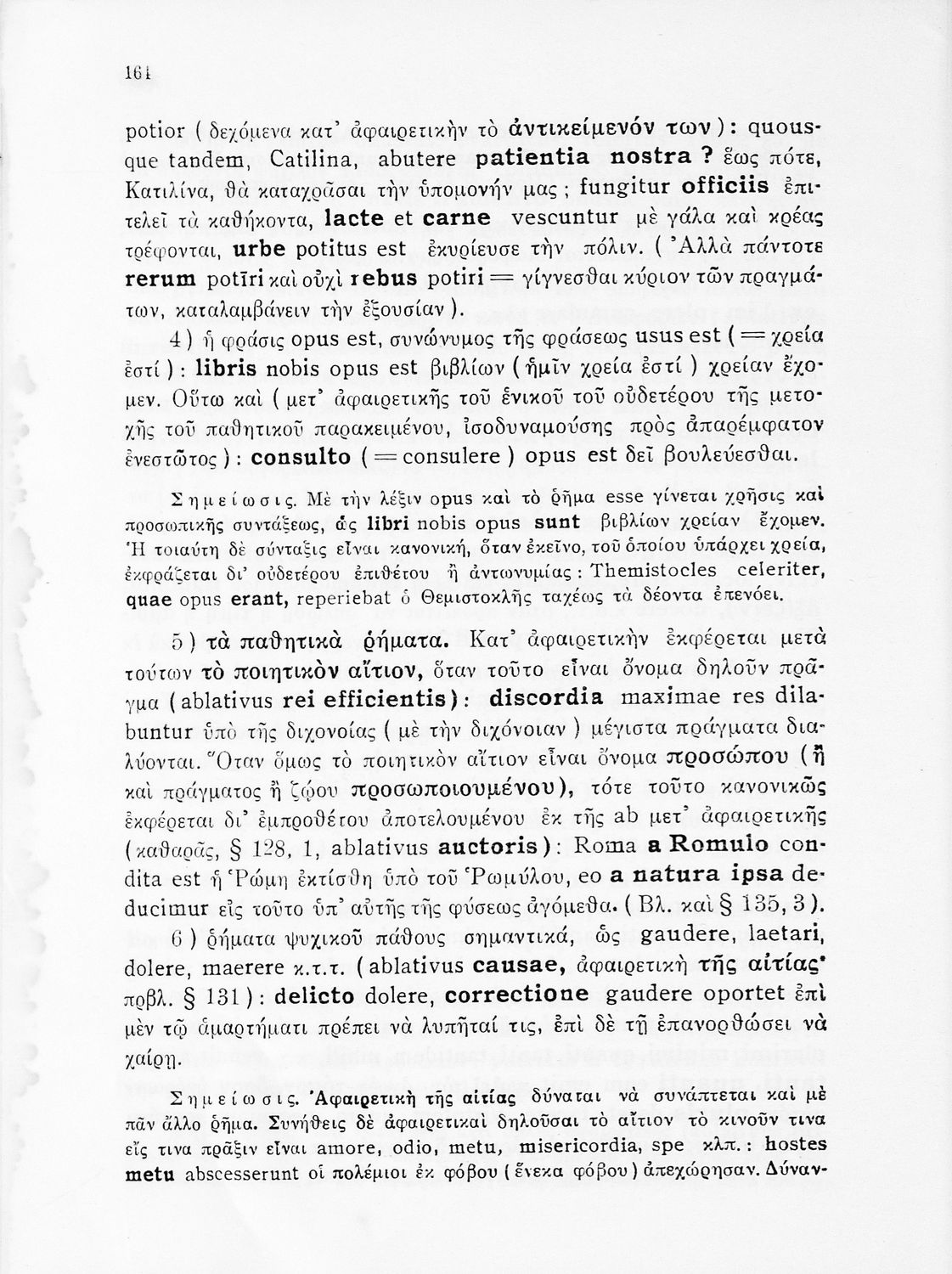Σχολικό εγχειρίδιο Λατινικών Γυμνασίου που περιλαμβάνει γραμματική και συντακτικό και είναι χωρισμένο σε φθογγολογικό, τυπολογικό και ετυμολογικό μέρος.