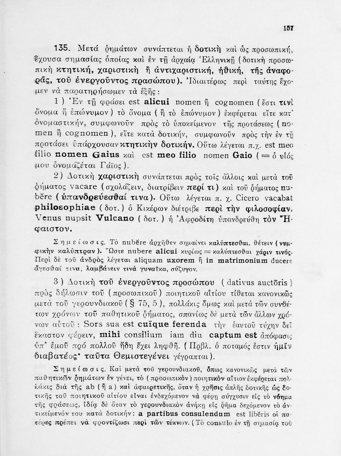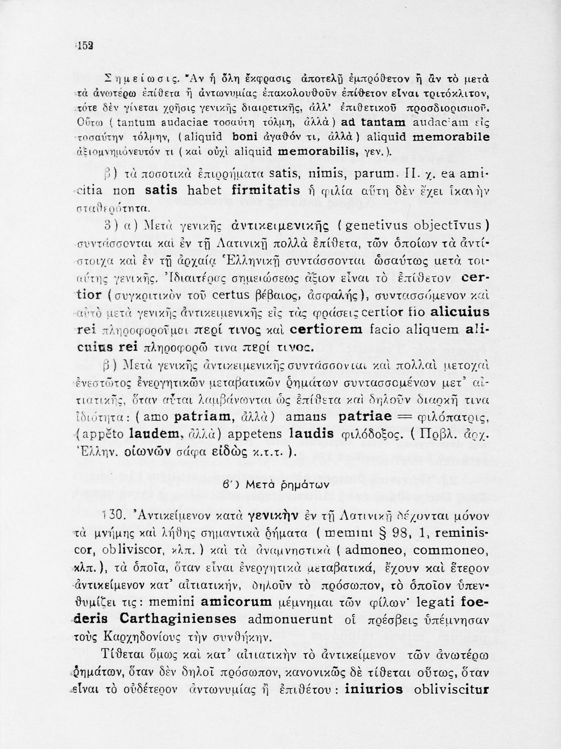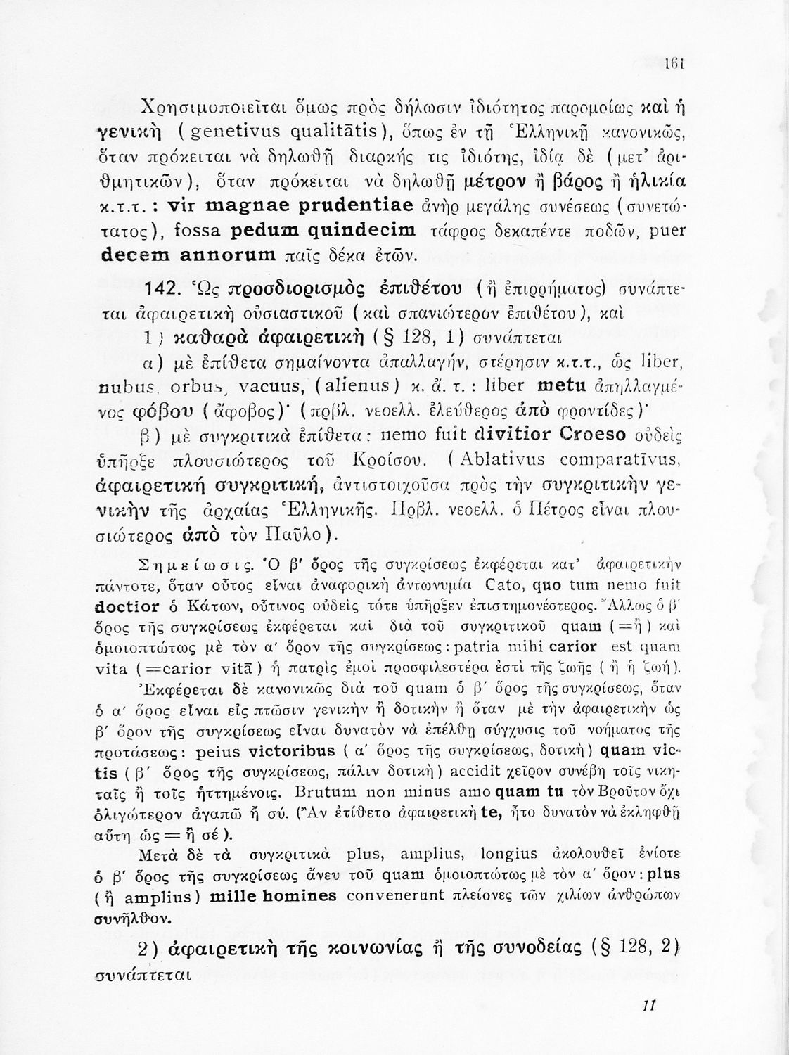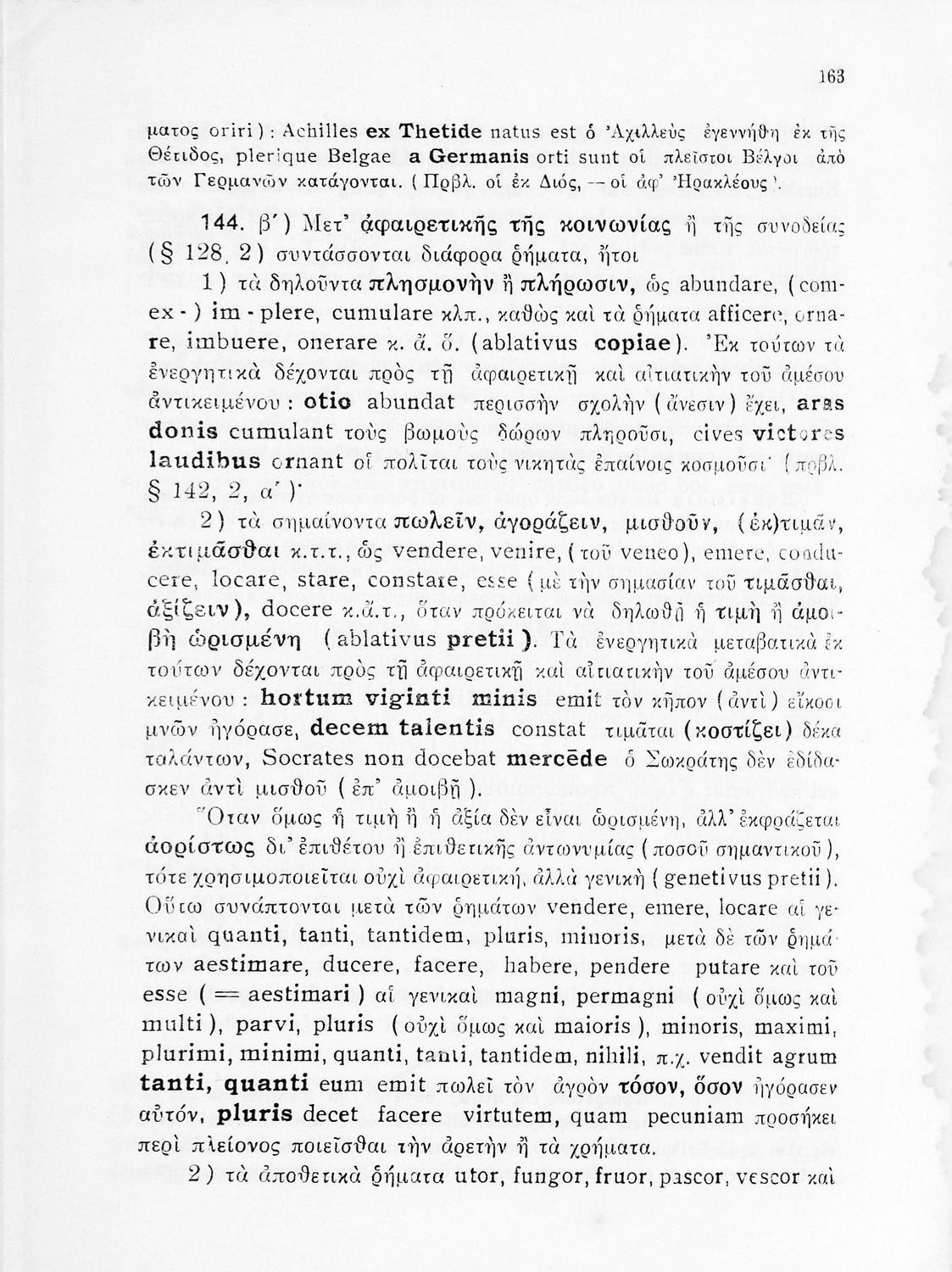 Σχολικό εγχειρίδιο Λατινικών Γυμνασίου που περιλαμβάνει γραμματική και συντακτικό και είναι χωρισμένο σε φθογγολογικό, τυπολογικό και ετυμολογικό μέρος.