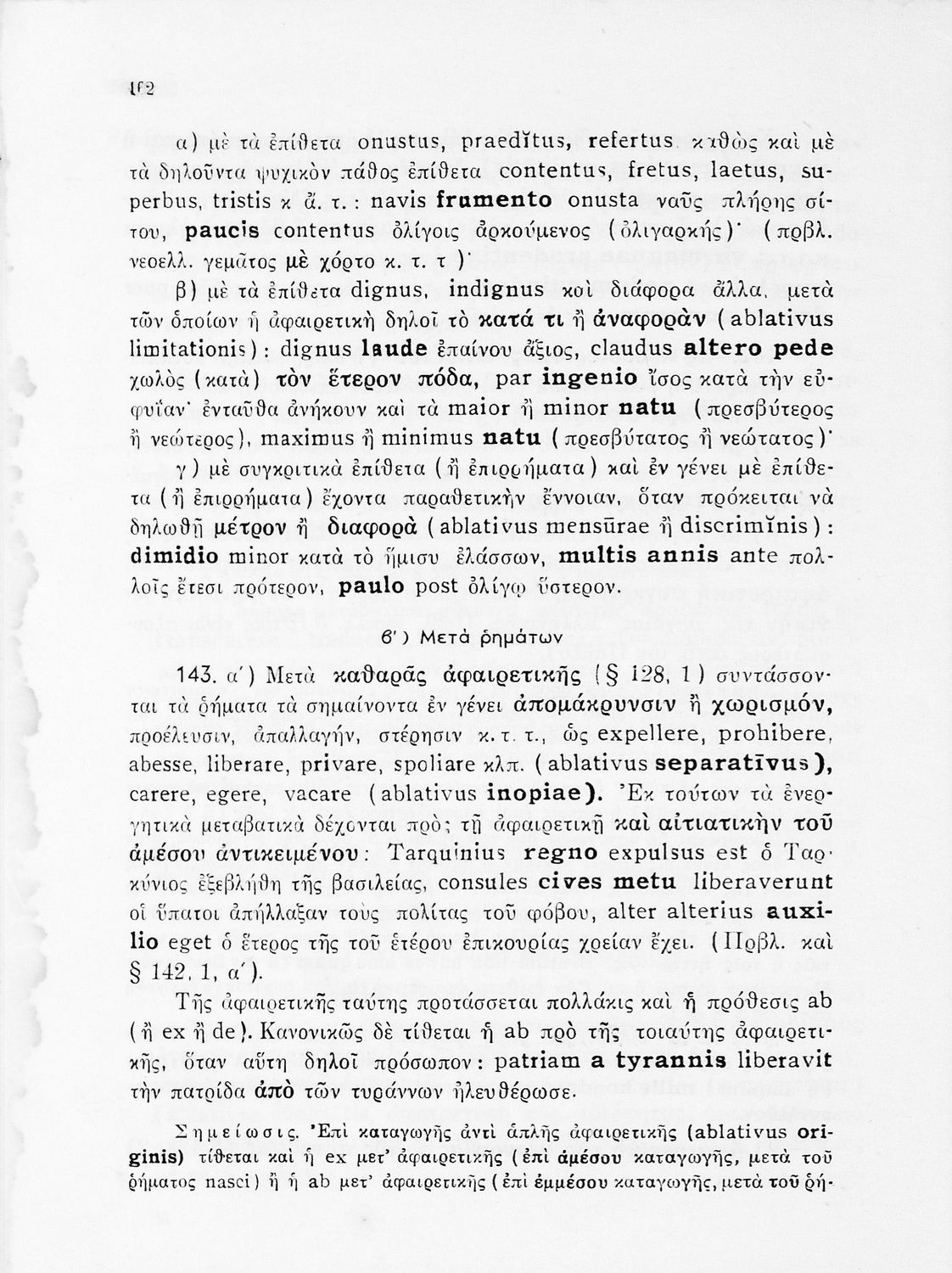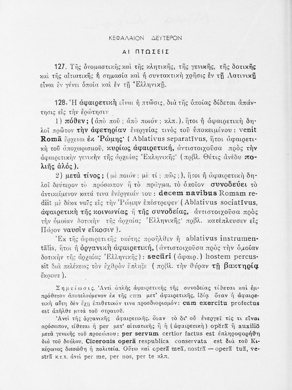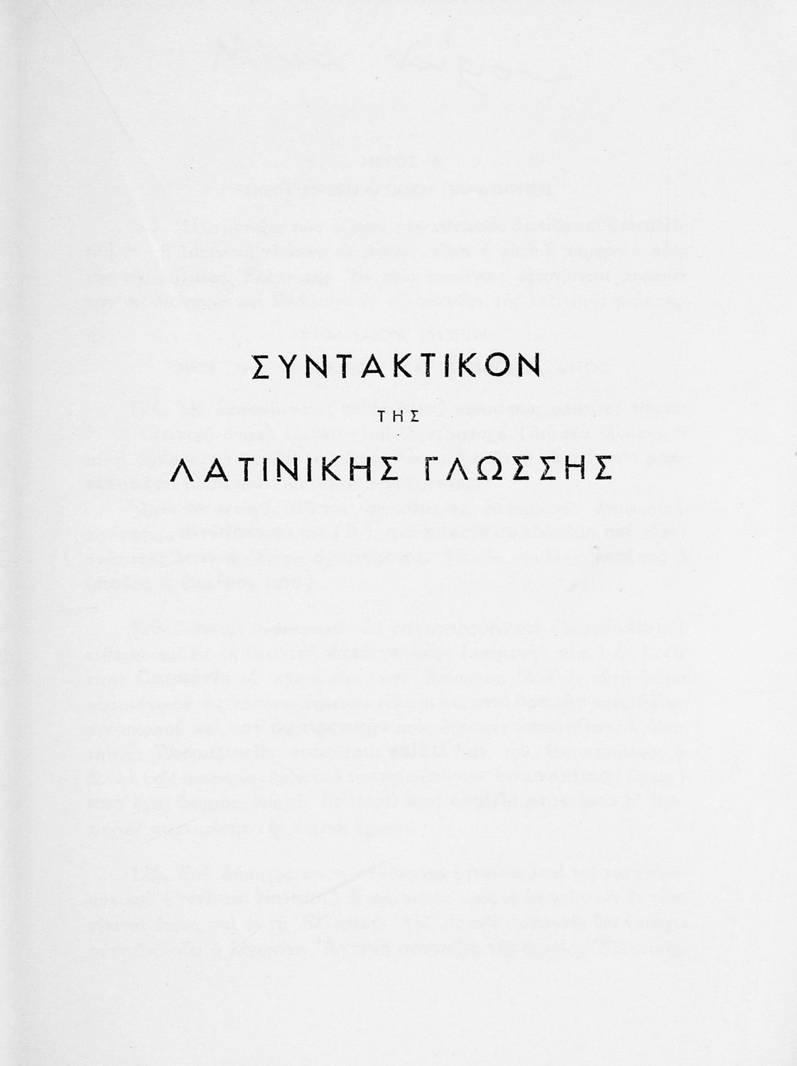 Σχολικό εγχειρίδιο Λατινικών Α΄, Β΄, Γ' Γυμνασίου που περιλαμβάνει γραμματική και συντακτικό και είναι χωρισμένο σε φθογγολογικό, τυπολογικό και ετυμολογικό μέρος.