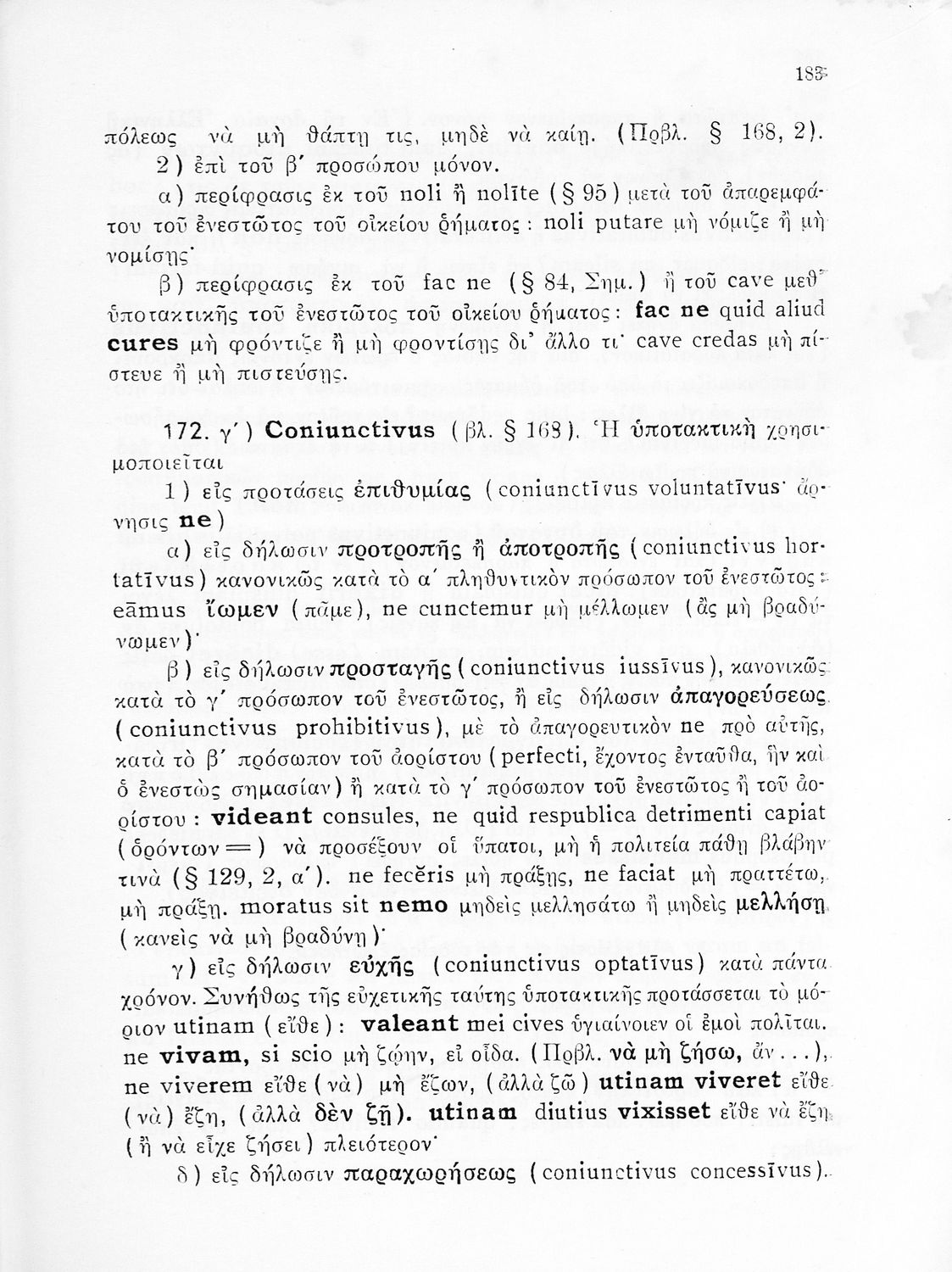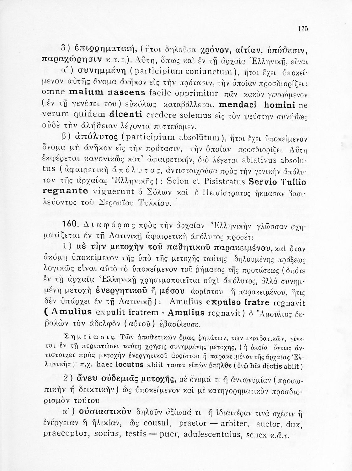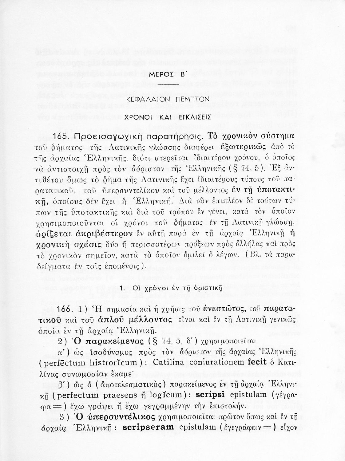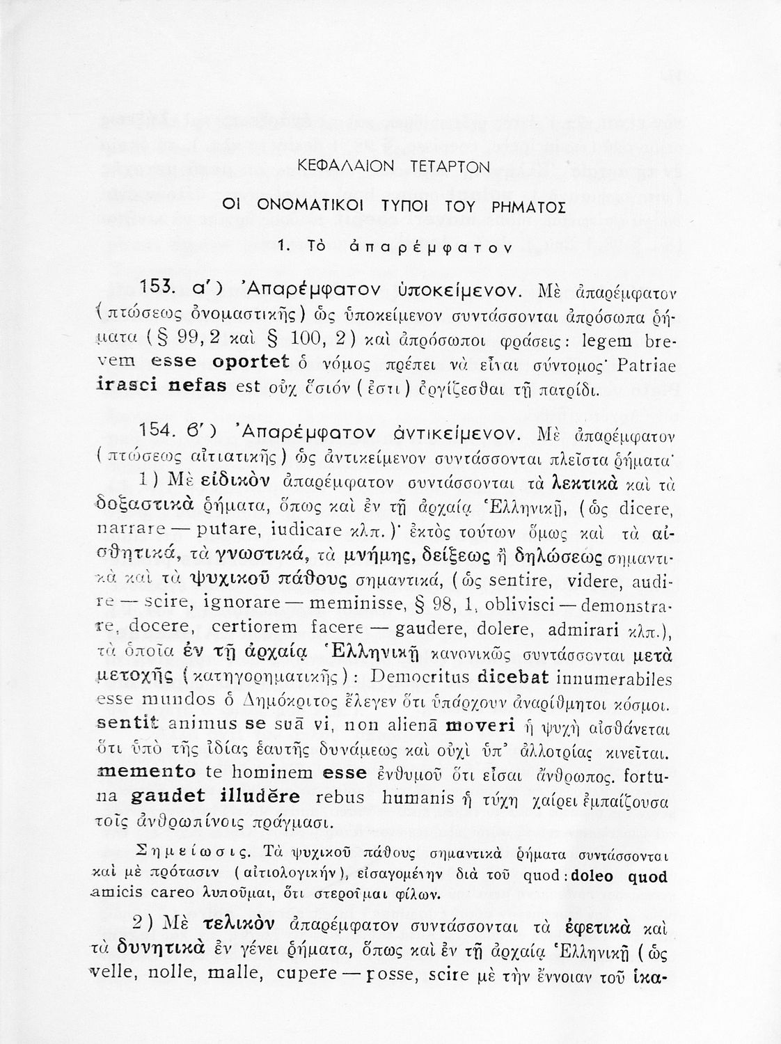 Σχολικό εγχειρίδιο Λατινικών Γυμνασίου που περιλαμβάνει γραμματική και συντακτικό και είναι χωρισμένο σε φθογγολογικό, τυπολογικό και ετυμολογικό μέρος.