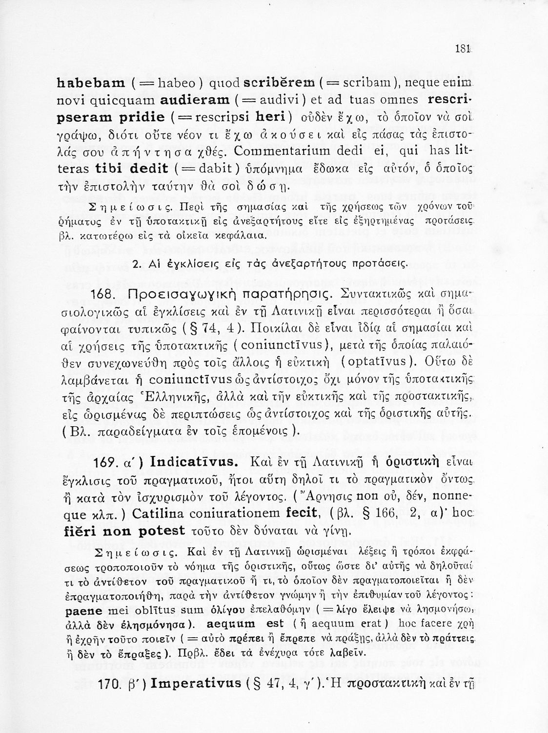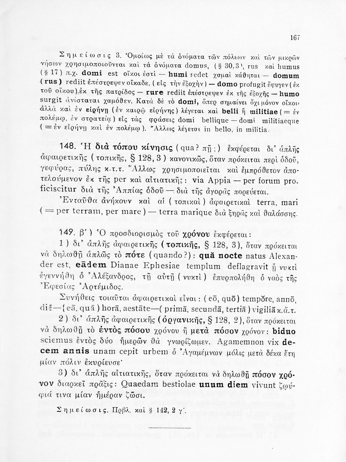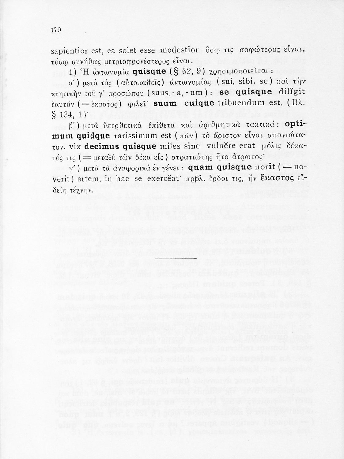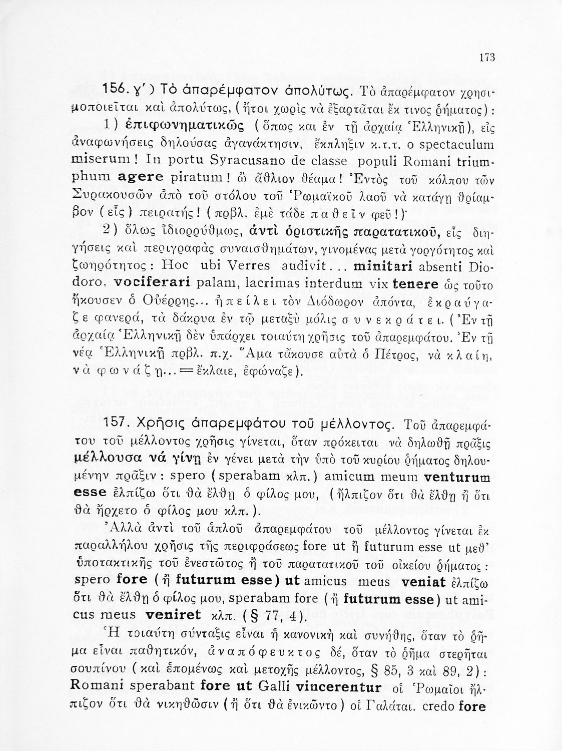 Σχολικό εγχειρίδιο Λατινικών Γυμνασίου που περιλαμβάνει γραμματική και συντακτικό και είναι χωρισμένο σε φθογγολογικό, τυπολογικό και ετυμολογικό μέρος.