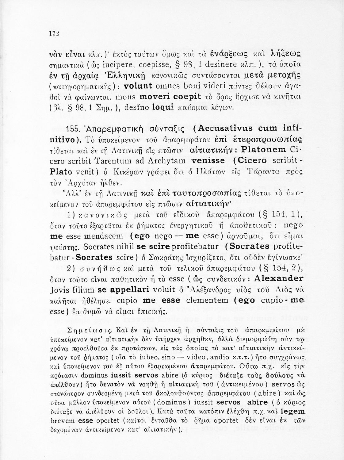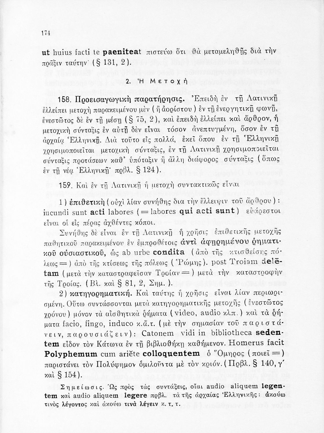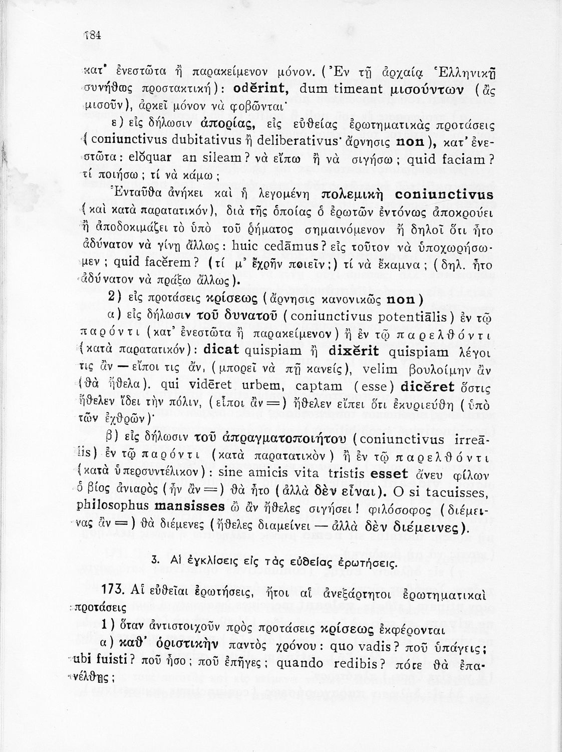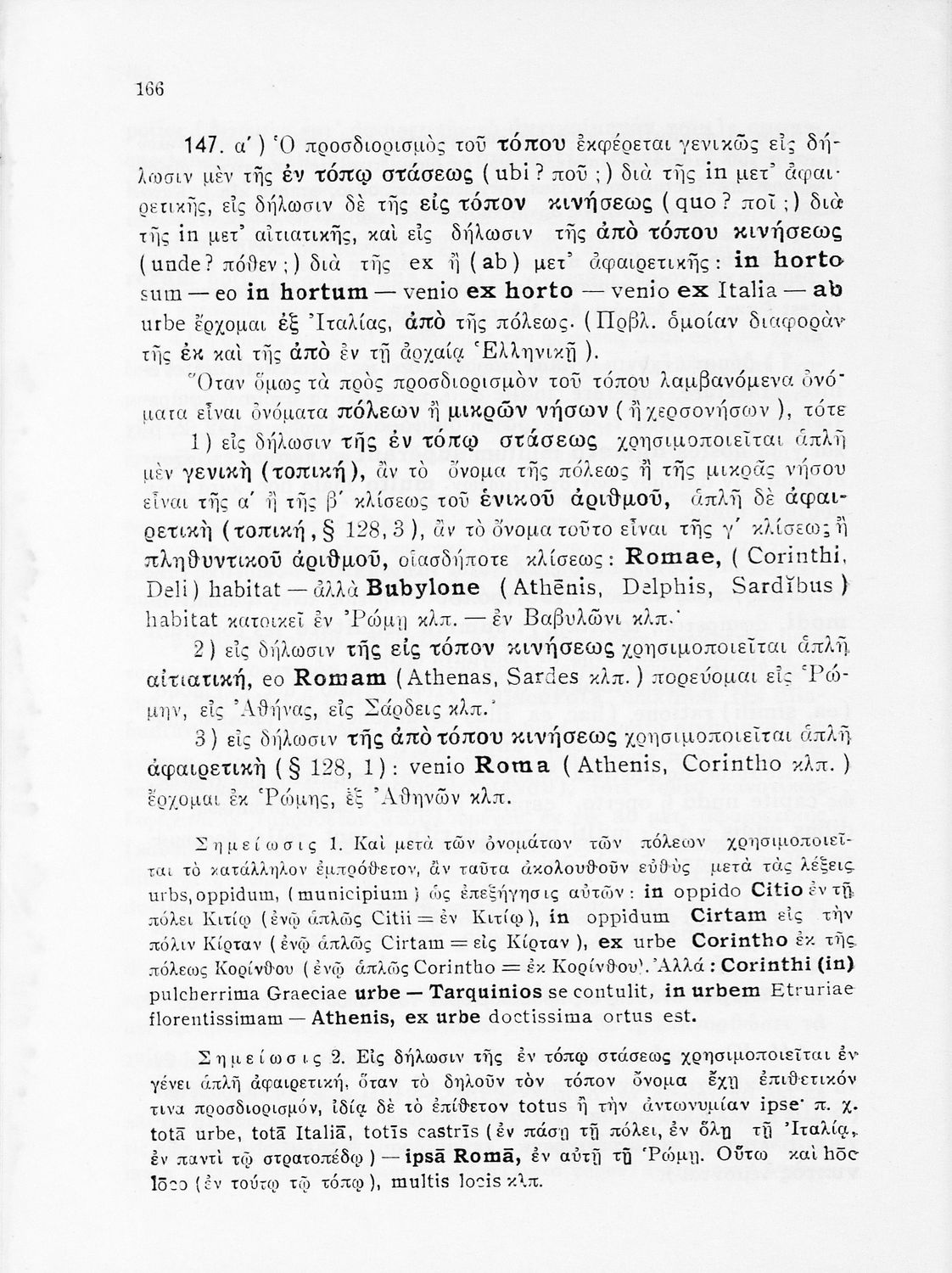 Σχολικό εγχειρίδιο Λατινικών Γυμνασίου που περιλαμβάνει γραμματική και συντακτικό και είναι χωρισμένο σε φθογγολογικό, τυπολογικό και ετυμολογικό μέρος.