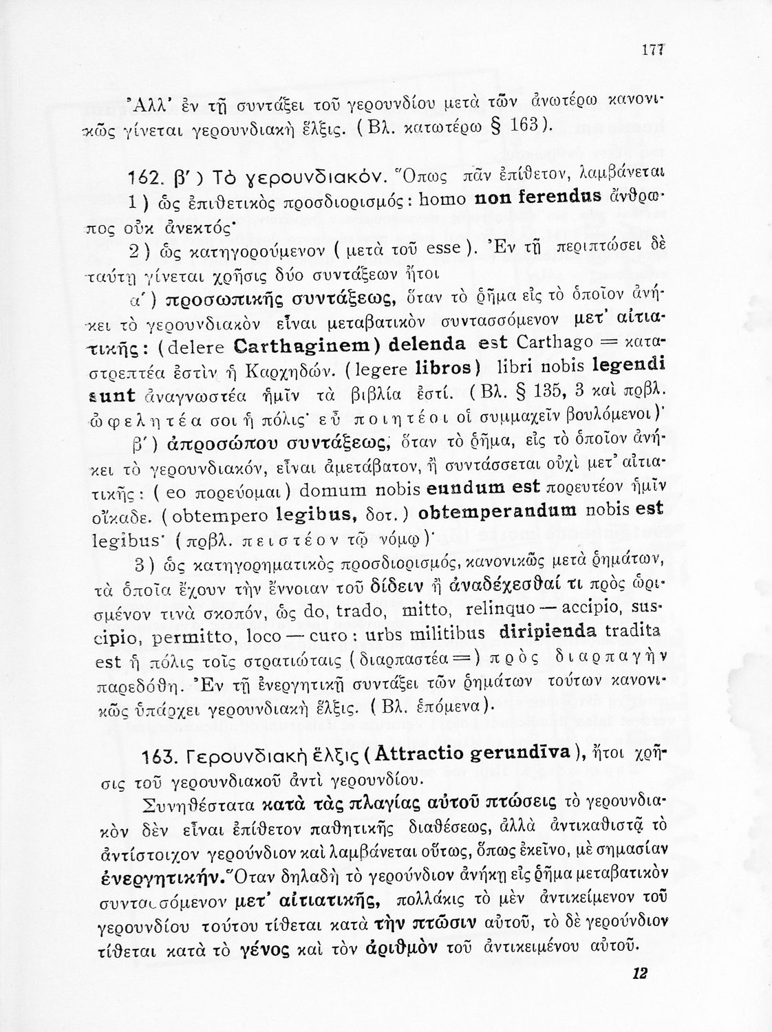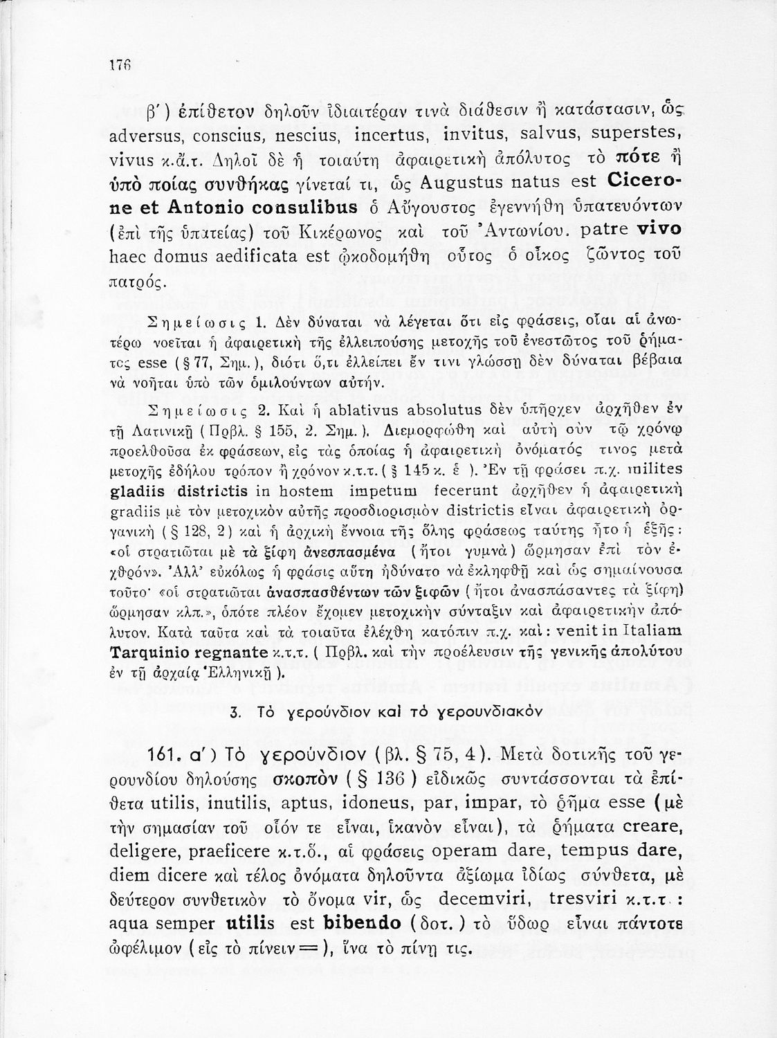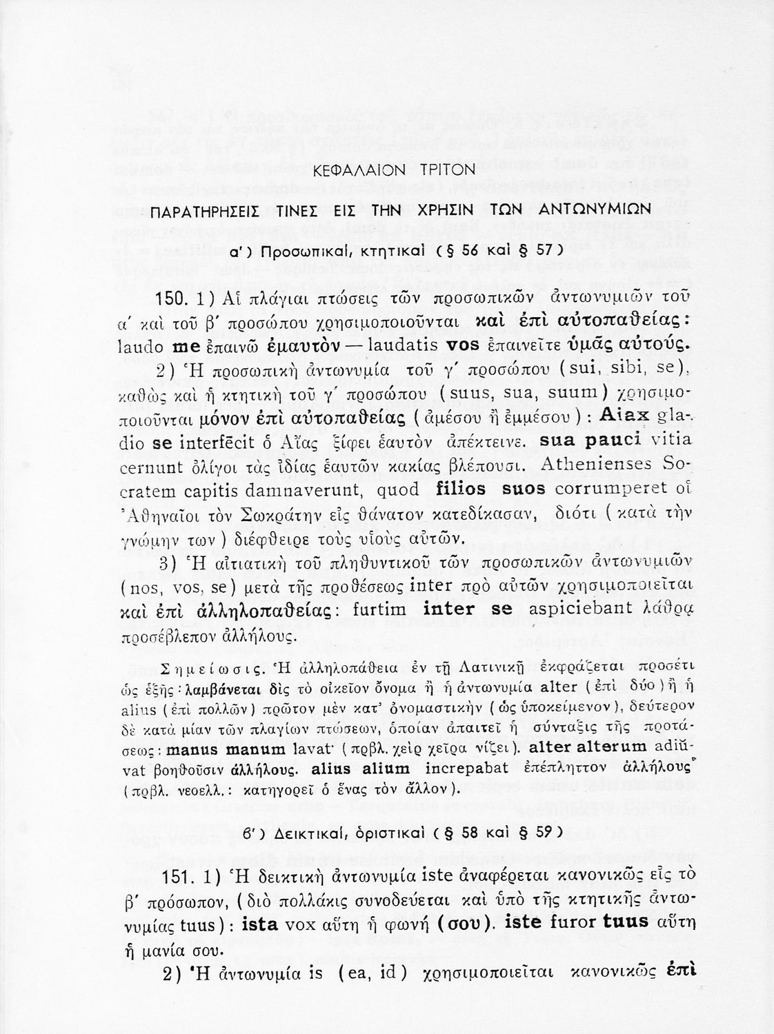 Σχολικό εγχειρίδιο Λατινικών Α΄, Β΄, Γ' Γυμνασίου που περιλαμβάνει γραμματική και συντακτικό και είναι χωρισμένο σε φθογγολογικό, τυπολογικό και ετυμολογικό μέρος.