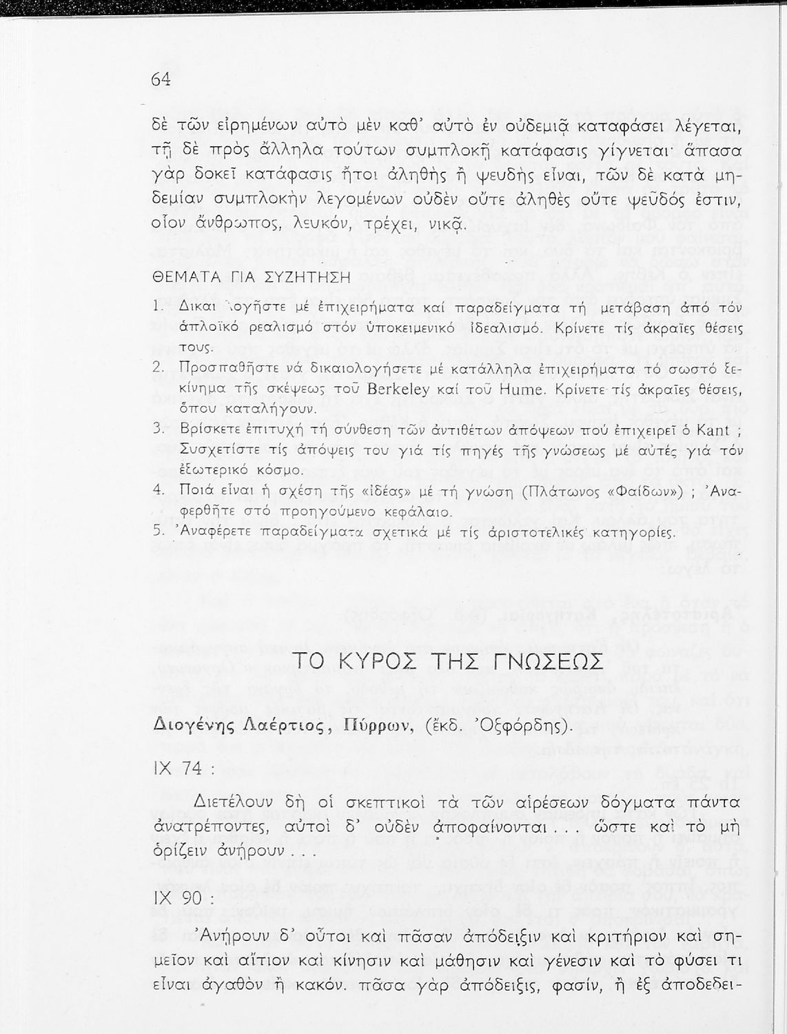 Σχολικό εγχειρίδιο Φιλοσοφίας για την ΣΤ΄ Γυμνασίου που περιέχει αποσπάσματα από διάσημα φιλοσοφικά κείμενα τόσο της ελληνικής αρχαιότητας όσο και της σύγχρονης ευρωπαϊκής σκέψης και θέματα προς συζήτηση. ...