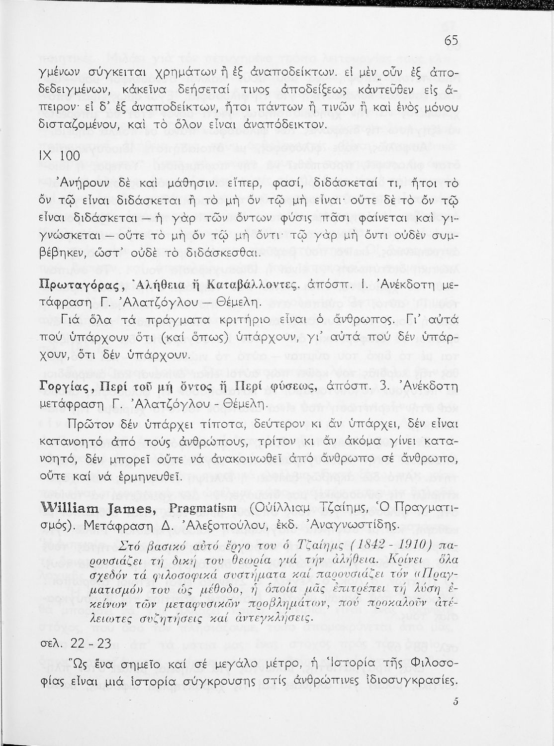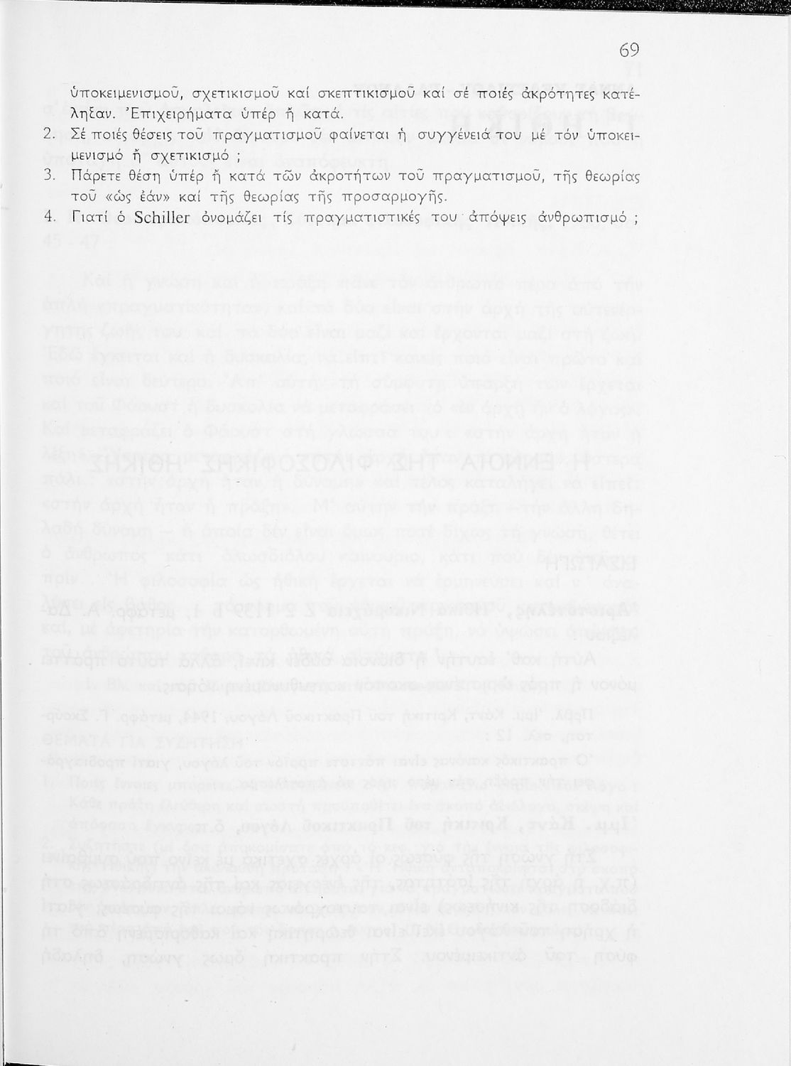 Σχολικό εγχειρίδιο Φιλοσοφίας για την Γ΄ Λυκείου που περιέχει αποσπάσματα από διάσημα φιλοσοφικά κείμενα τόσο της ελληνικής αρχαιότητας όσο και της σύγχρονης ευρωπαϊκής σκέψης και θέματα προς συζήτηση. Περιλαμβάνει και λεξιλόγιο φιλοσοφικών όρων και ειδικό κεφάλαιο για τους προσωκρατικούς.