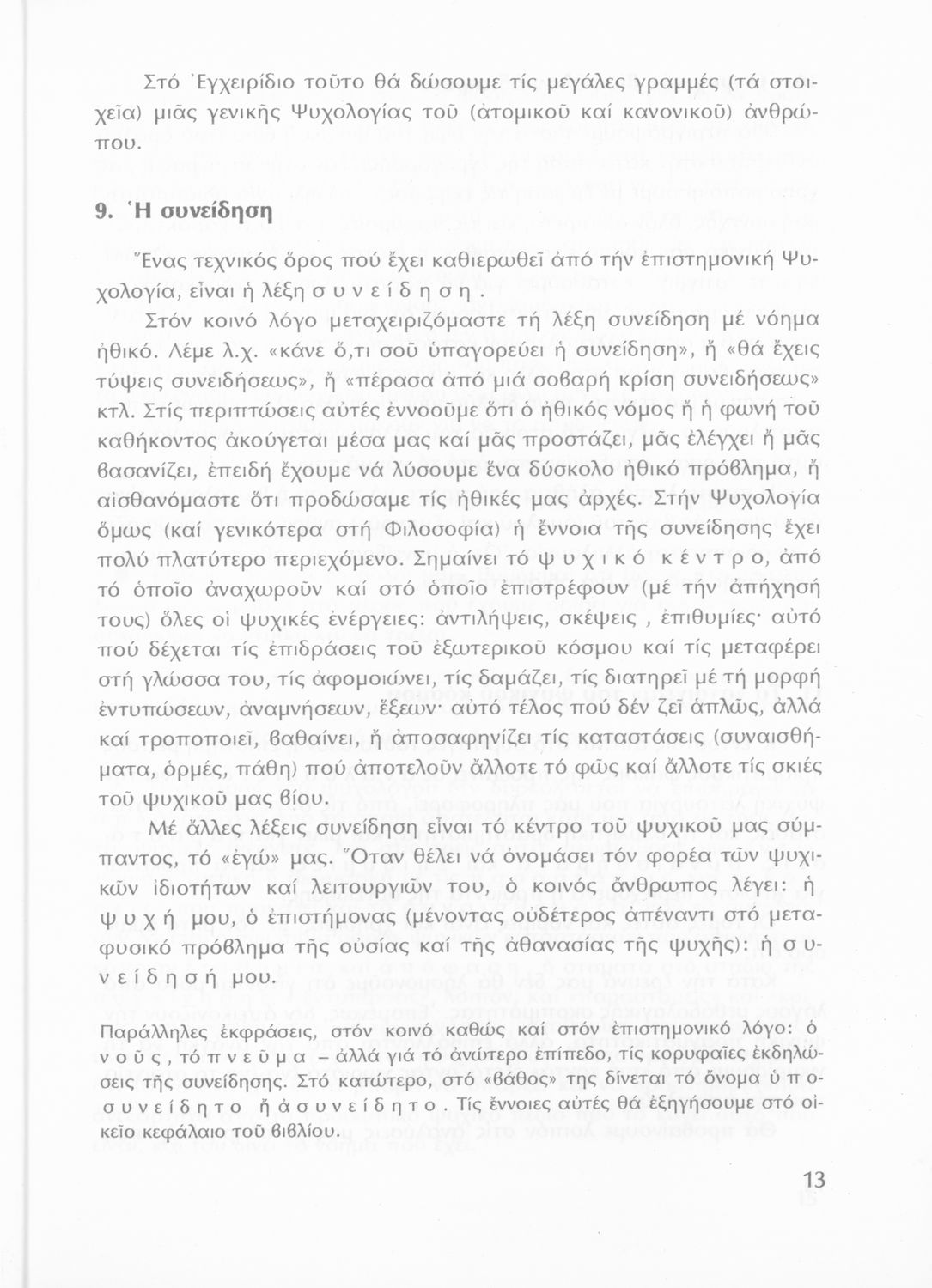 Σχολικό εγχειρίδιο ψυχολογίας για τη Β΄ Λυκείου που προσεγγίζει τη συνείδηση από γνωστική, συναισθηματική και βουλητική άποψη.