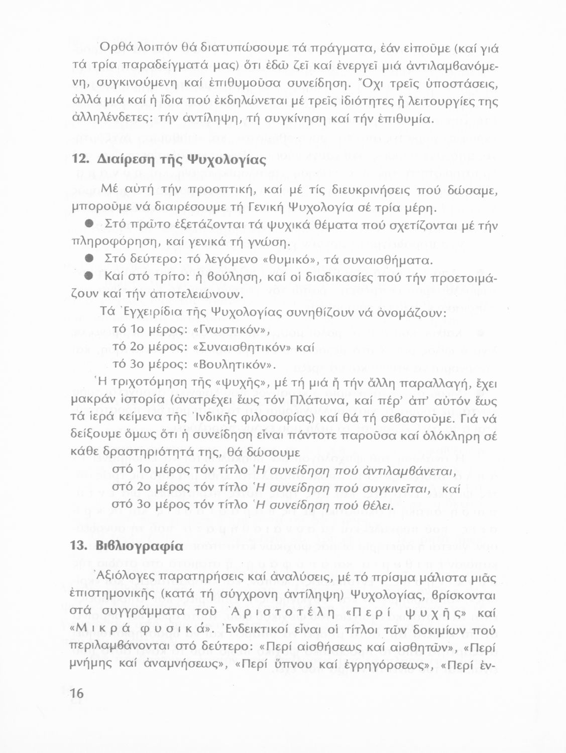 Σχολικό εγχειρίδιο Ψυχολογίας για τη Β΄ Λυκείου που προσεγγίζει τη συνείδηση από γνωστική, συναισθηματική και βουλητική άποψη.
