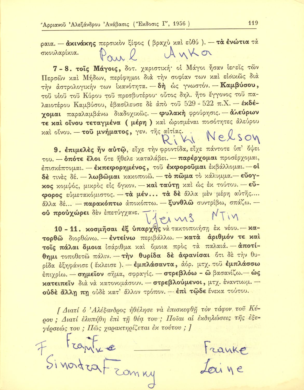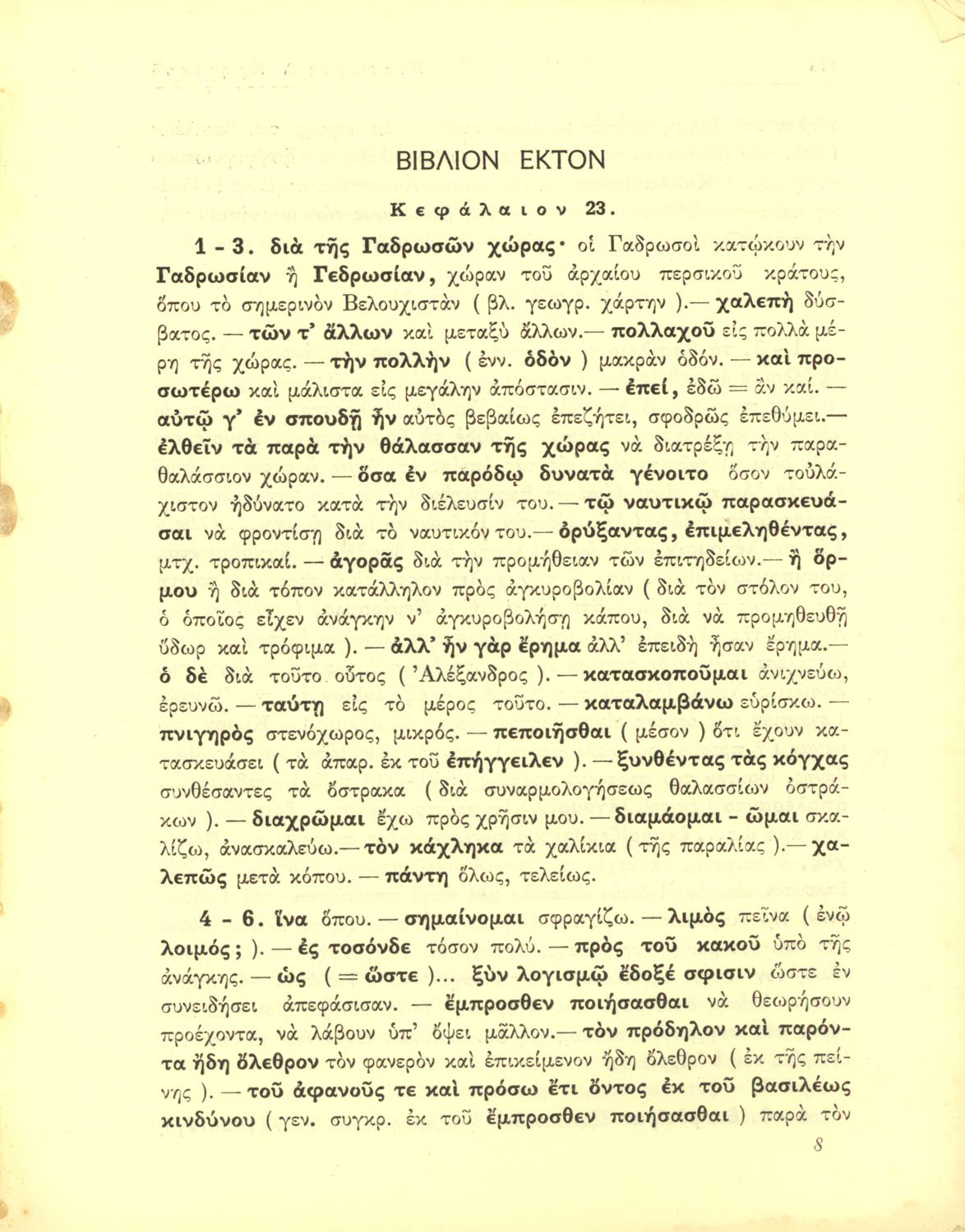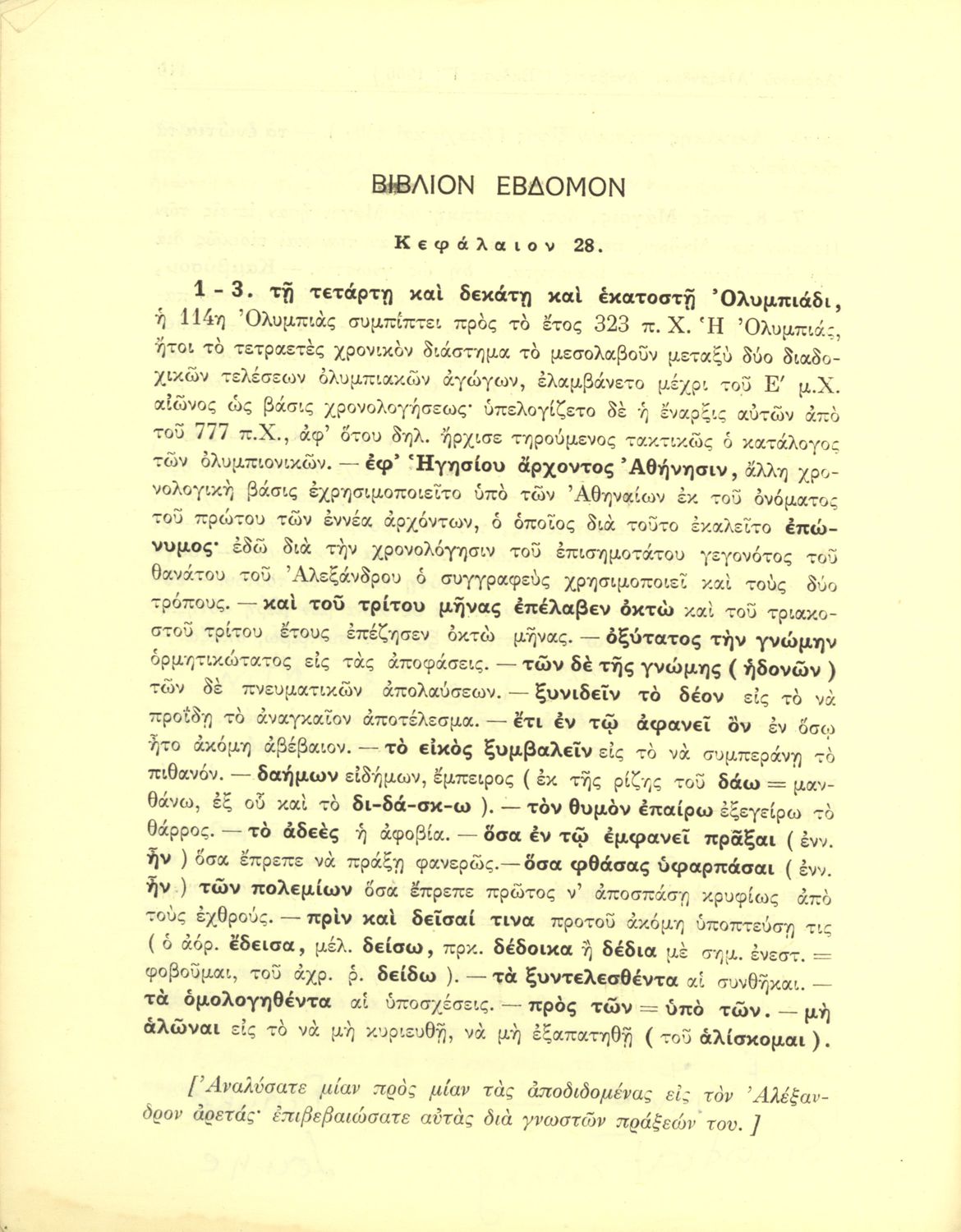 Σχολικό εγχειρίδιο Αρχαίων Ελληνικών που περιλαμβάνει αποσπάσματα από το έργο του Αρριανού Αλέξανδρου Ανάβασις και του Ηρόδοτου Ιστορίαι, ερμηνευτικές και λεξιλογικές παρατηρήσεις καθώς και τοπογραφικούς πίνακες και χάρτες..