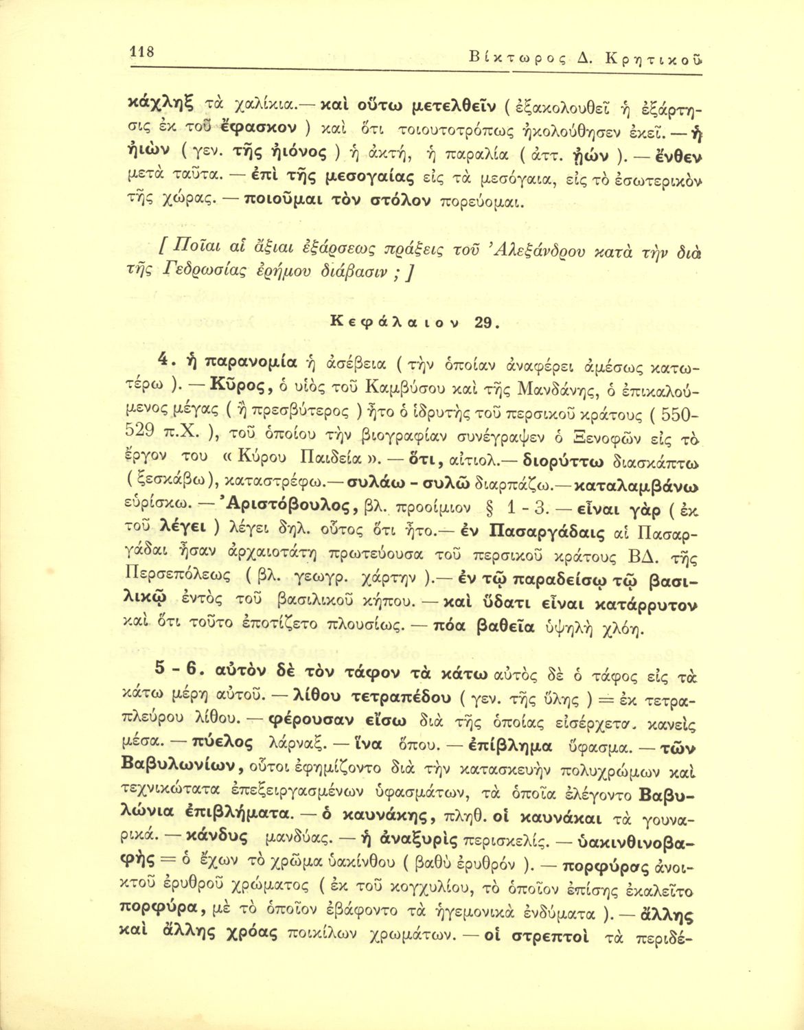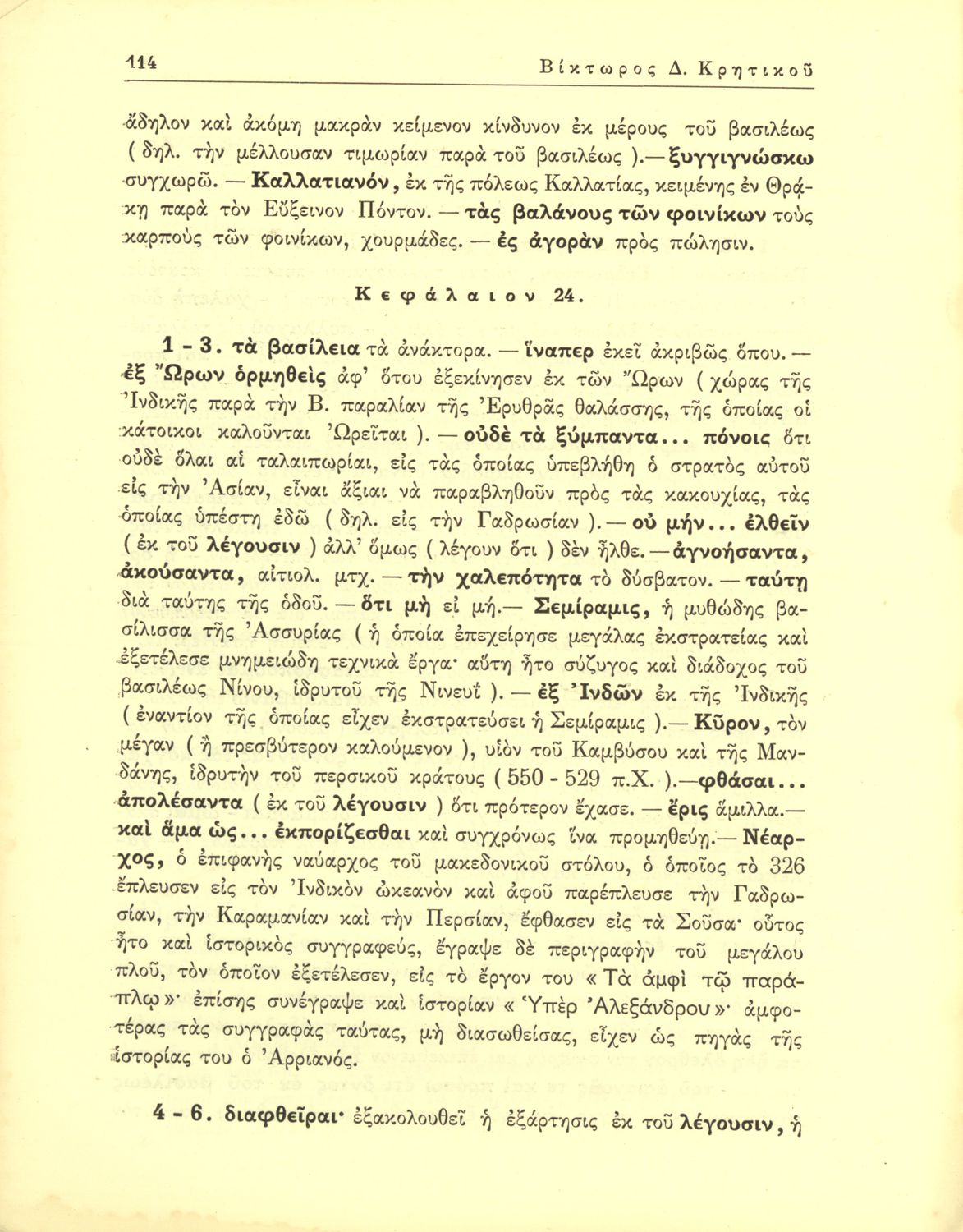 Αρριανός (Lucius Flavius Arrianus), Ηρόδοτος, Βίκτωρος Δ. Κρητικός, Κυριάκος Κοσμάς (σχόλια)