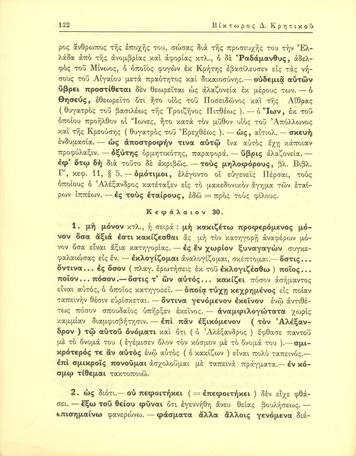 Αρριανός (Lucius Flavius Arrianus), Βίκτωρ Δ. Κρητικός (σχόλια)