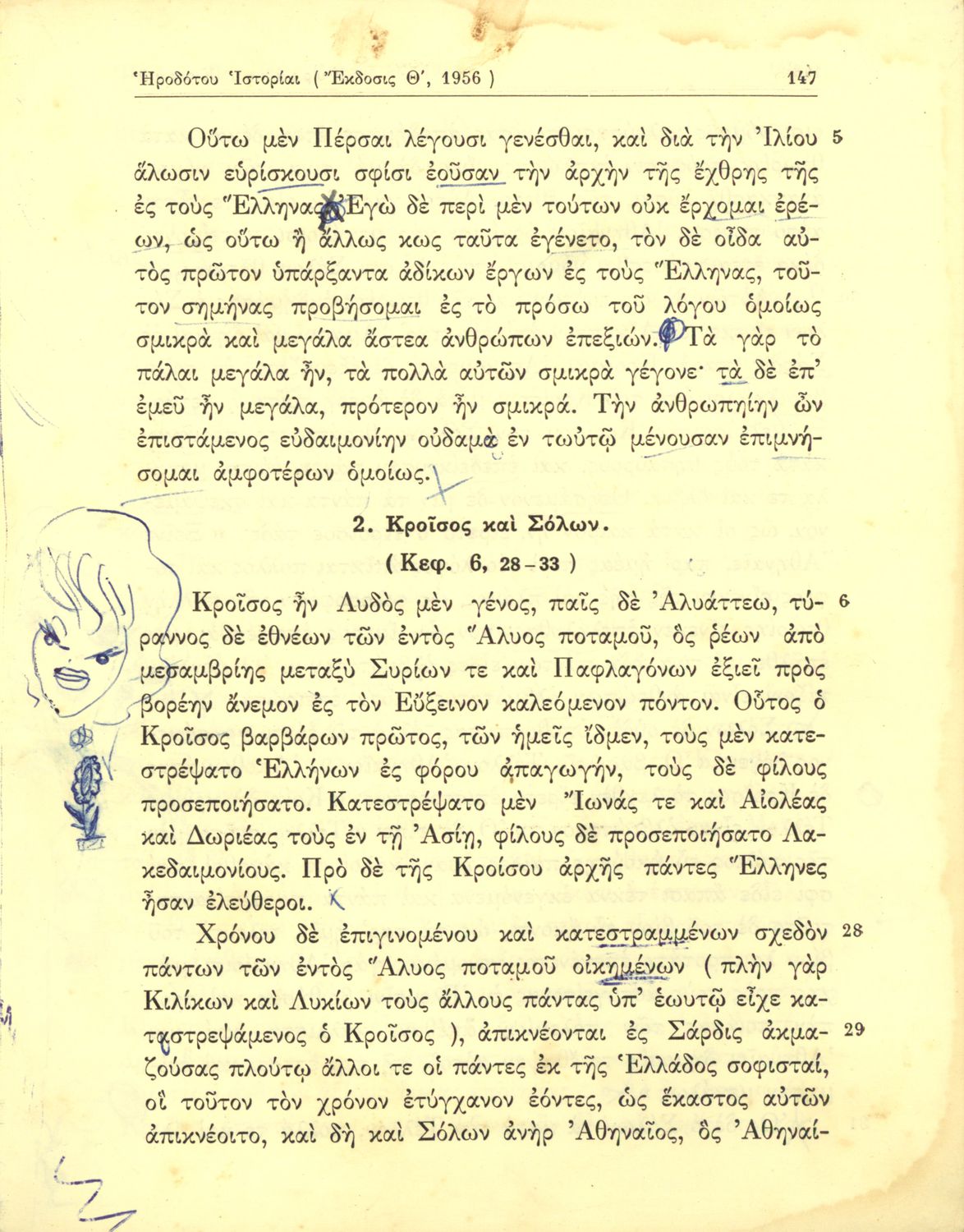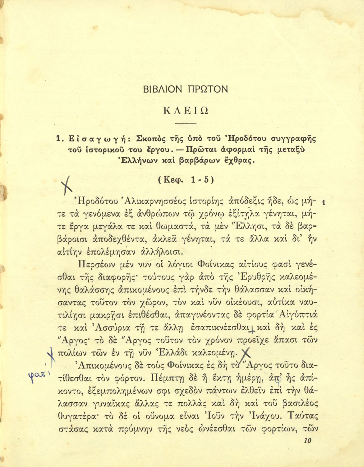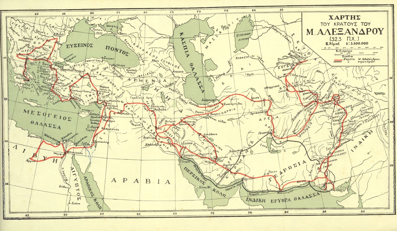 Σχολικό εγχειρίδιο Αρχαίων Ελληνικών που περιλαμβάνει αποσπάσματα από το έργο του Αρριανού Αλέξανδρου Ανάβασις και του Ηρόδοτου Ιστορίαι, ερμηνευτικές και λεξιλογικές παρατηρήσεις καθώς και τοπογραφικούς πίνακες και χάρτες..