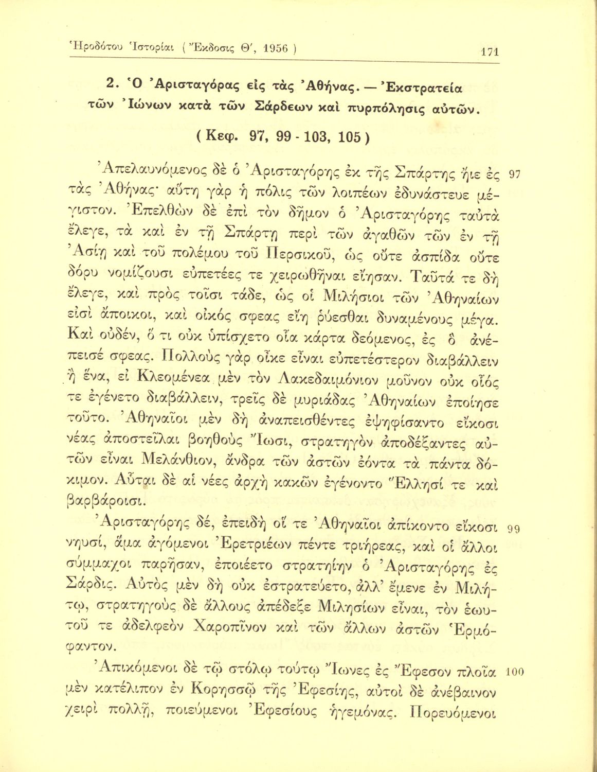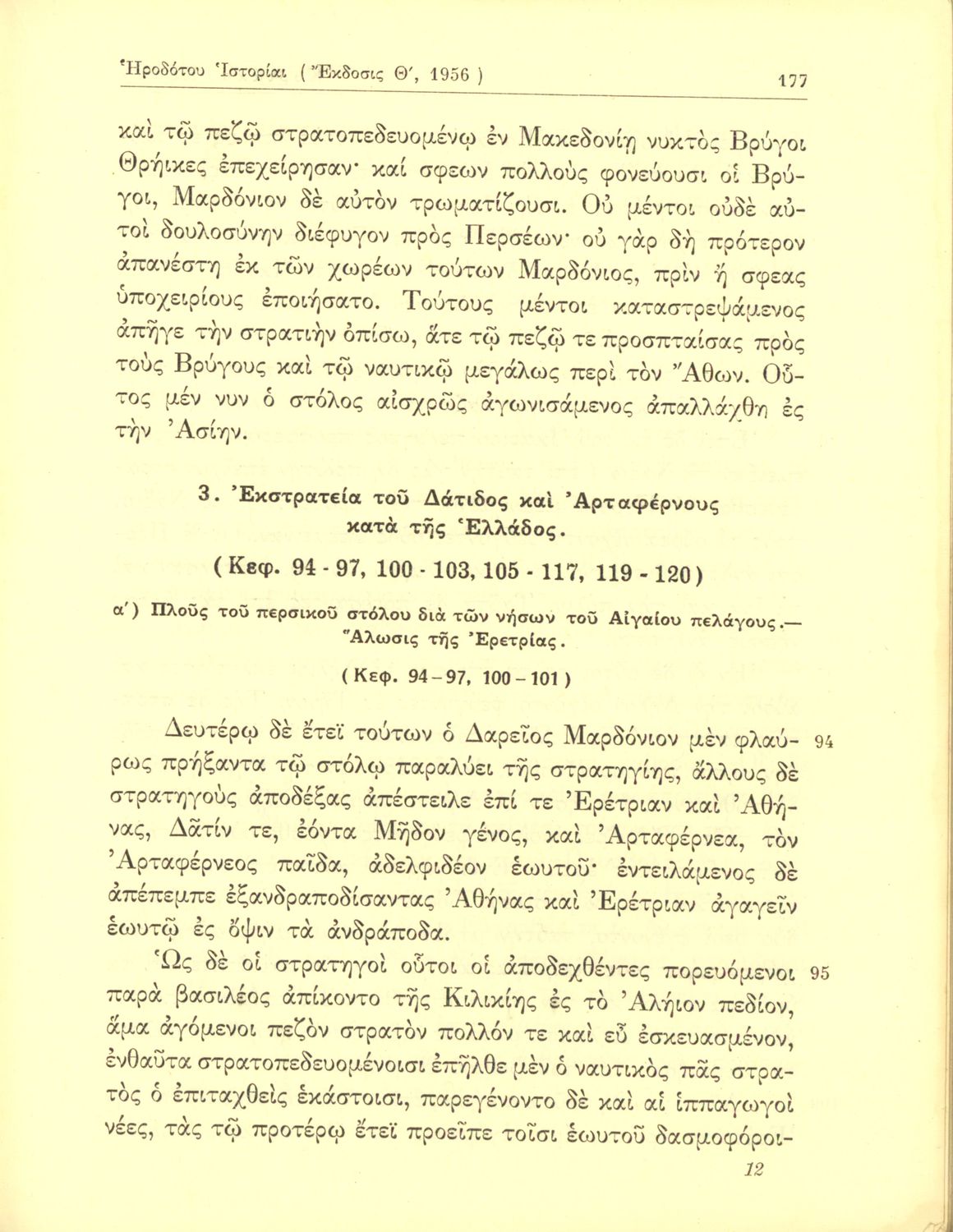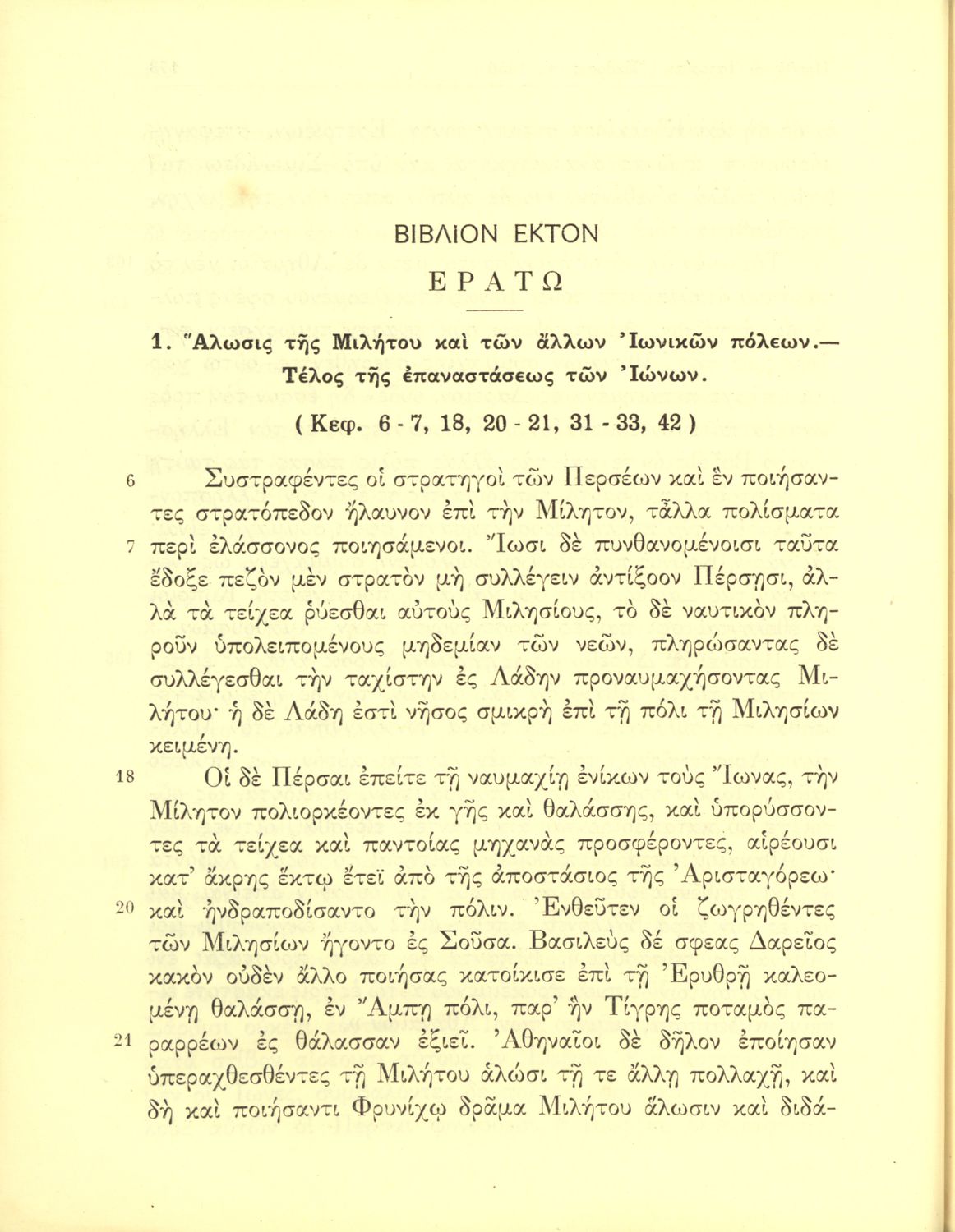 Σχολικό εγχειρίδιο Αρχαίων Ελληνικών που περιλαμβάνει αποσπάσματα από το έργο του Αρριανού Αλέξανδρου Ανάβασις και του Ηρόδοτου Ιστορίαι, ερμηνευτικές και λεξιλογικές παρατηρήσεις καθώς και τοπογραφικούς πίνακες και χάρτες..