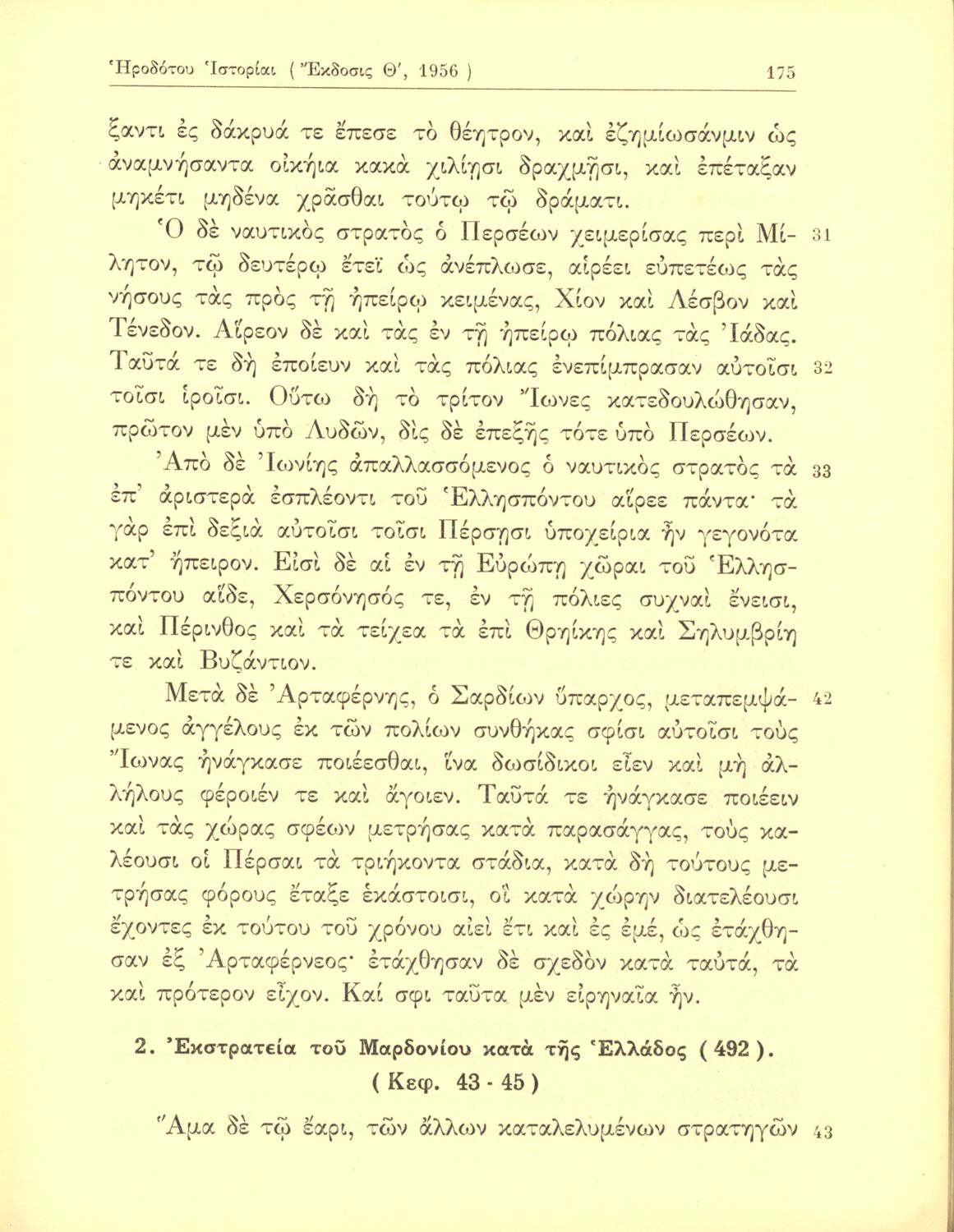 Σχολικό εγχειρίδιο Αρχαίων Ελληνικών που περιλαμβάνει αποσπάσματα από το έργο του Αρριανού Αλέξανδρου Ανάβασις και του Ηρόδοτου Ιστορίαι, ερμηνευτικές και λεξιλογικές παρατηρήσεις καθώς και τοπογραφικούς ...