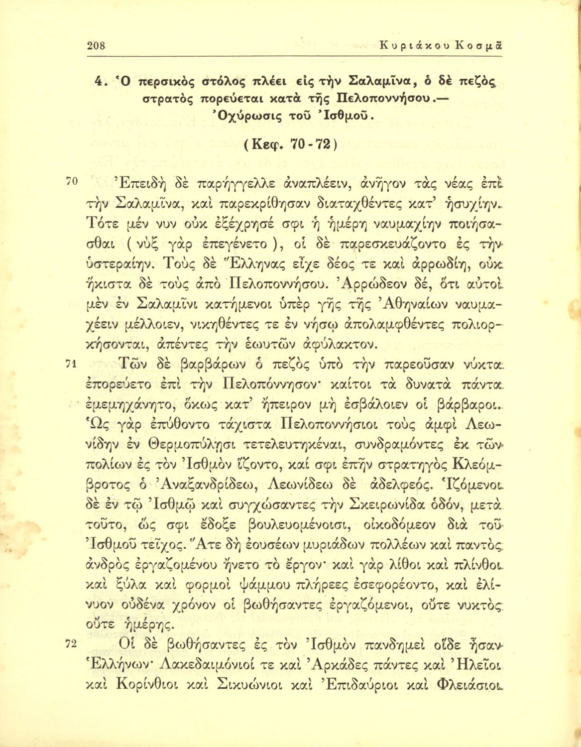 Σχολικό εγχειρίδιο Αρχαίων Ελληνικών που περιλαμβάνει αποσπάσματα από το έργο του Αρριανού Αλέξανδρου Ανάβασις και του Ηρόδοτου Ιστορίαι, ερμηνευτικές και λεξιλογικές παρατηρήσεις καθώς και τοπογραφικούς πίνακες και χάρτες..