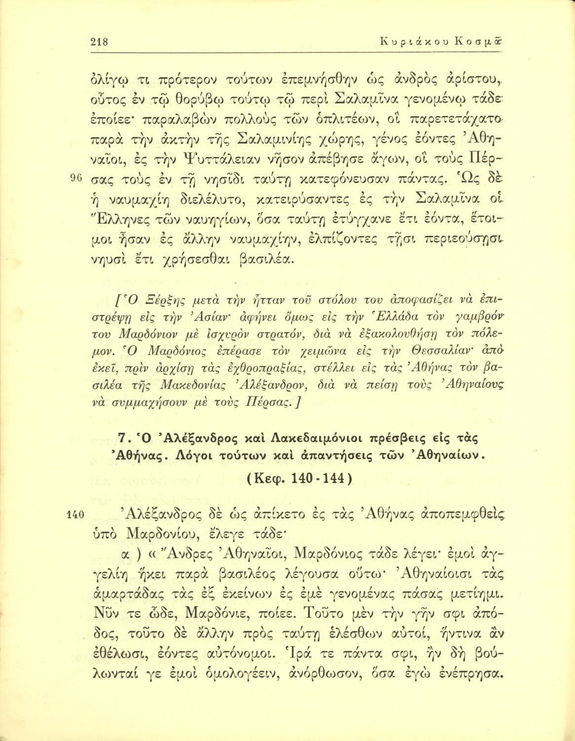 Αρριανός (Lucius Flavius Arrianus), Ηρόδοτος, Βίκτωρος Δ. Κρητικός, Κυριάκος Κοσμάς (σχόλια)