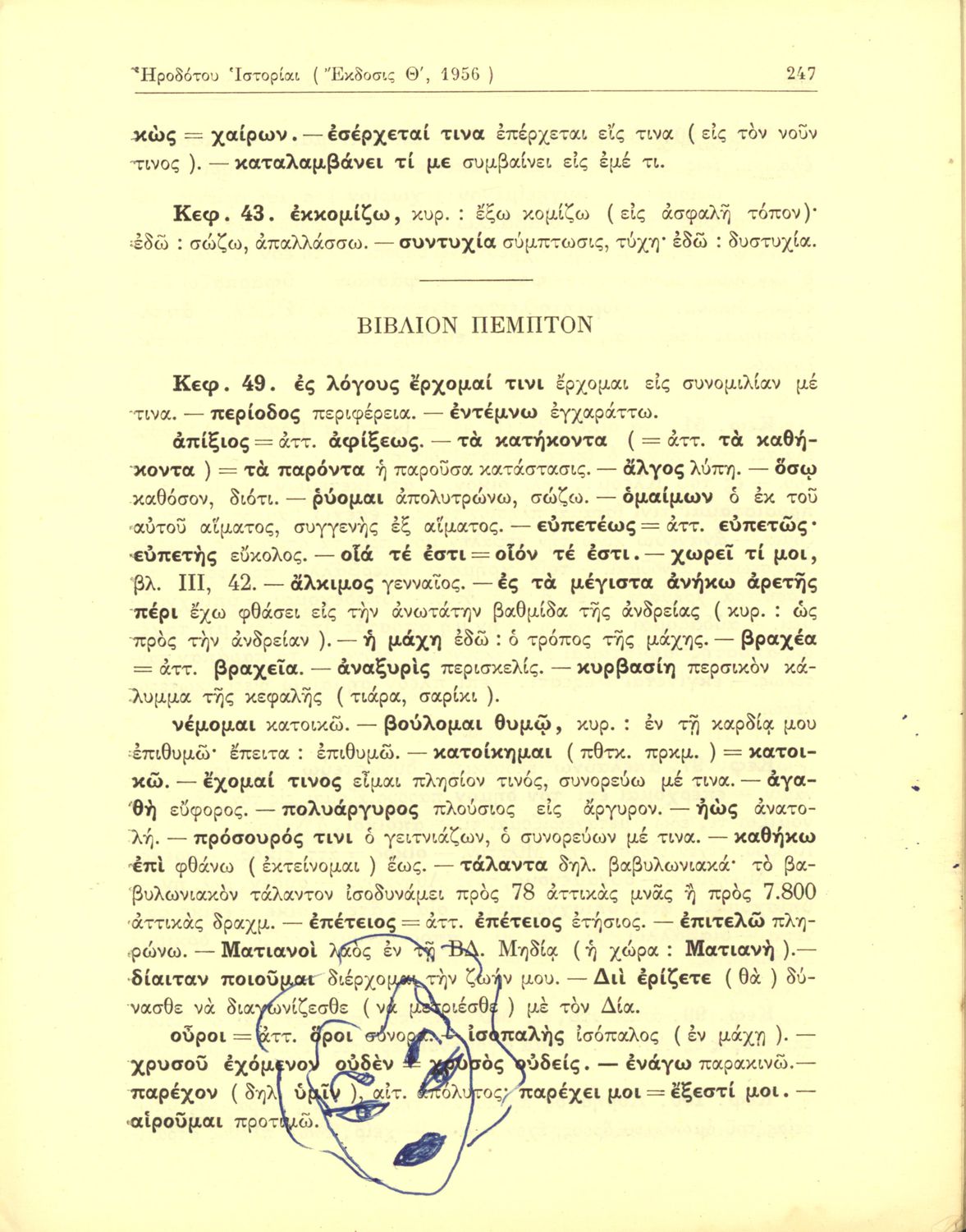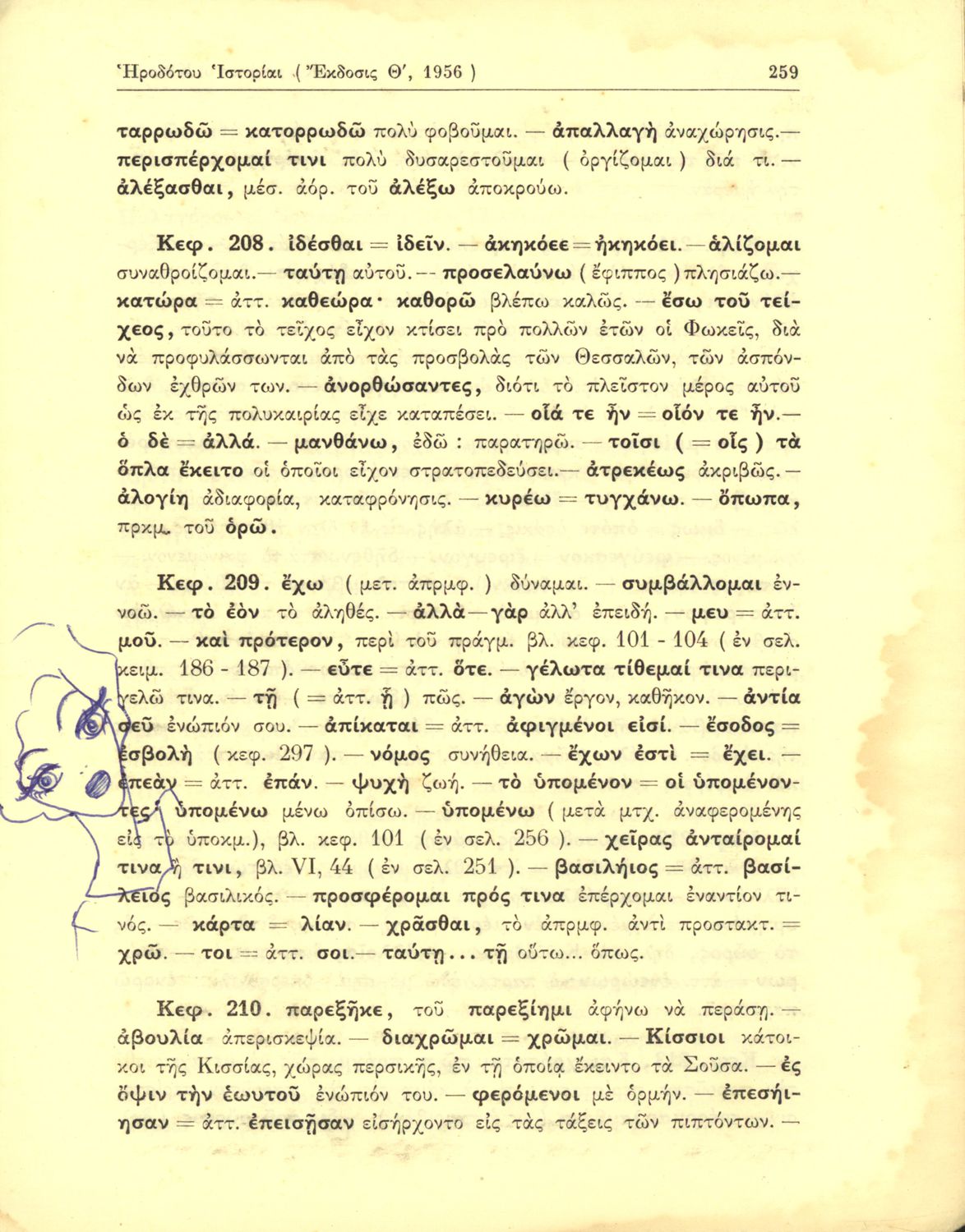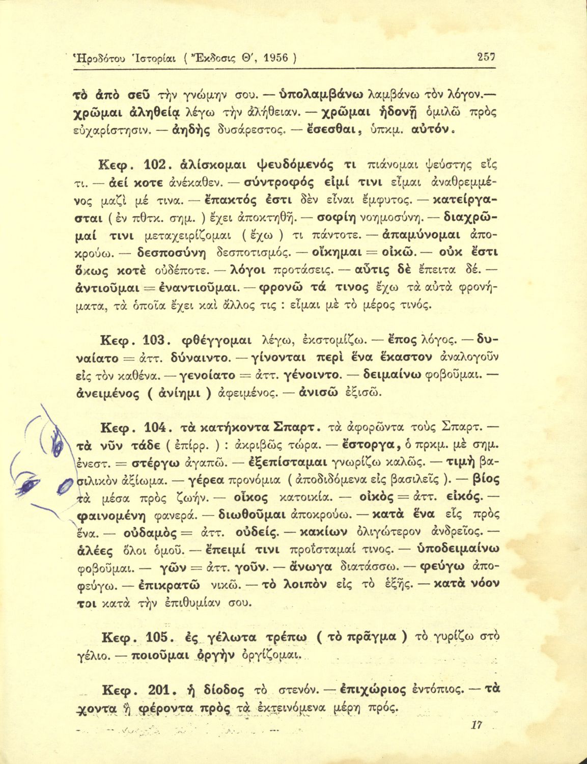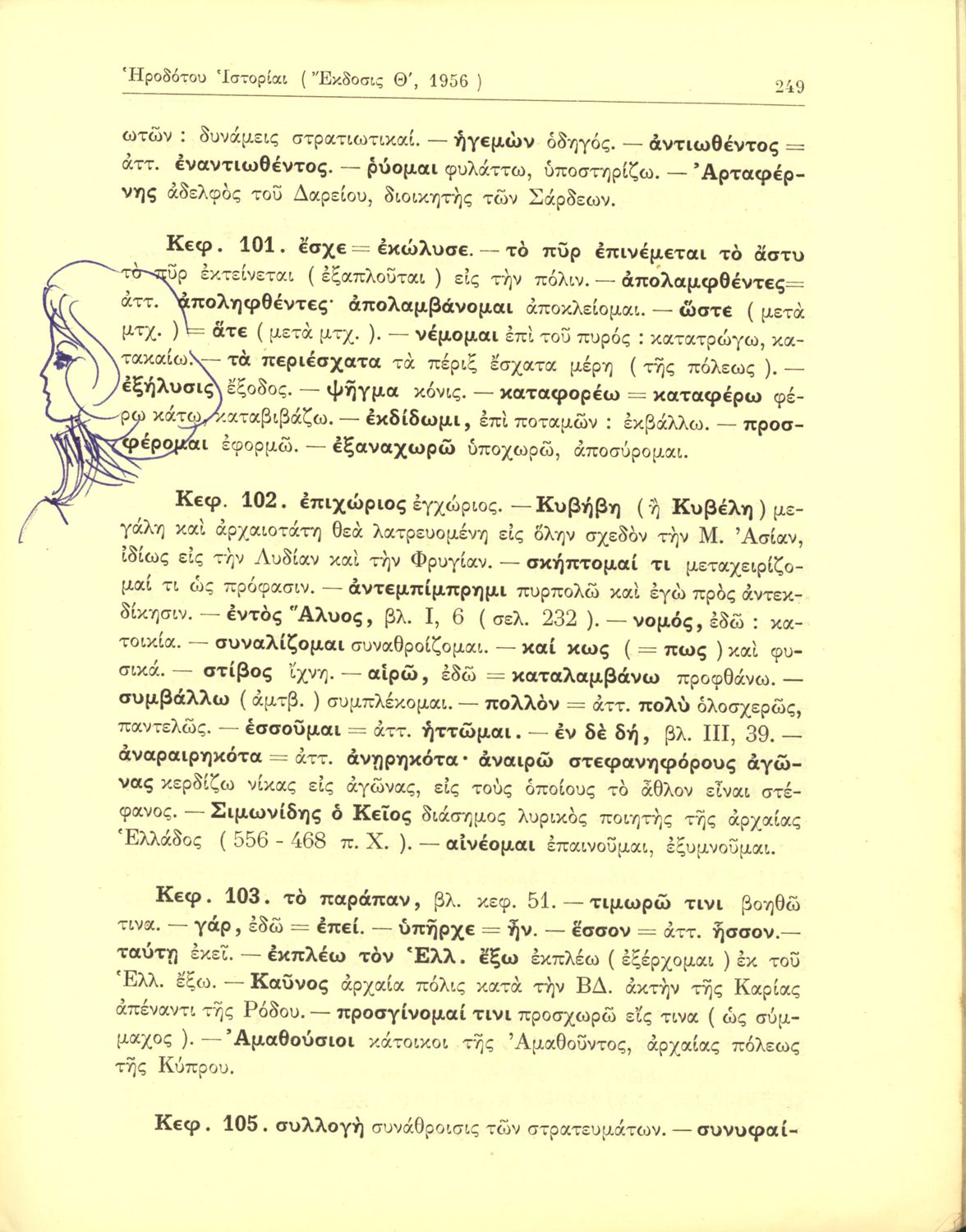 Σχολικό εγχειρίδιο Αρχαίων Ελληνικών που περιλαμβάνει αποσπάσματα από το έργο του Αρριανού Αλέξανδρου Ανάβασις και του Ηρόδοτου Ιστορίαι, ερμηνευτικές και λεξιλογικές παρατηρήσεις καθώς και τοπογραφικούς ...
