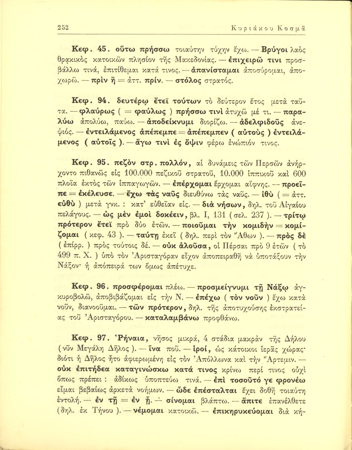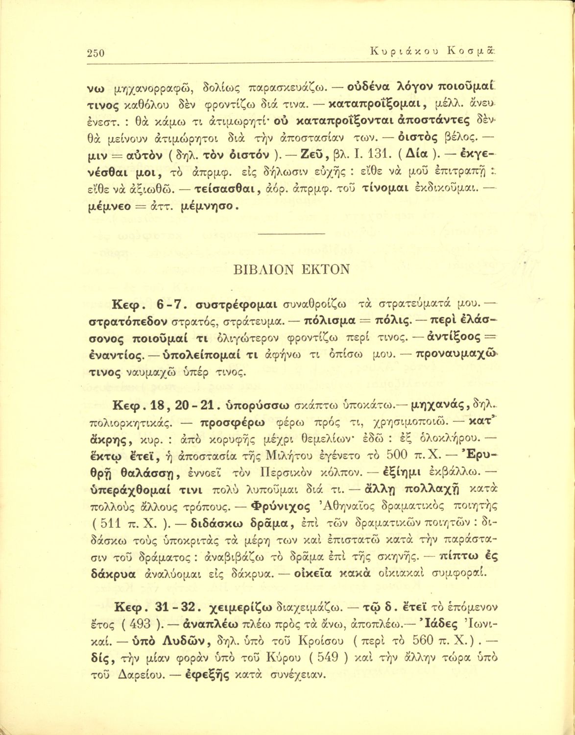 Αρριανός (Lucius Flavius Arrianus), Ηρόδοτος, Βίκτωρος Δ. Κρητικός, Κυριάκος Κοσμάς (σχόλια)