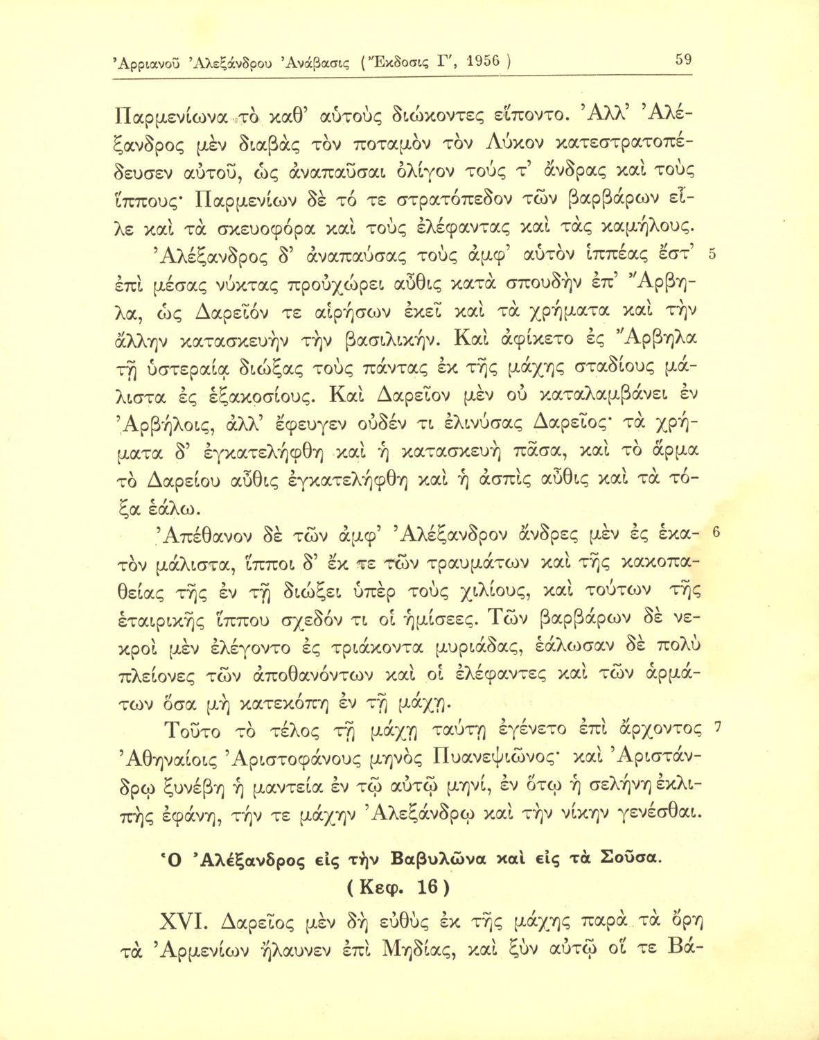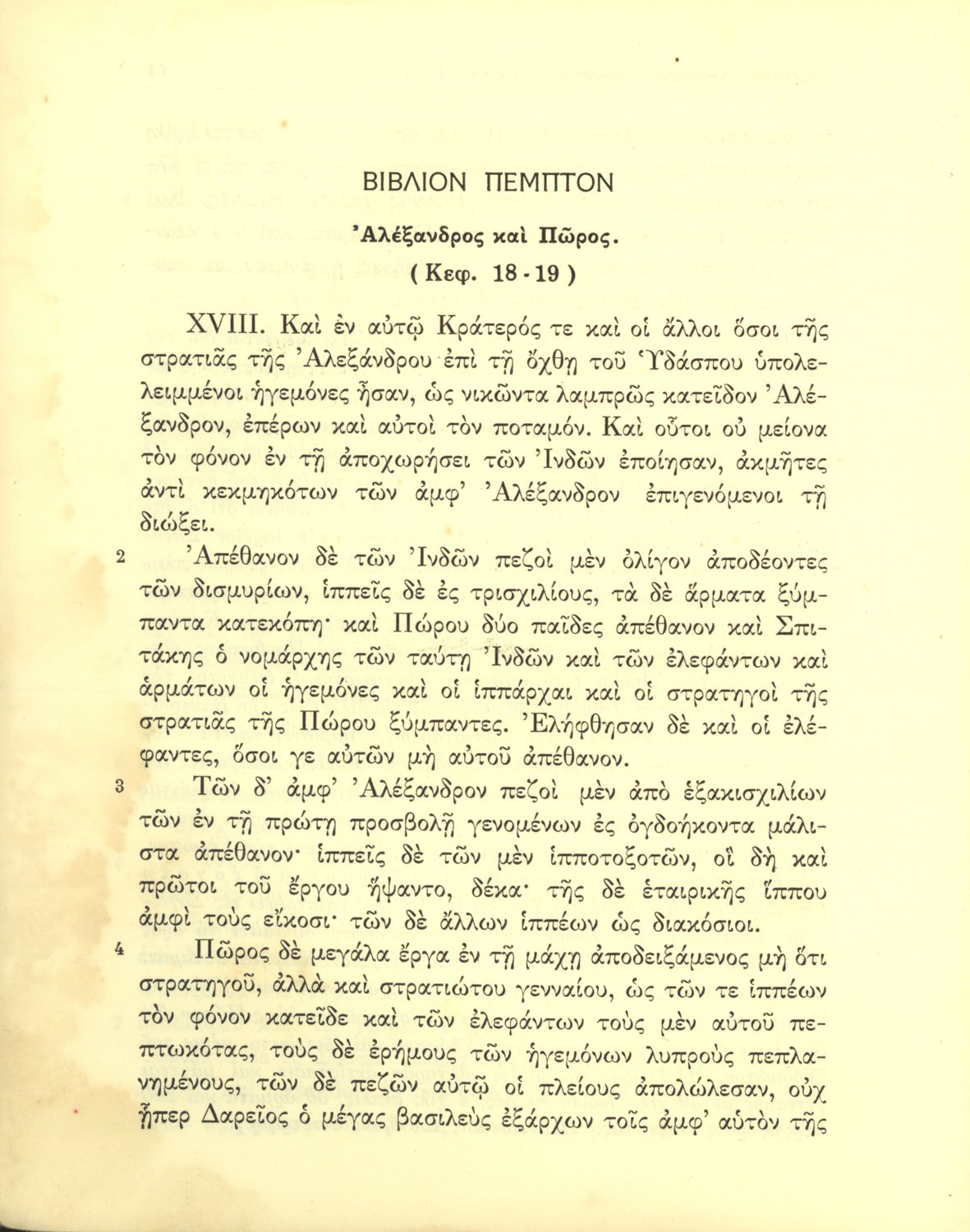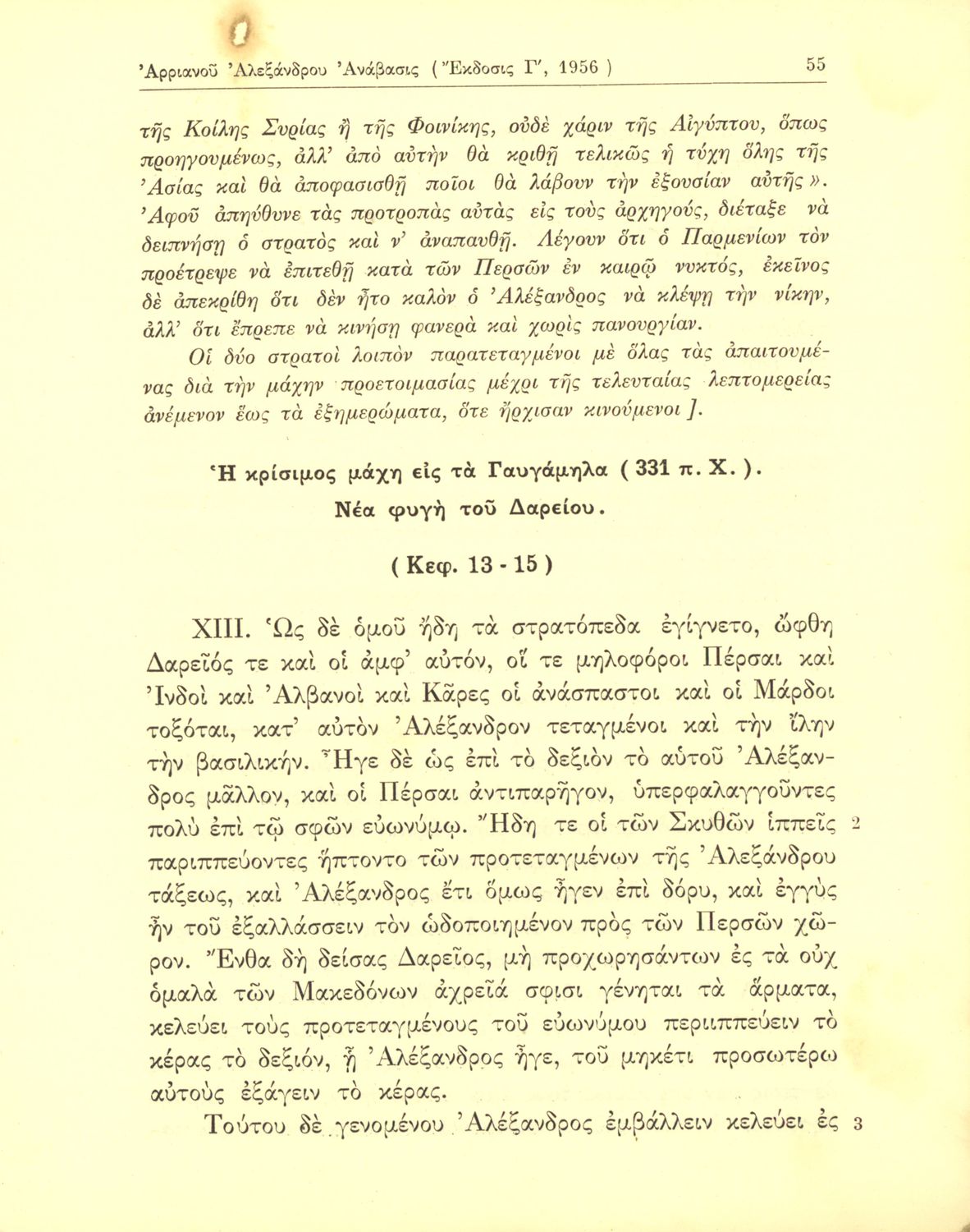 Σχολικό εγχειρίδιο Αρχαίων Ελληνικών που περιλαμβάνει αποσπάσματα από το έργο του Αρριανού Αλέξανδρου Ανάβασις και του Ηρόδοτου Ιστορίαι, ερμηνευτικές και λεξιλογικές παρατηρήσεις καθώς και τοπογραφικούς πίνακες και χάρτες..