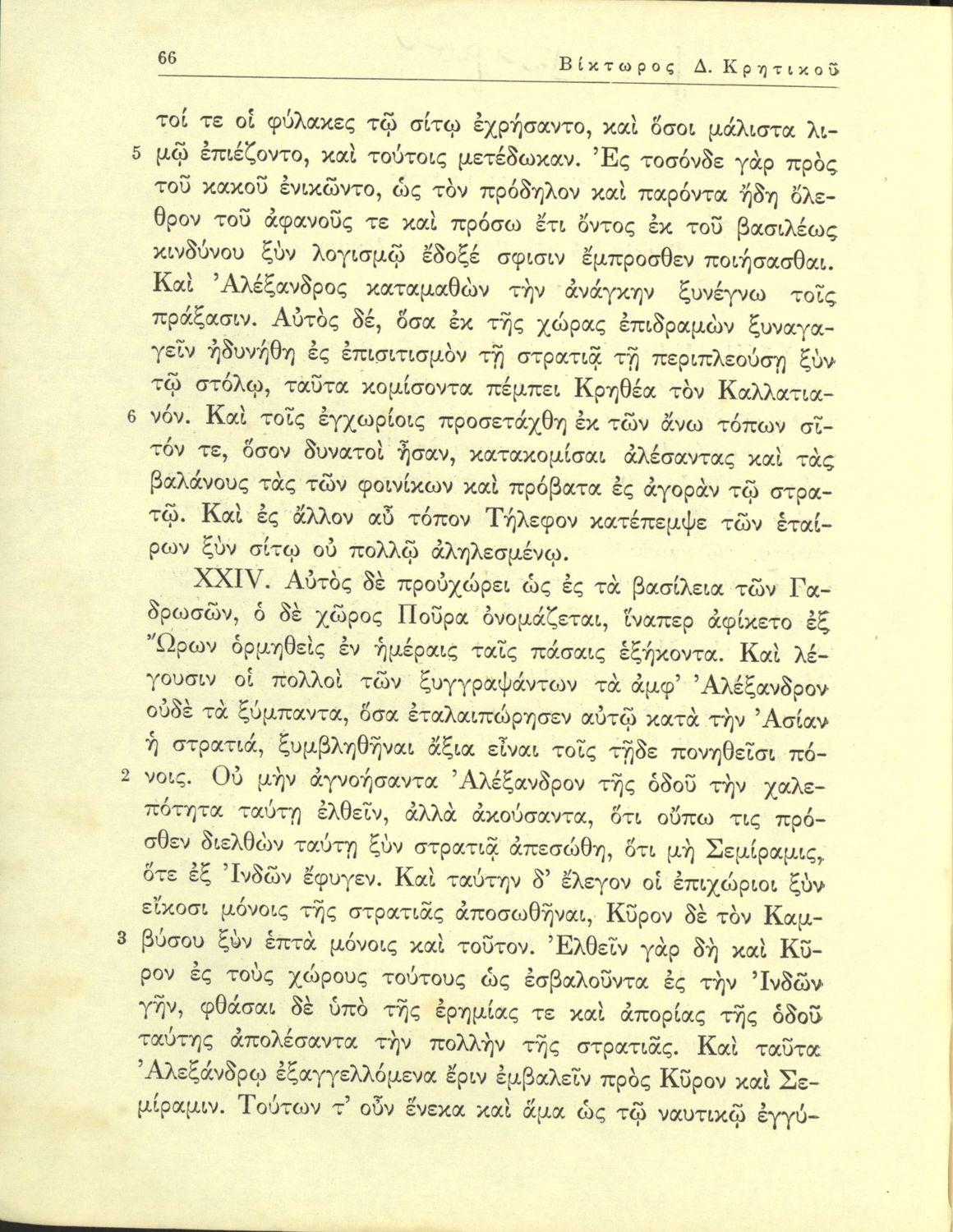 Αρριανός (Lucius Flavius Arrianus), Βίκτωρ Δ. Κρητικός (σχόλια)