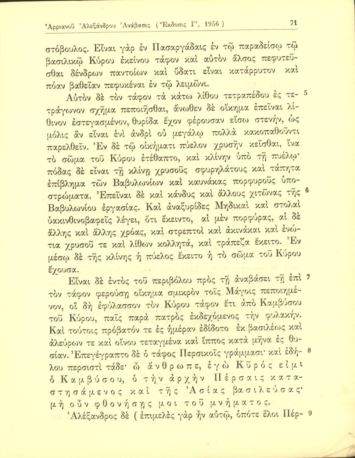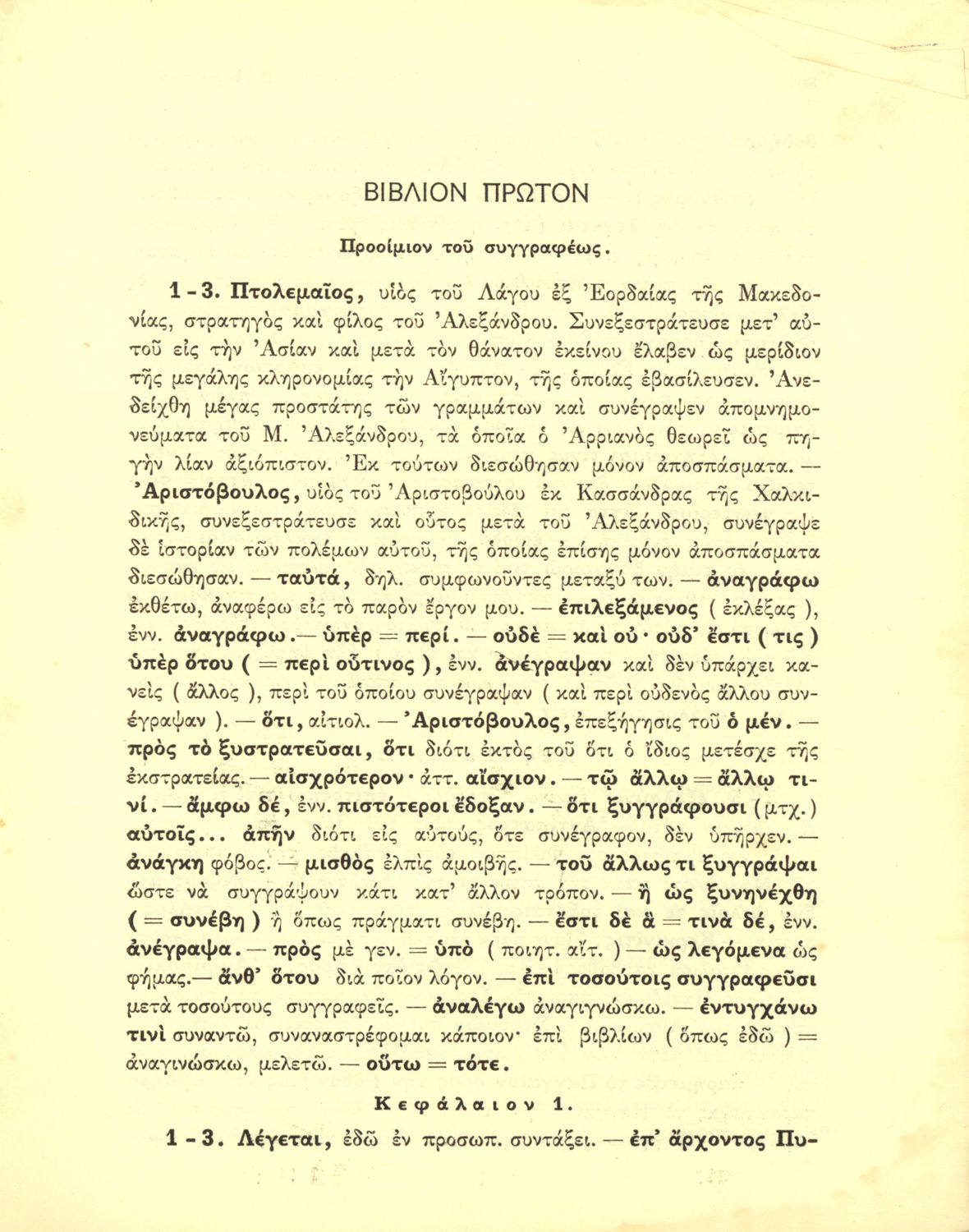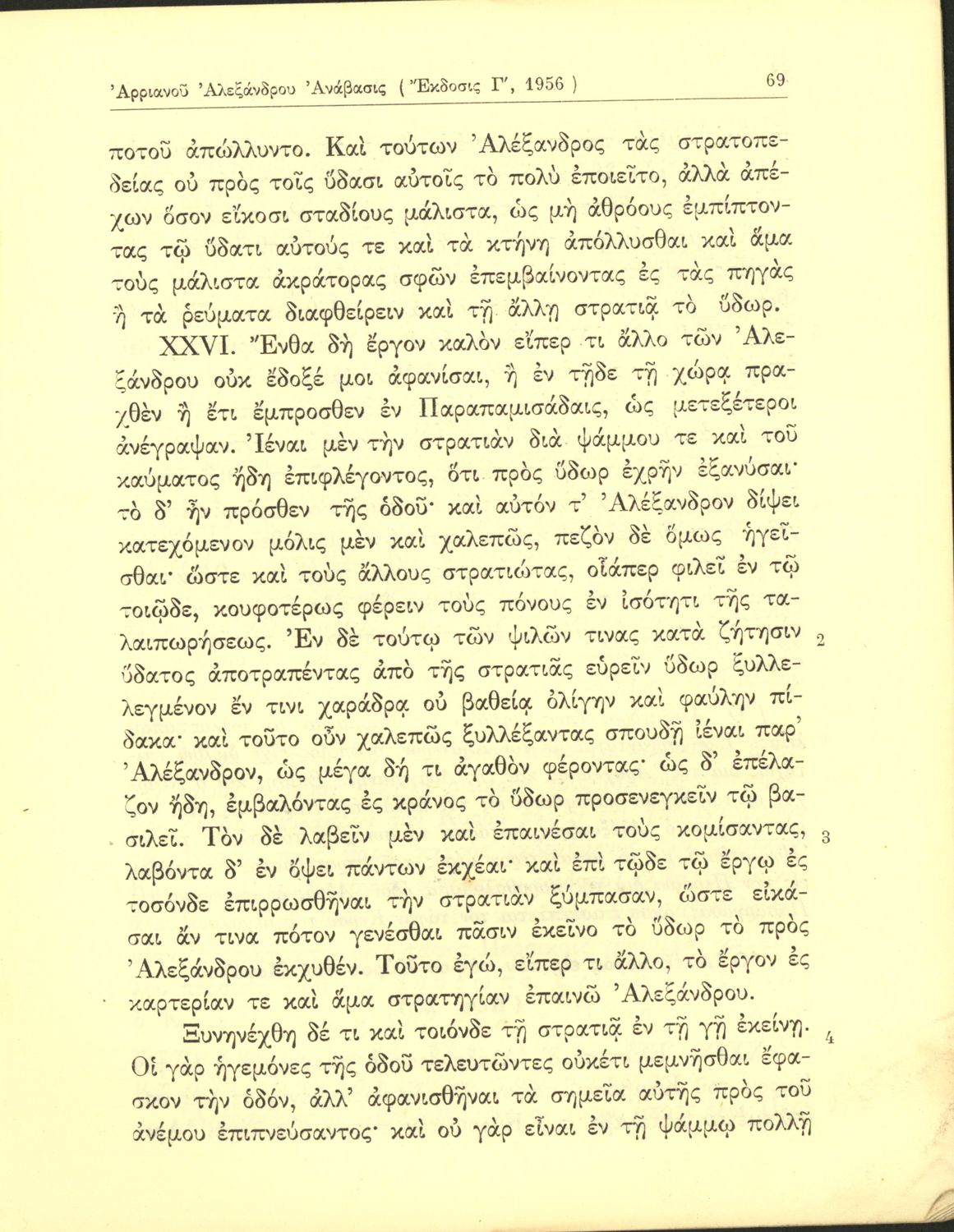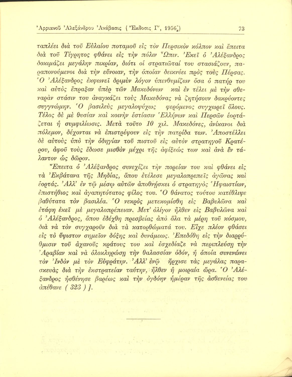 Σχολικό εγχειρίδιο Αρχαίων Ελληνικών που περιλαμβάνει αποσπάσματα από το έργο του Αρριανού Αλέξανδρου Ανάβασις και του Ηρόδοτου Ιστορίαι, ερμηνευτικές και λεξιλογικές παρατηρήσεις καθώς και τοπογραφικούς πίνακες και χάρτες..