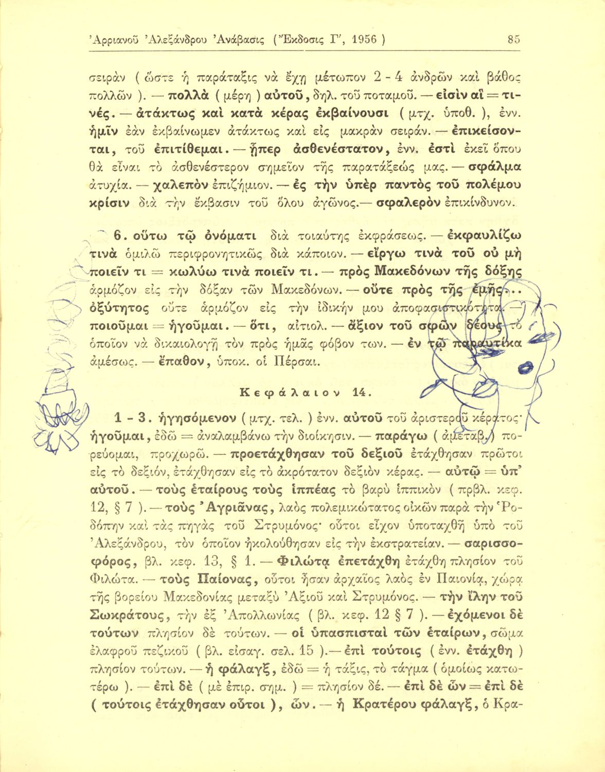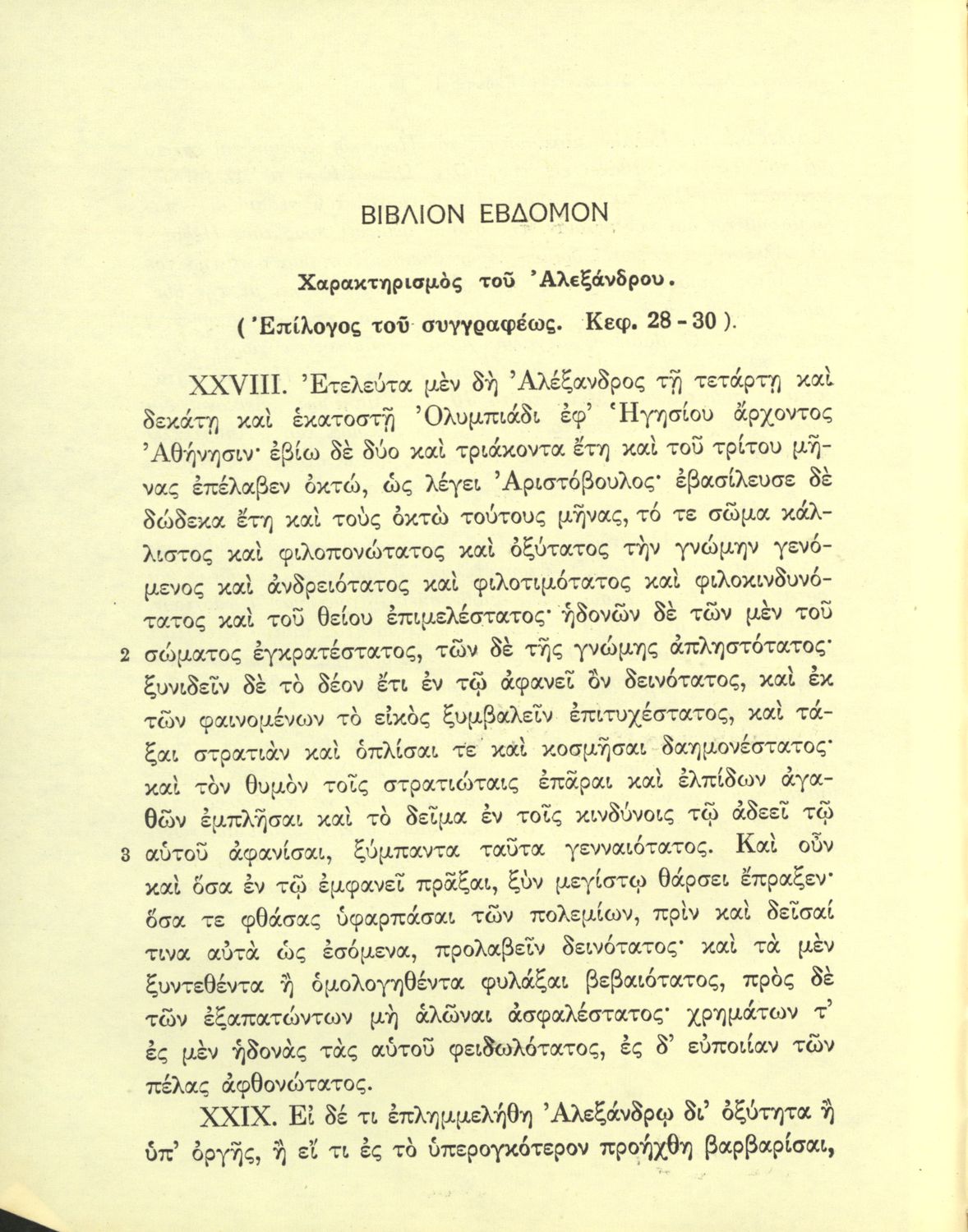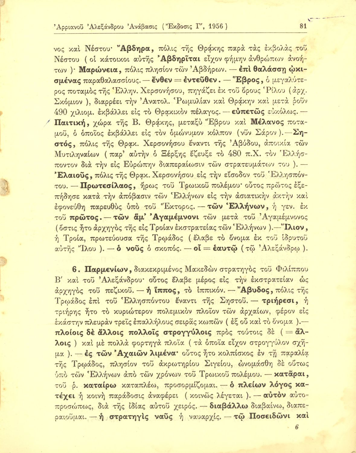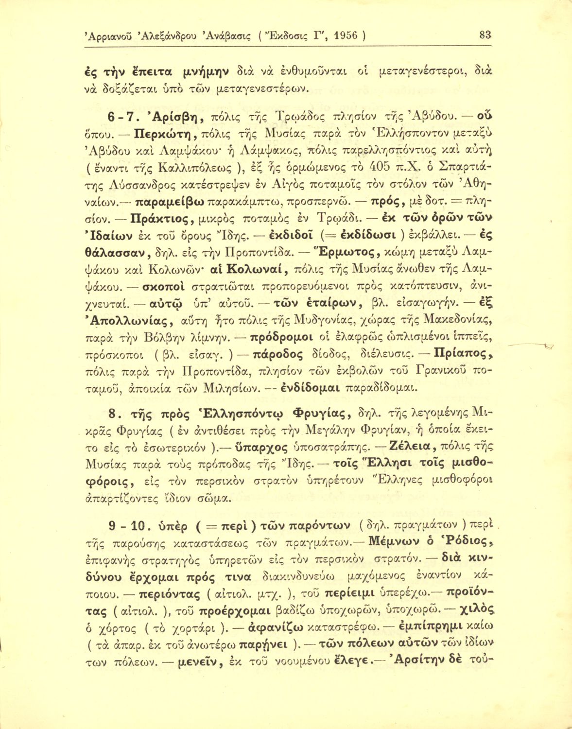 Σχολικό εγχειρίδιο Αρχαίων Ελληνικών που περιλαμβάνει αποσπάσματα από το έργο του Αρριανού Αλέξανδρου Ανάβασις και του Ηρόδοτου Ιστορίαι, ερμηνευτικές και λεξιλογικές παρατηρήσεις καθώς και τοπογραφικούς πίνακες και χάρτες..