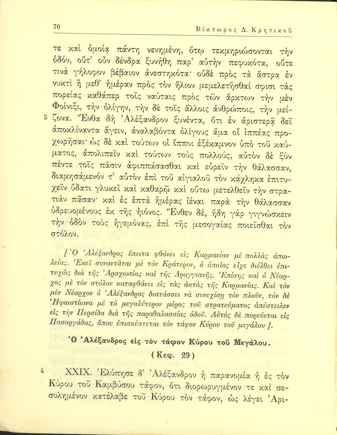 Αρριανός (Lucius Flavius Arrianus), Ηρόδοτος, Βίκτωρος Δ. Κρητικός, Κυριάκος Κοσμάς (σχόλια)