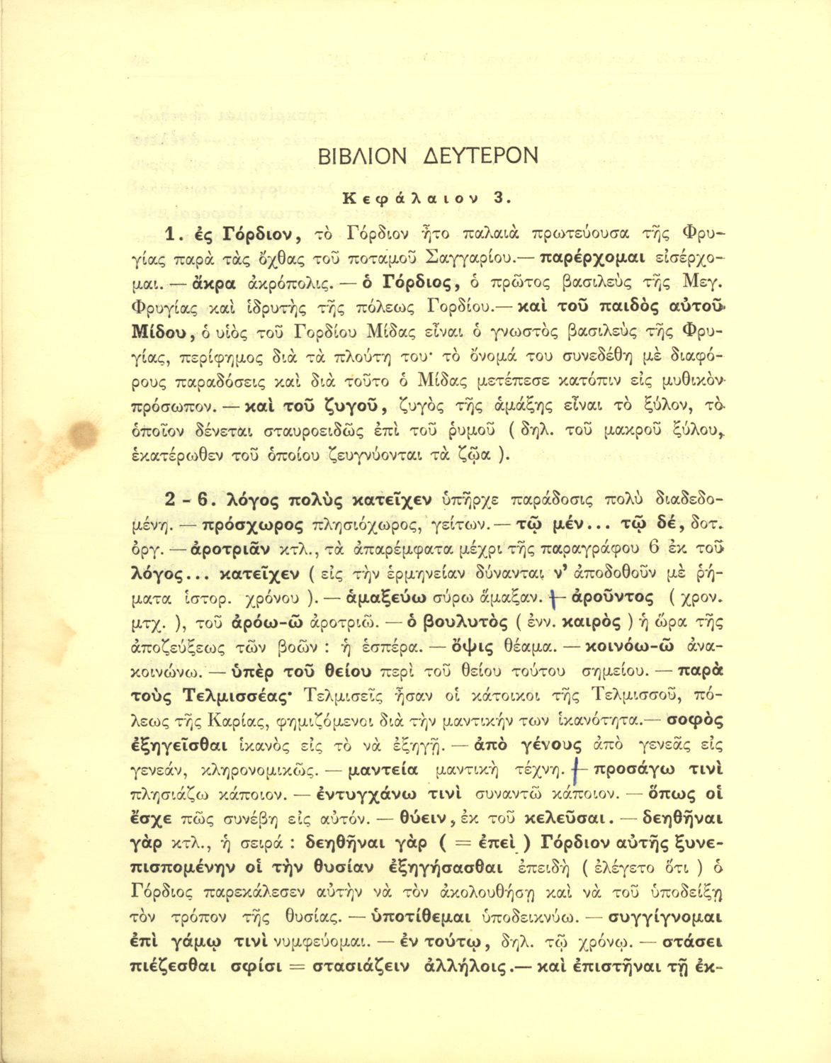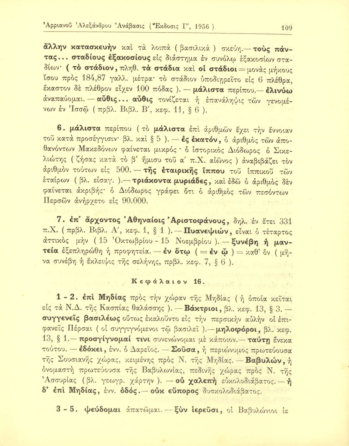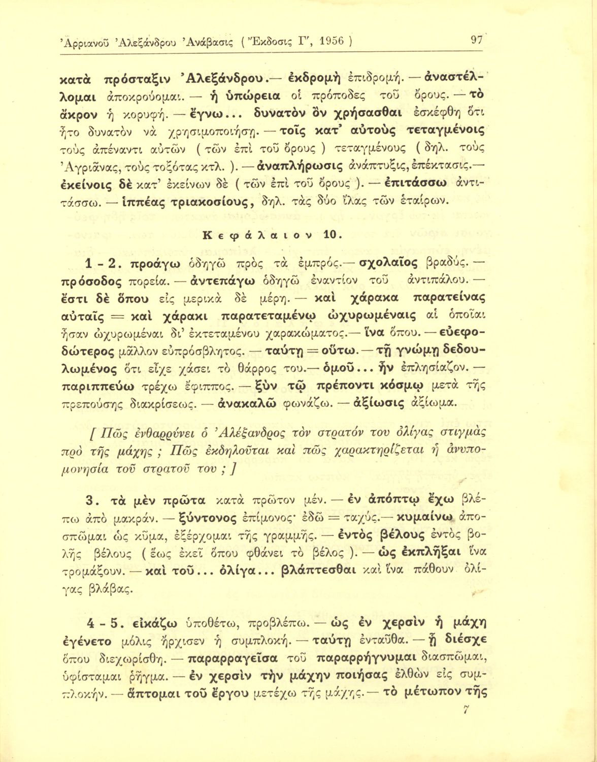 Σχολικό εγχειρίδιο Αρχαίων Ελληνικών που περιλαμβάνει αποσπάσματα από το έργο του Αρριανού Αλέξανδρου Ανάβασις και του Ηρόδοτου Ιστορίαι, ερμηνευτικές και λεξιλογικές παρατηρήσεις καθώς και τοπογραφικούς ...