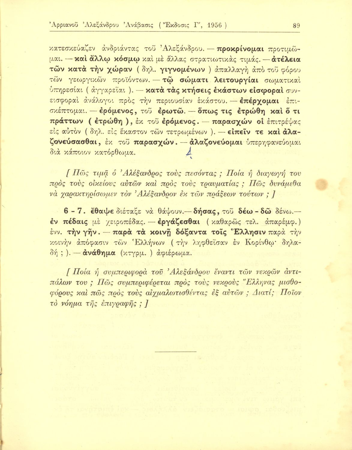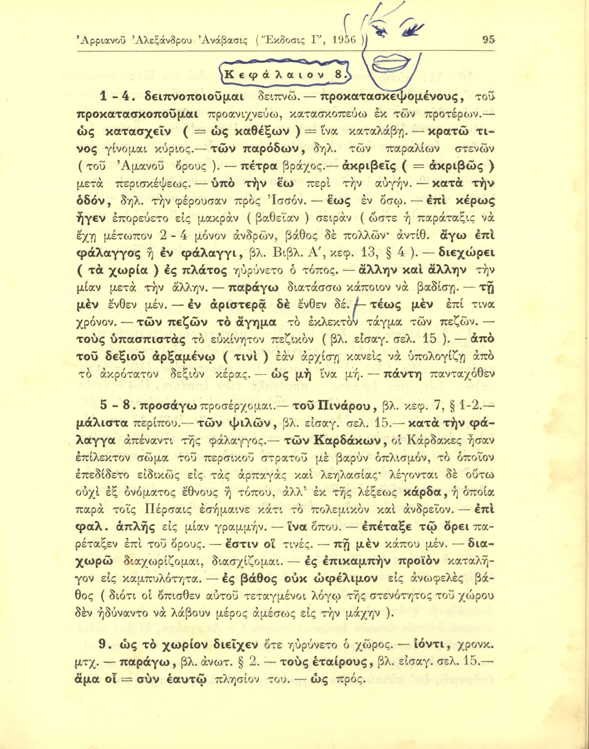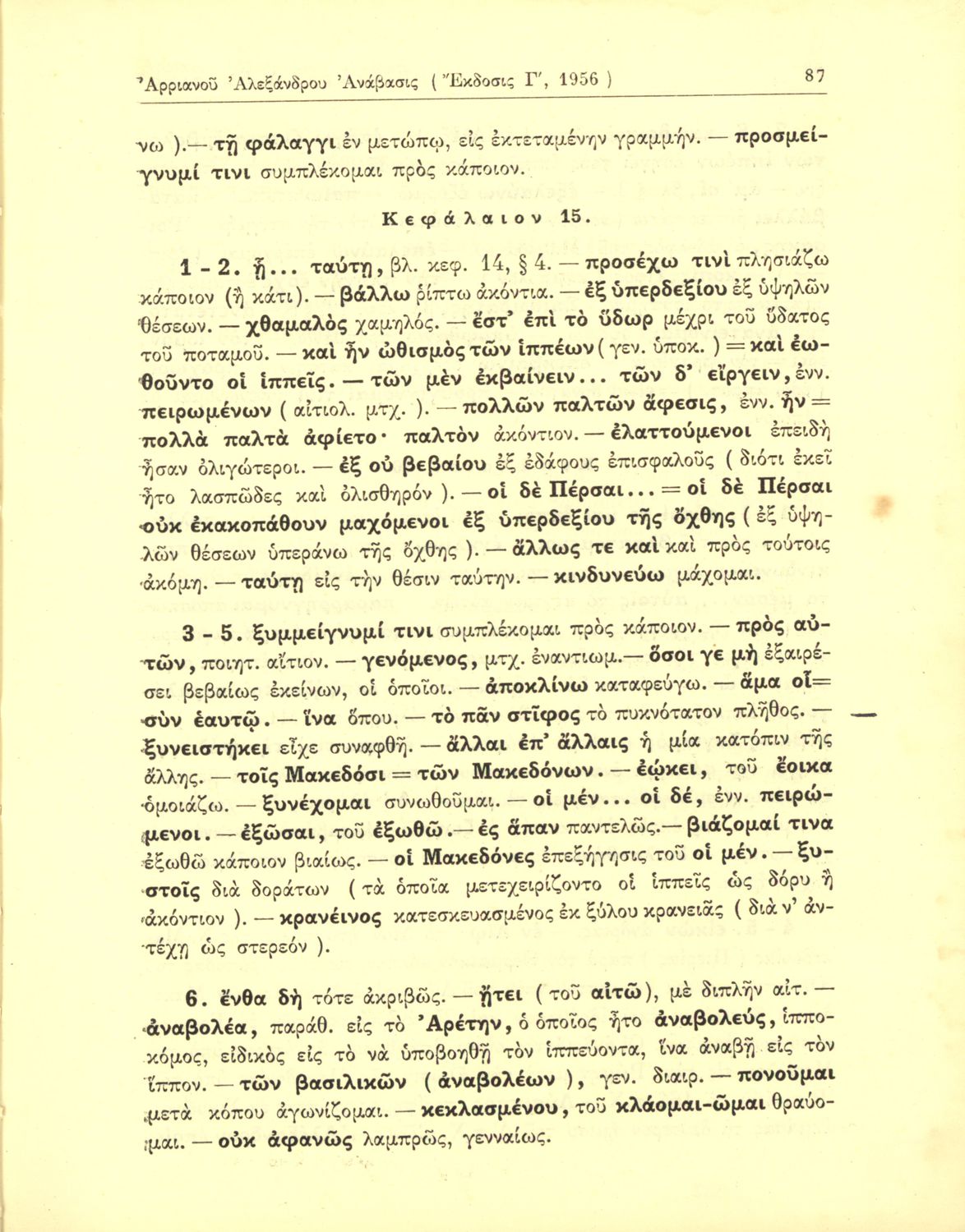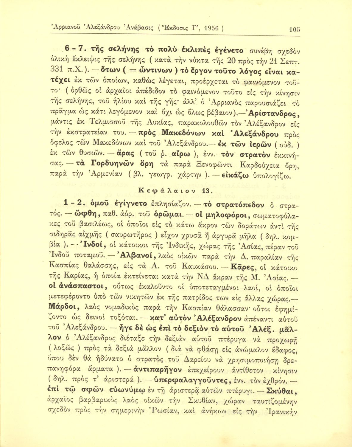 Σχολικό εγχειρίδιο Αρχαίων Ελληνικών που περιλαμβάνει αποσπάσματα από το έργο του Αρριανού Αλέξανδρου Ανάβασις και του Ηρόδοτου Ιστορίαι, ερμηνευτικές και λεξιλογικές παρατηρήσεις καθώς και τοπογραφικούς πίνακες και χάρτες..