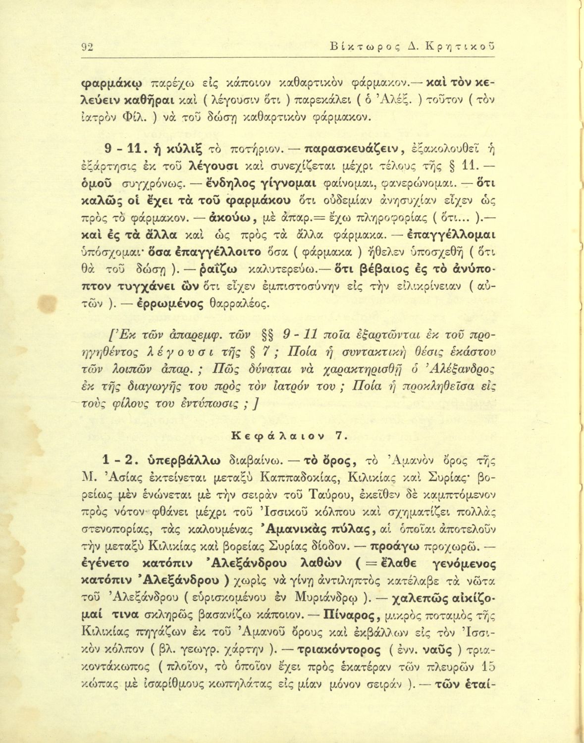 Αρριανός (Lucius Flavius Arrianus), Ηρόδοτος, Βίκτωρ Δ. Κρητικός, Κυριάκος Κοσμάς (σχόλια)
