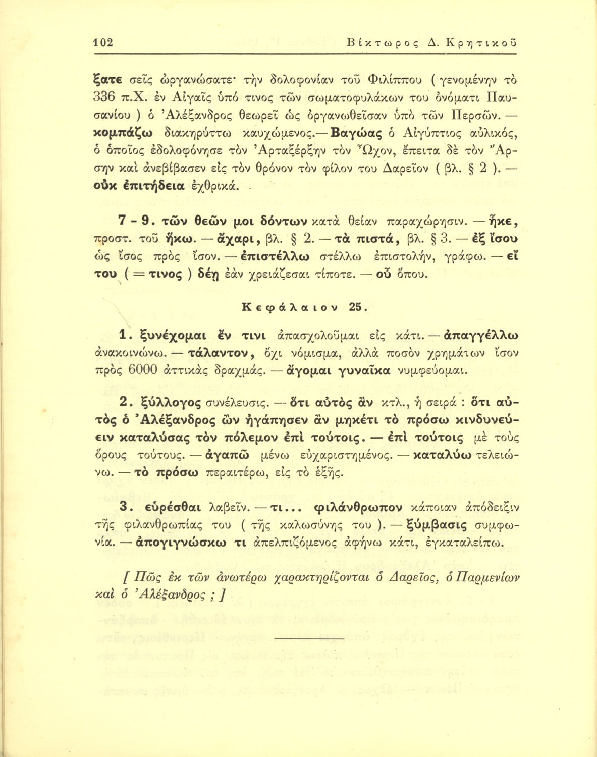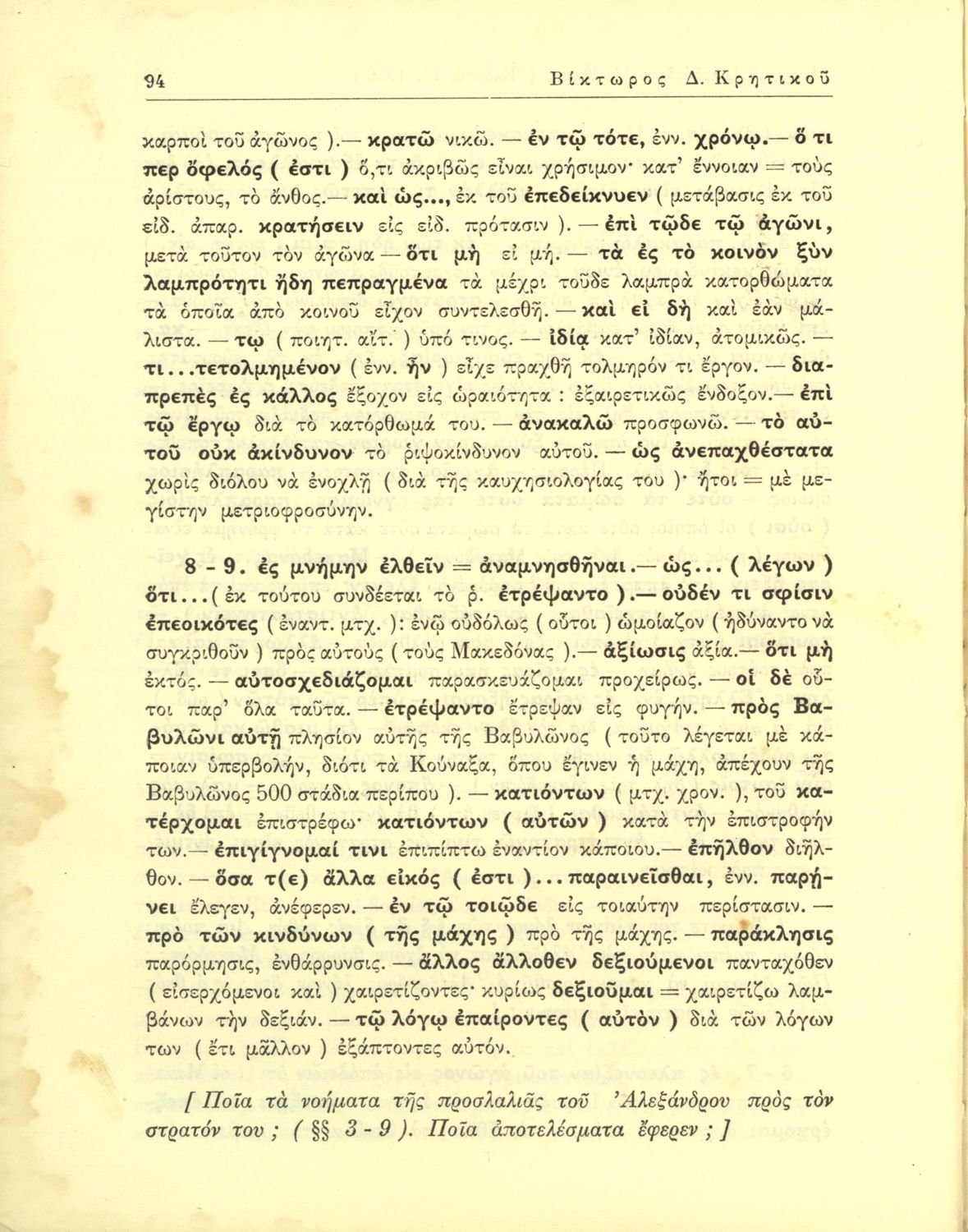 Αρριανός (Lucius Flavius Arrianus), Βίκτωρ Δ. Κρητικός (σχόλια)