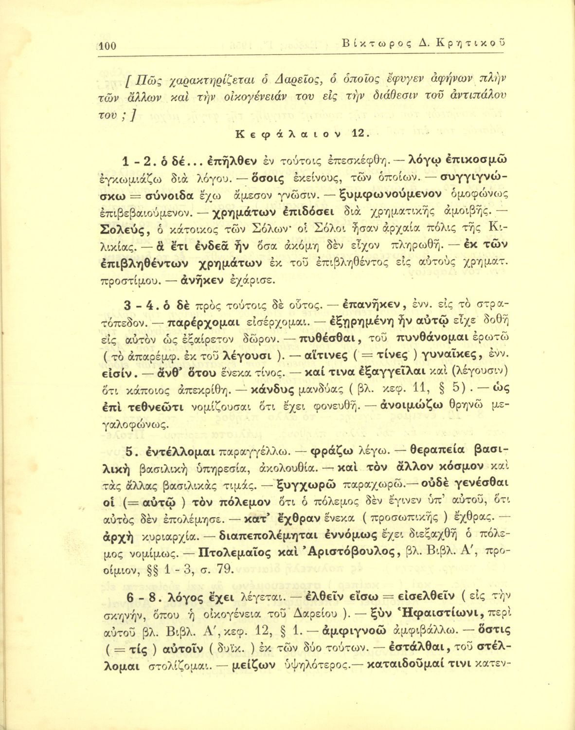 Αρριανός (Lucius Flavius Arrianus), Ηρόδοτος, Βίκτωρος Δ. Κρητικός, Κυριάκος Κοσμάς (σχόλια)