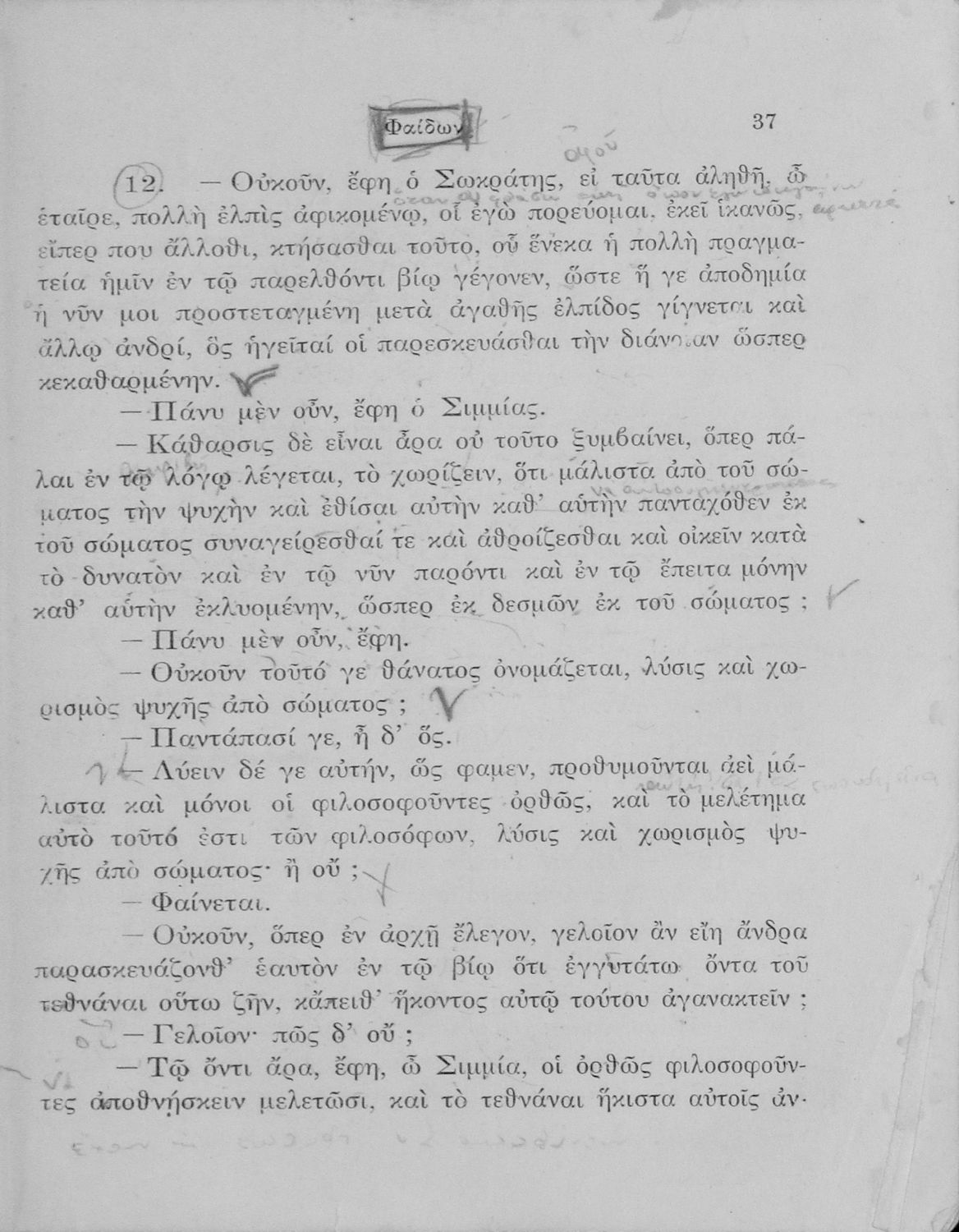 Πλάτωνος Φαίδων δια την ΣΤ΄ τάξιν των Γυμνασίων παλαιού τύπου